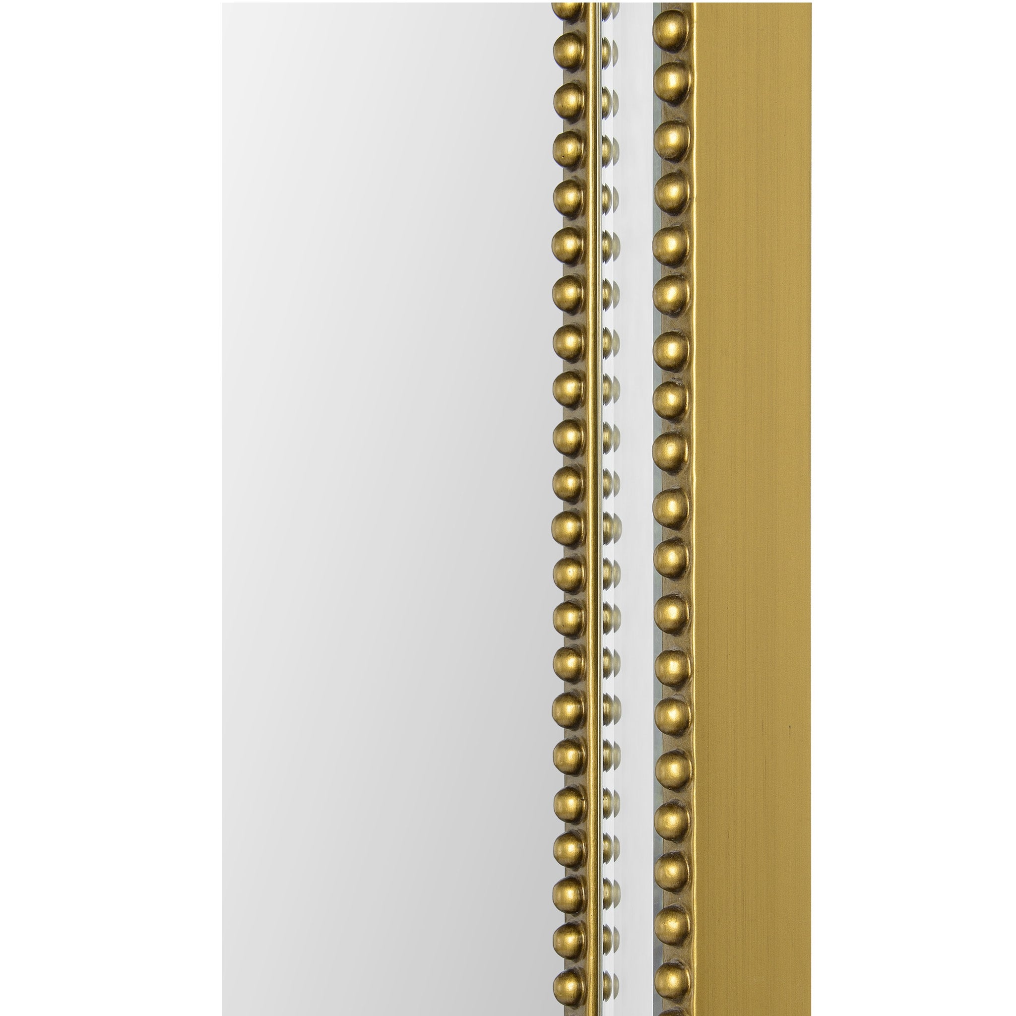 Exuding glamor from every angle, the Wolf Mirror is exquisite. An intricate painted gold frame brings a regal touch to the clear glass, proving extensive detail is not required for impact. The 36 by 24-inch structure allows it to heighten the beauty of a space, no matter if it's hung vertically or horizontally.