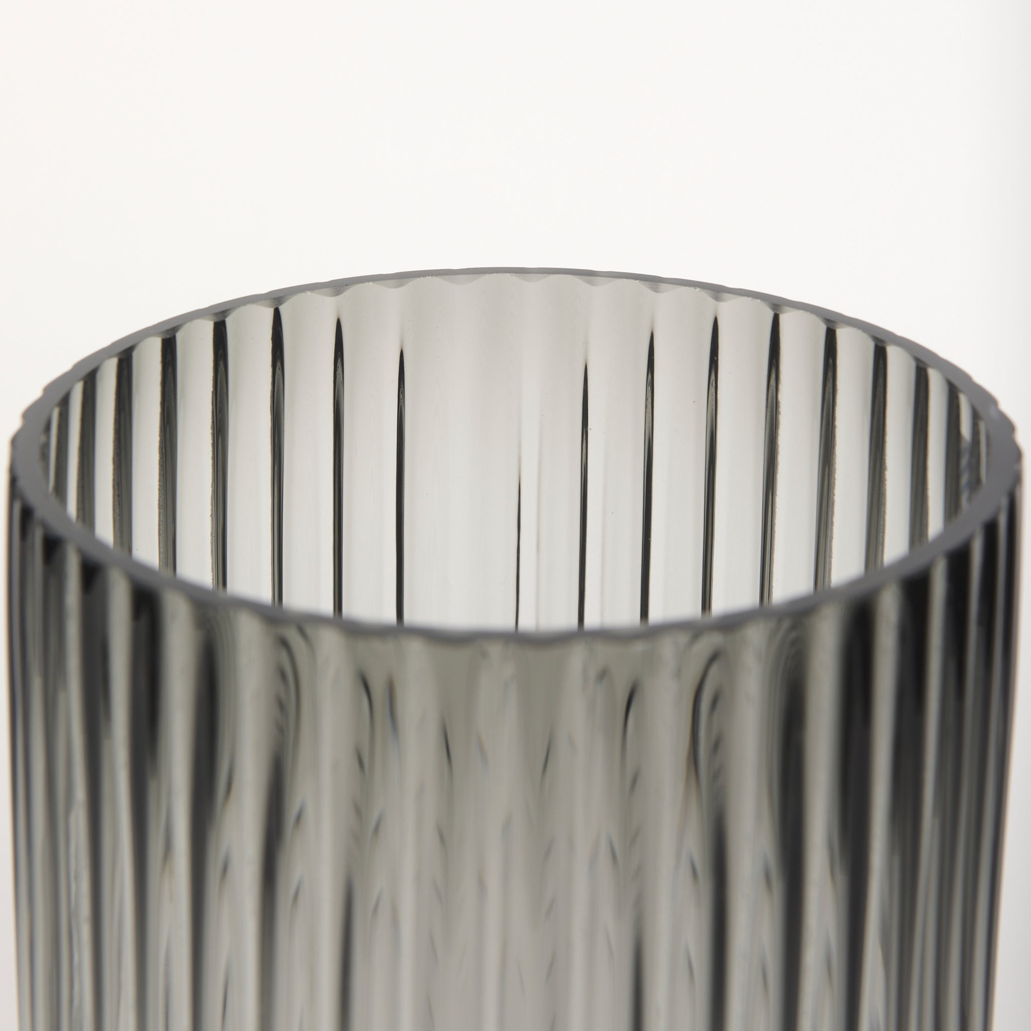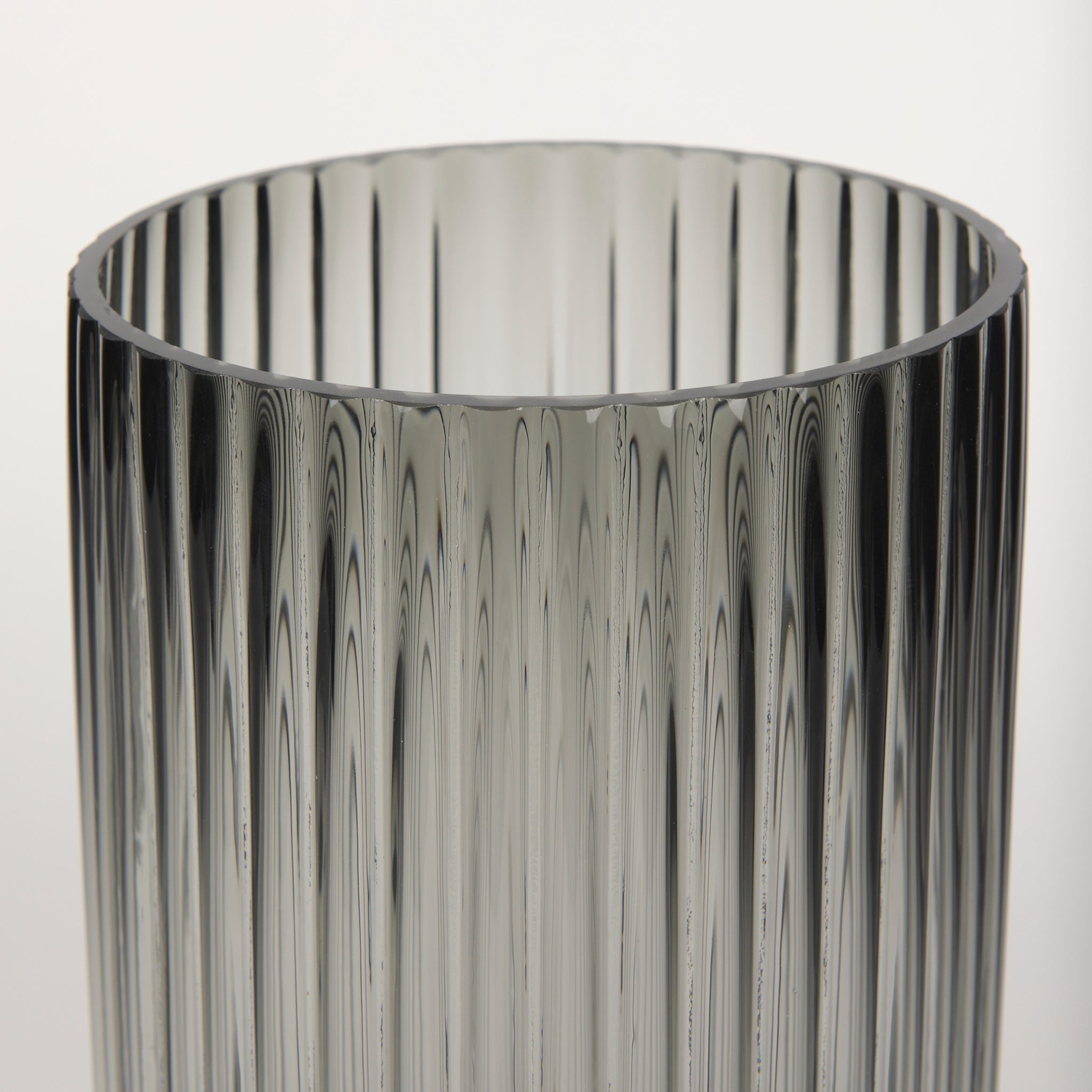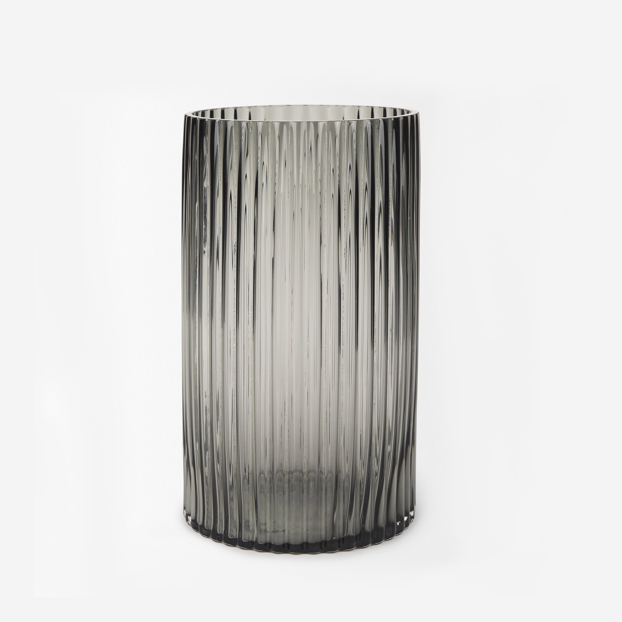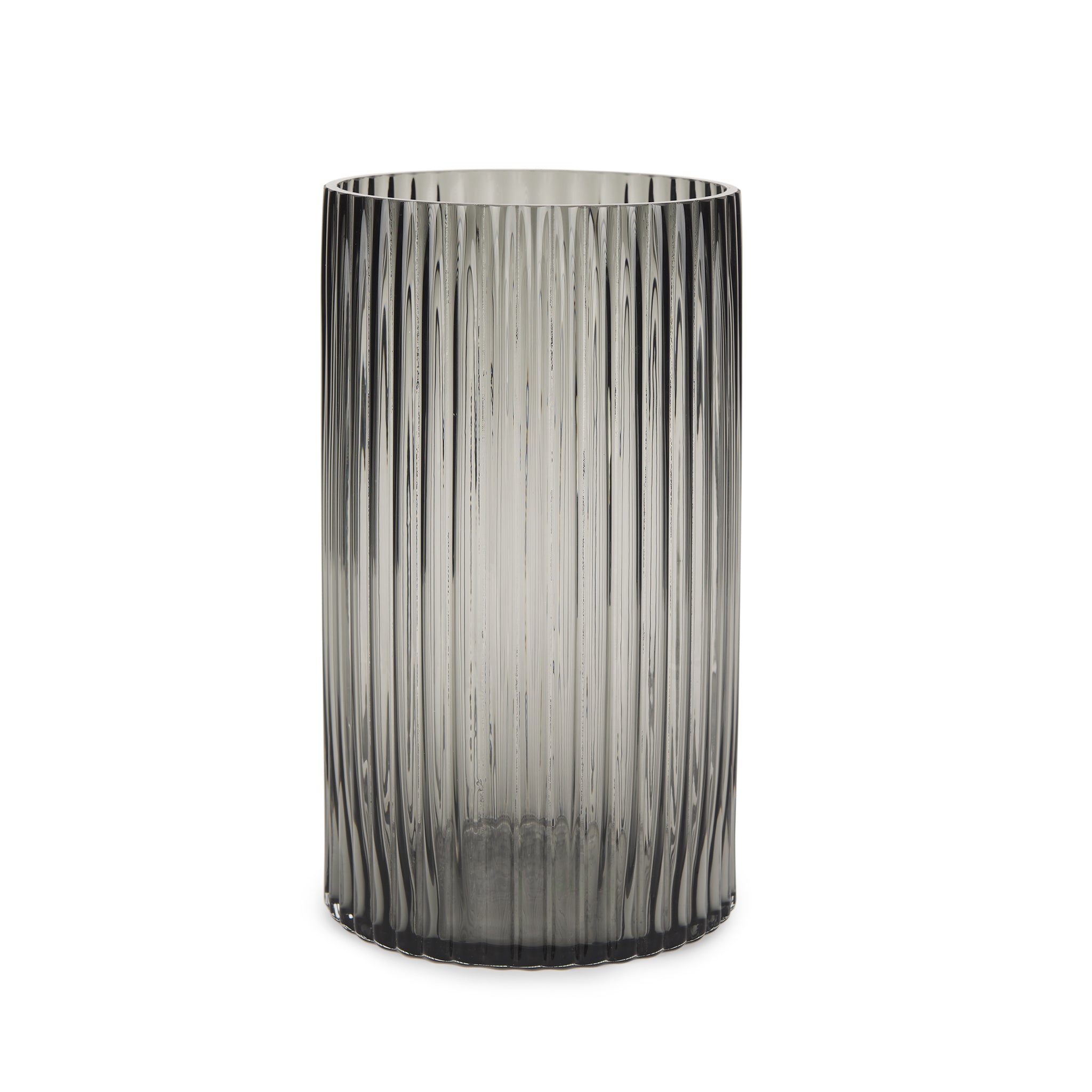 For any tabletop, shelf or counter you'd like to embellish, the Davina Tall Smoky Glass Vase is the perfect fit. A beautiful complement to your contemporary style, this vase is a captivating piece of decor that is both mysterious and elegant. It features a translucent smoky black hue, ribbed glass and a fluted textured finish that not only pleases the touch but also draws the eye. Fill it with your favorite flowers or display it on its own, wherever you put it, this vase will make a striking addition to your room's decor.