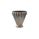 A fan favorite with scallops ready to show off. Jade turns a classic shape into a statement piece. Cast in aged pewter aluminum, its scalloped fan silhouette and Deco-inspired channeling create an eye-catching play of light and shadow. The elongated opening suits bold arrangements or holds its own just fine. Sculptural, elegant, and unapologetically ornamental, it's a vase with presence and just a little sparkle.