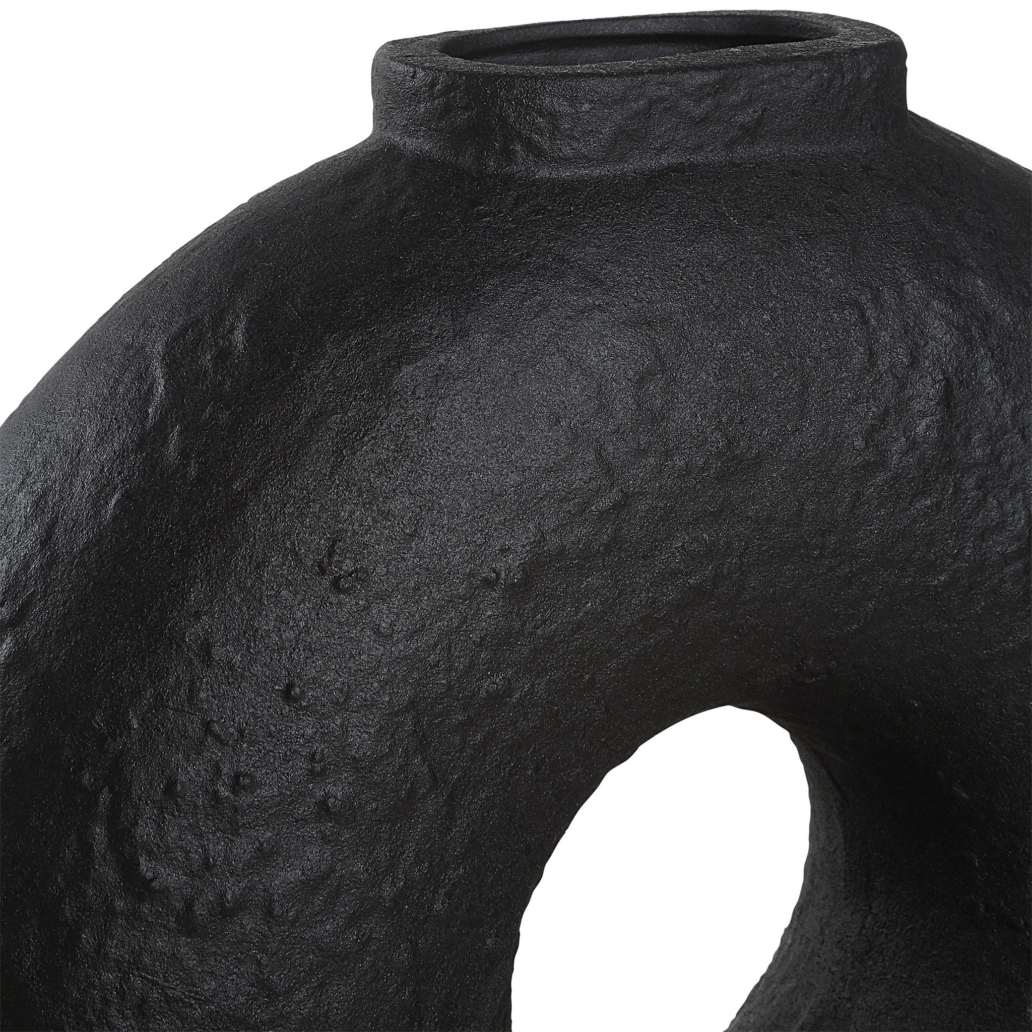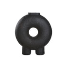 A sense of whimsy and character envelops the modern interior with this ceramic vase. The art-loving client will fall fast for this porcelain ceramic vase that can serve as both a vessel for dried florals and a focal piece for the room. Set within the living room or entryway space, its grounding, textured matte black finish balances out its unique structure.