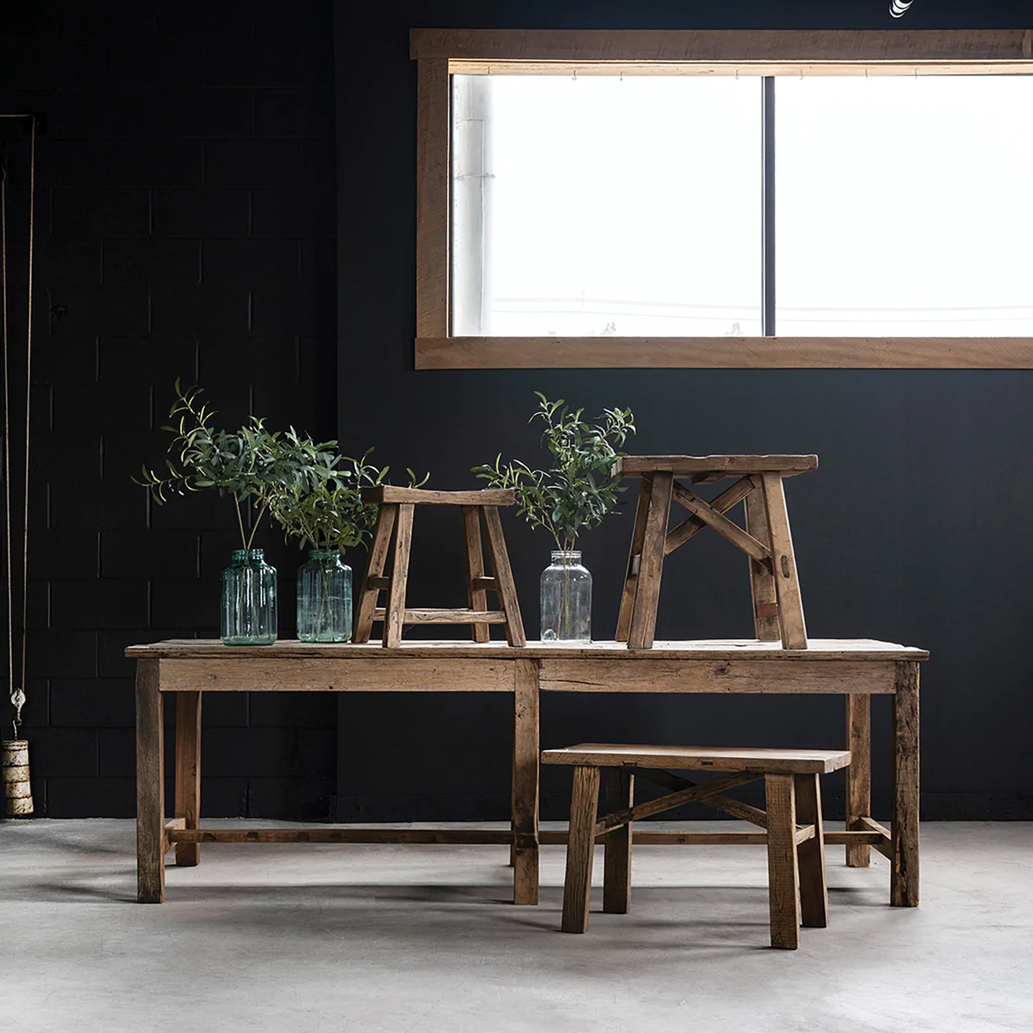 If you're looking to create warmth in your modern vintage setting, look no further than this beautiful Vintage Wooden Stool. Inspired by the simplicity and minimalism of Shaker furniture design, this primitive stool is constructed with reclaimed wood and has a clear finish to highlight the beauty of the natural wood. Whether it be used as seating or simply as a unique accent piece, this stool adds richness to your space.