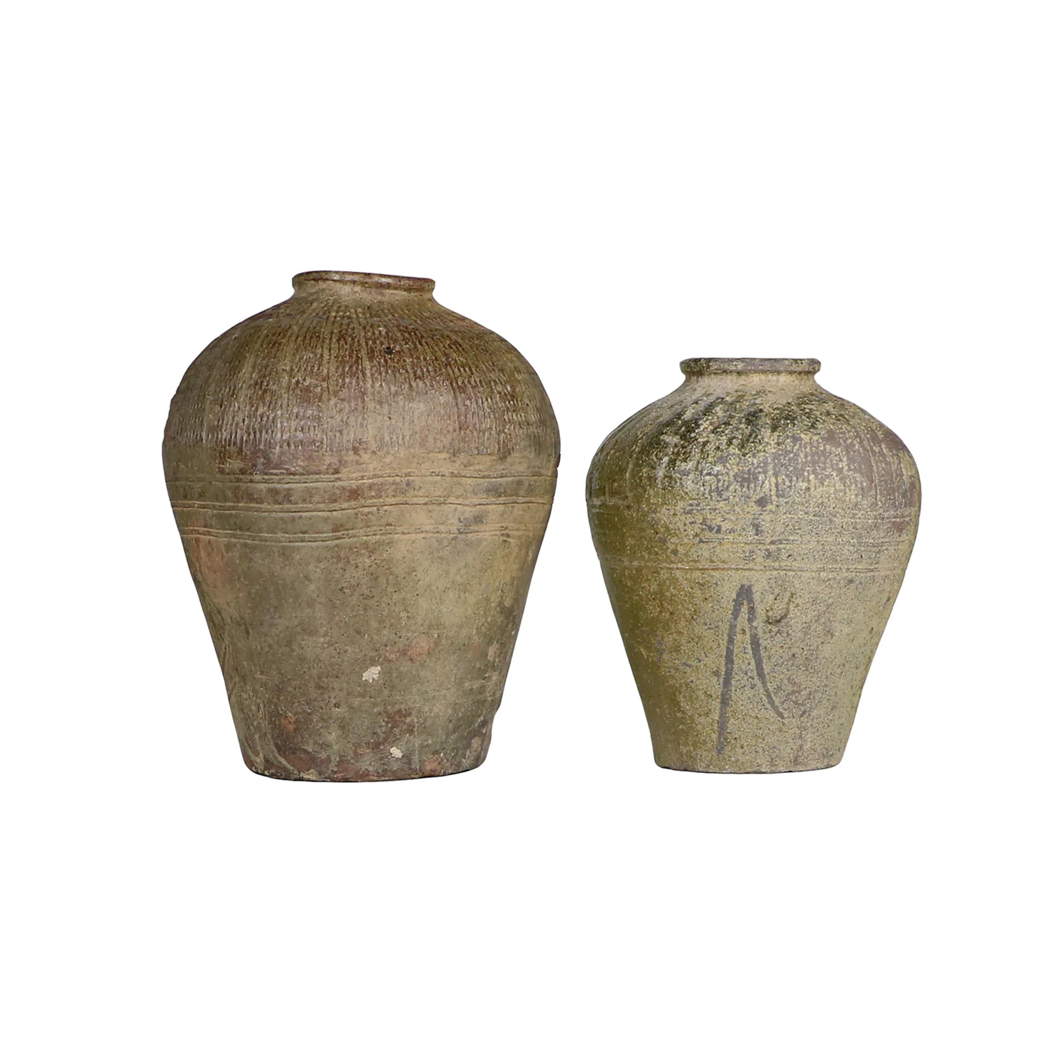 Mijiu, a Chinese rice wine that has been made for thousands of years, was originally stored in mijiu jars made of terracotta. Over time, mijiu jars, became common across the Chinese countryside as storage jars for a variety of goods, and remained hugely important to their culture through generations. This Clay Mijiu Jar therefore has a rich history. Each jar is sourced from Chinese provinces and is uniquely handcrafted and age-worn, with different markings etched in. In natural earth tones and an eye-catching tapered shape, a single or pair of mijiu jars can completely transform the look of your room.