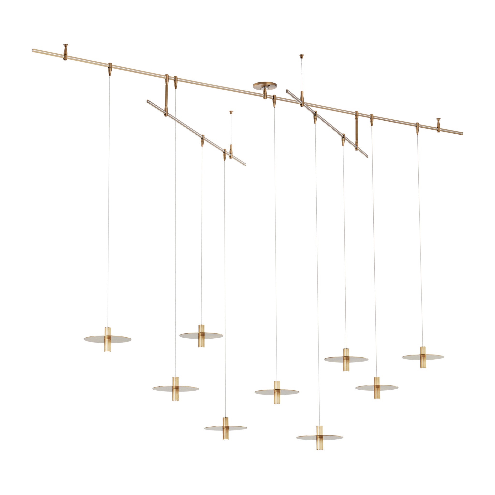 Inspired by the Ponte Skyscraper in Johannesburg, the Mini Ponte Chandelier by Sean Lavin for Visual Comfort Modern celebrates modern architectural design with LED lighting. Each pendant is crafted with a small light module producing a punch of downward illumination at the base of a perfectly balanced, modern ring. Mounting the pendants onto this MonoRail-based Low-Voltage System creates a unique chandelier that will make a bold and sophisticated statement in any space. The system is extremely versatile and customizable with the ability to add or remove pendants, move the pendants around, and even change-out the pendants in the future.