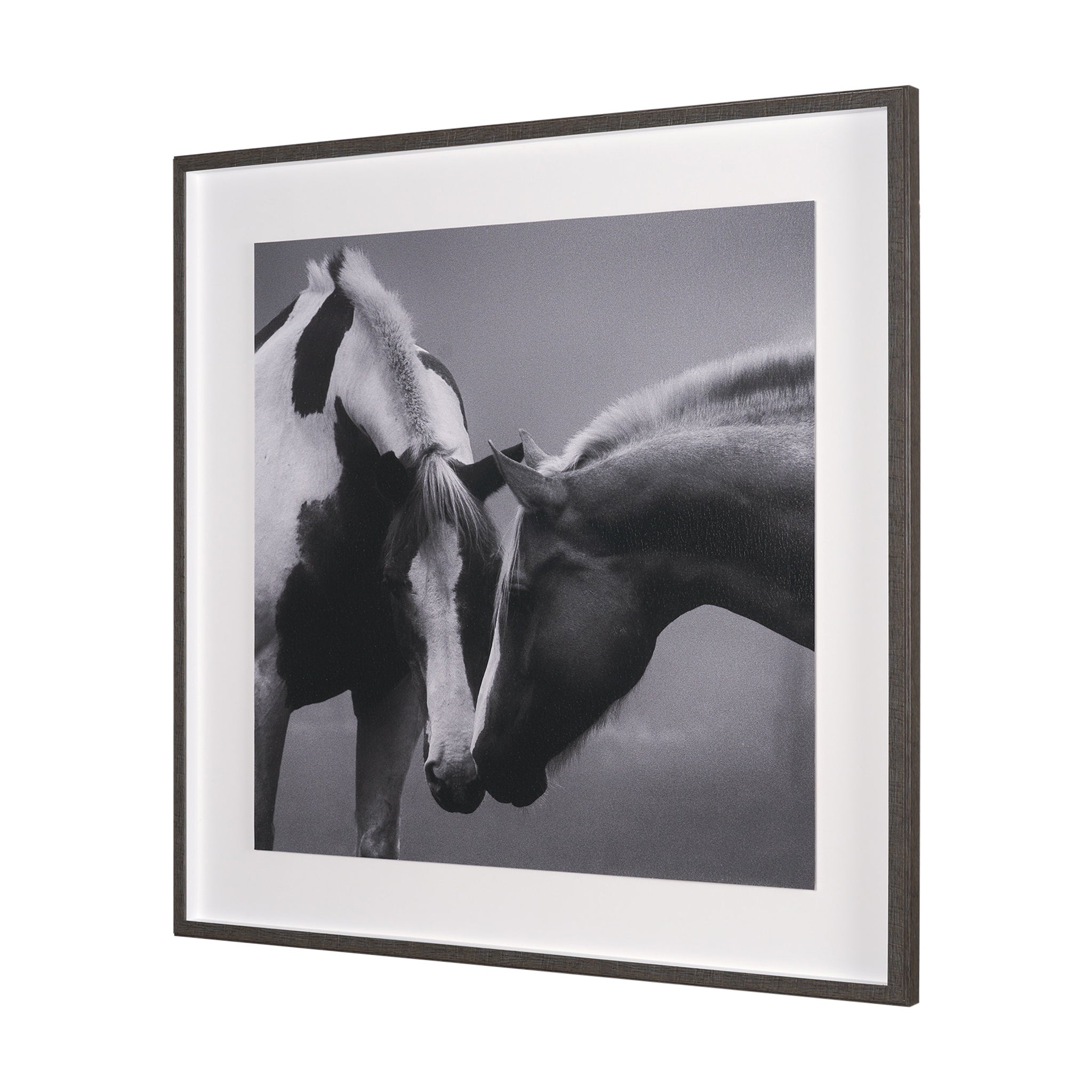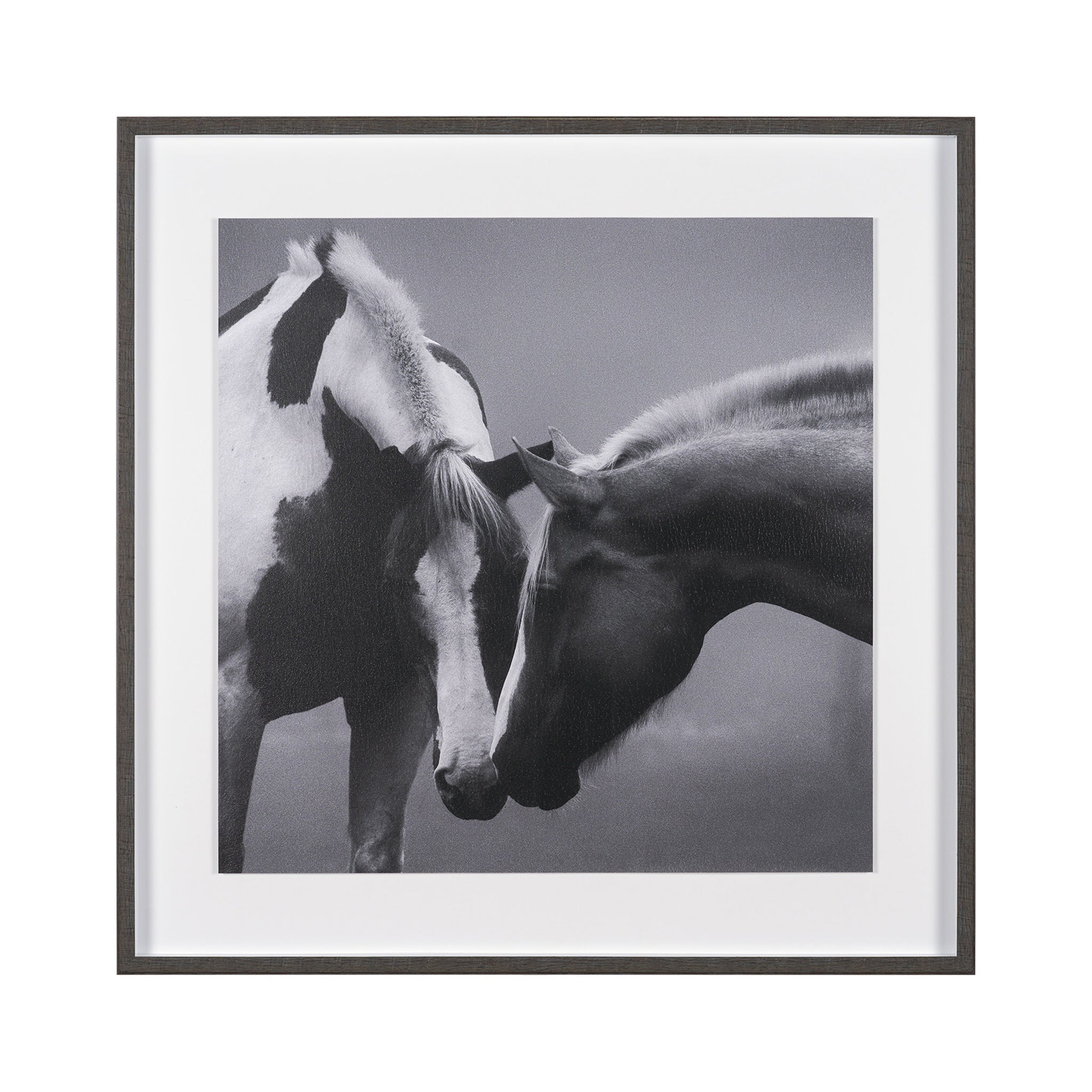 Capture the profound tenderness of nature with this striking framed artwork. Rendered in timeless black and white, it beautifully portrays two horses in an intimate moment, their heads gently touching in a gesture of deep connection. This soulful piece brings a sense of calm, grace, and natural beauty, perfect for adding a heartwarming focal point to any living space or bedroom