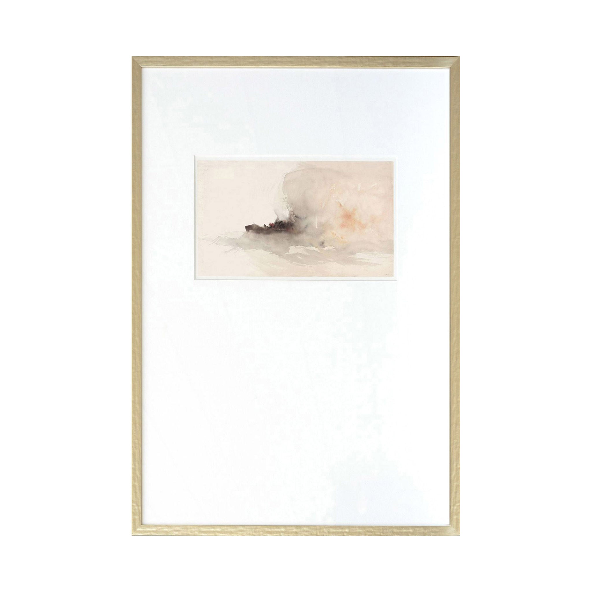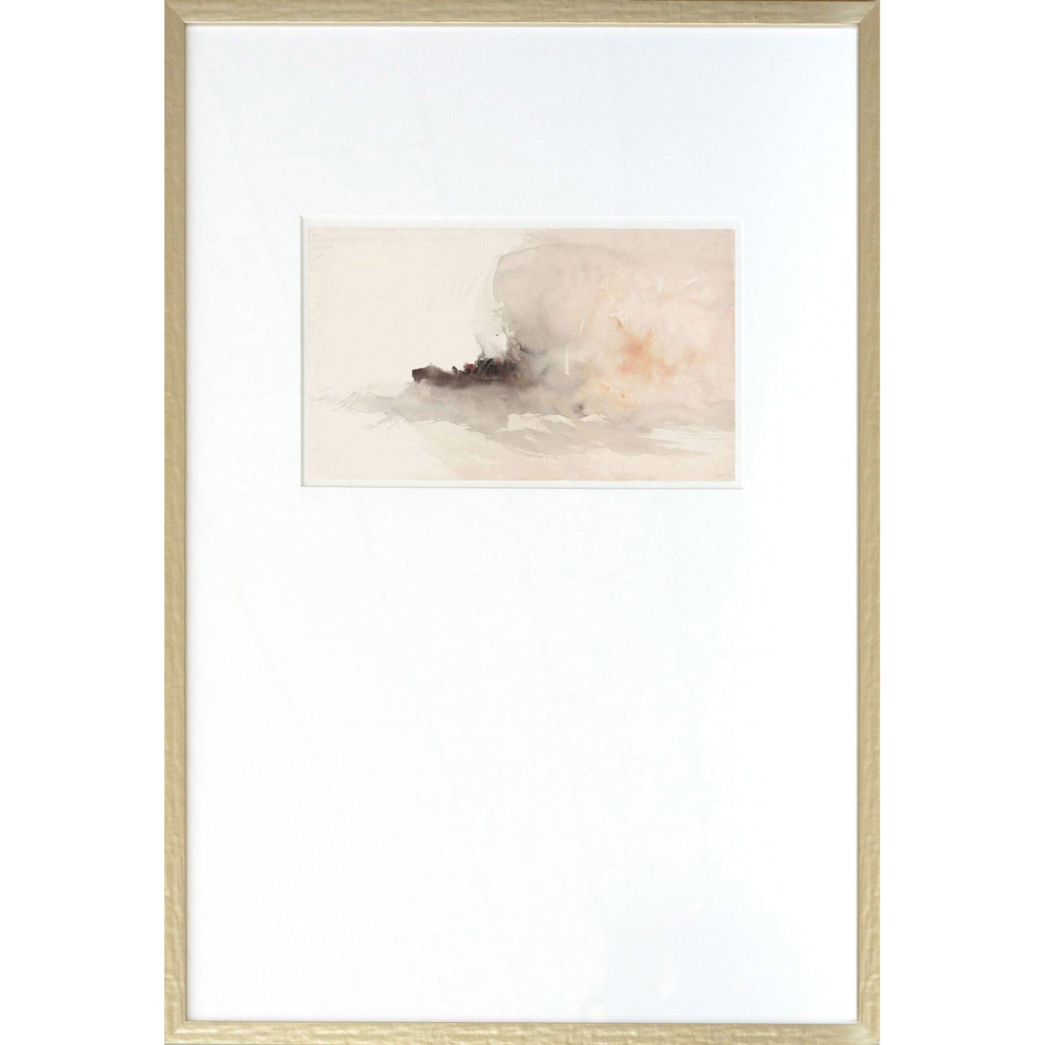William Turner was an English romanticist painter who is credited with being a precursor to the French Impressionist movement. His broadly applied atmospheric washes of paint earned him the title of 'the painter of light'. Inspired by spectacular sunsets in 1816 England. Each of the Turner Scapes is off set in a double thick oversize, bottom weighted matte with a fine mottled silver frame.