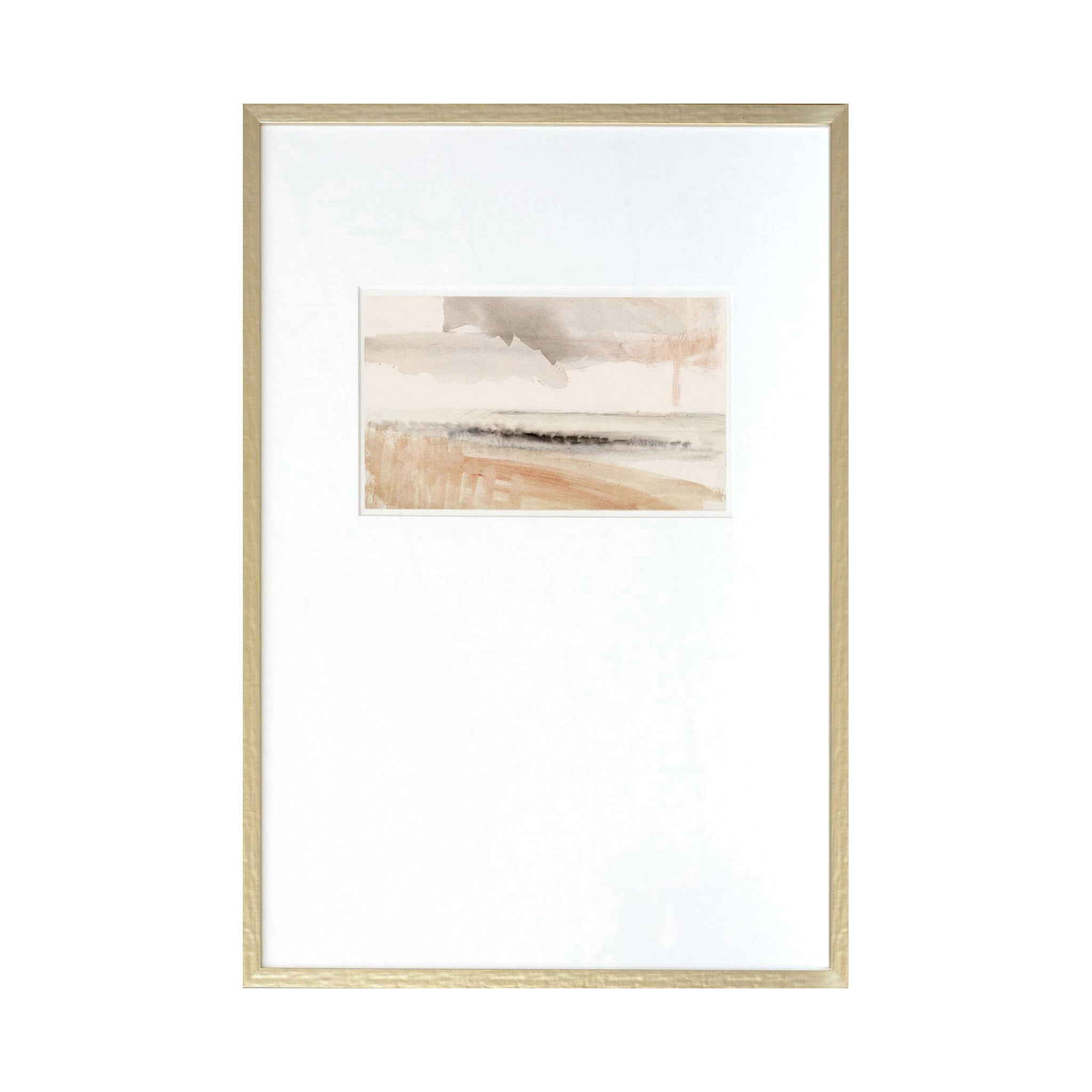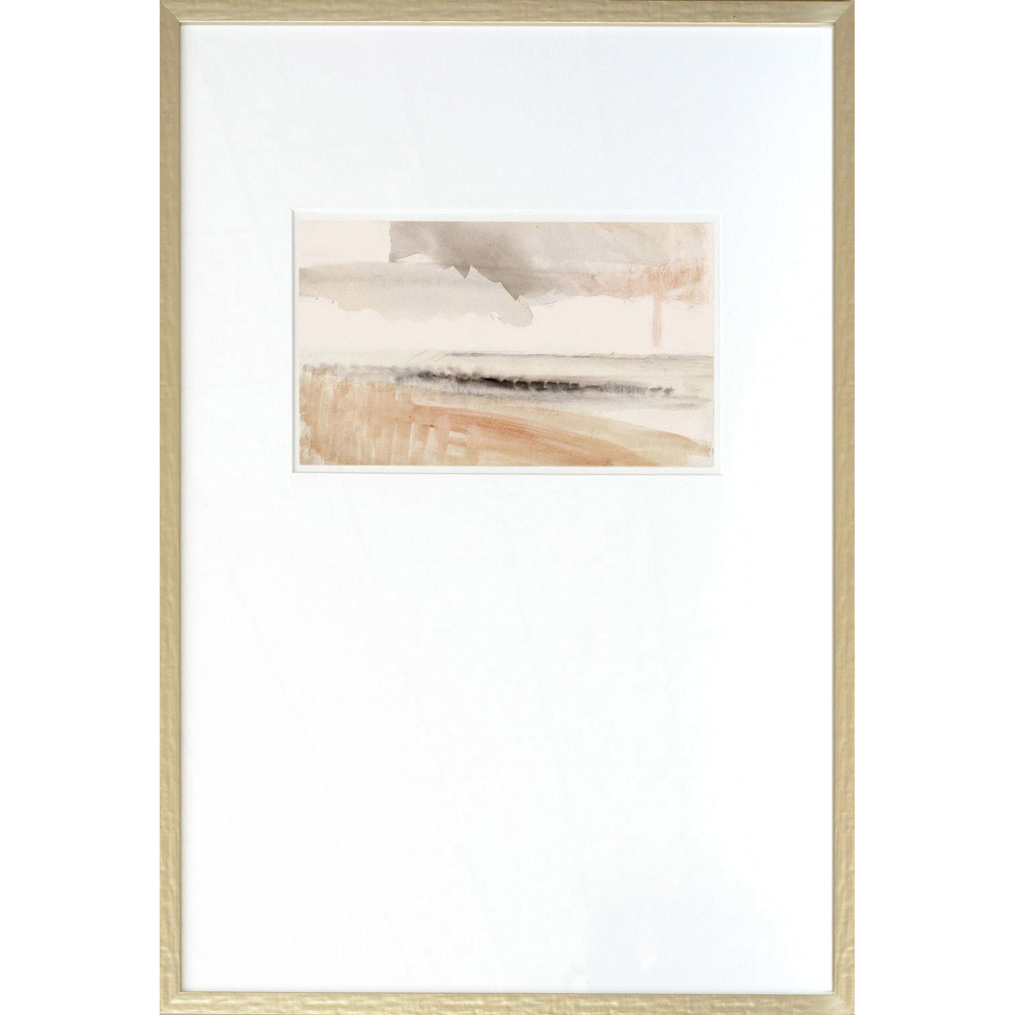 William Turner was an English romanticist painter who is credited with being a precursor to the French Impressionist movement. His broadly applied atmospheric washes of paint earned him the title of 'the painter of light'. Inspired by spectacular sunsets in 1816 England. Each of the Turner Scapes is off set in a double thick oversize, bottom weighted matte with a fine mottled silver frame.