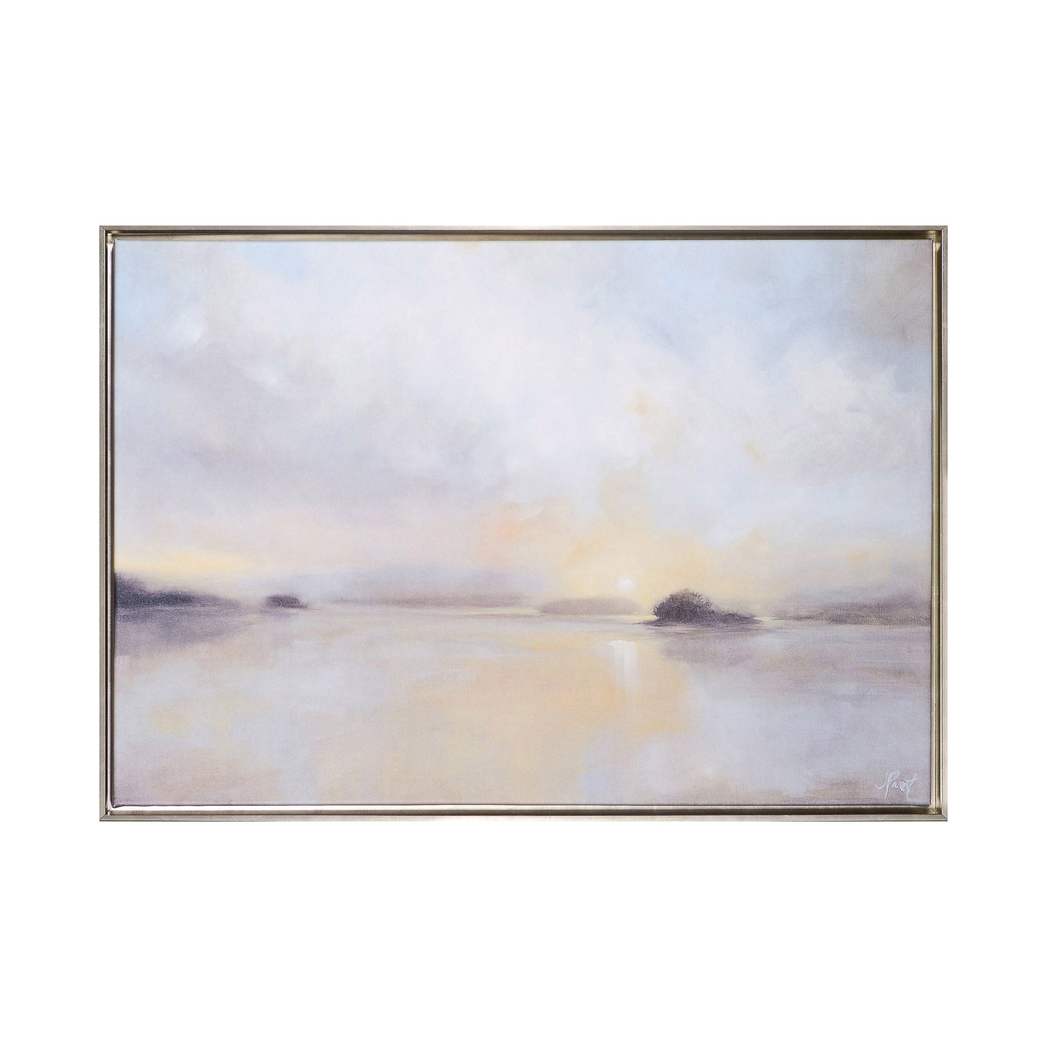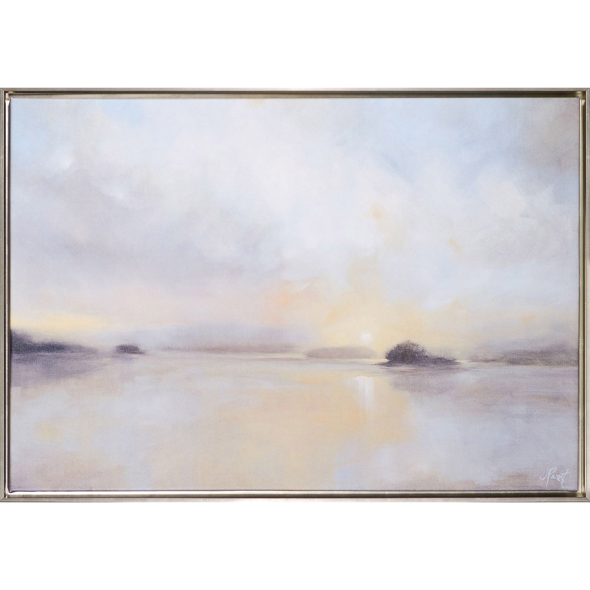 Joanne Parent envisions an endless sky in the soft warm light of an early winter day. This ethereal pastel beautifully blends neutral tones in a timeless piece. Printed on canvas and framed in a elegant silver gild, floater profile. Also available under glass.