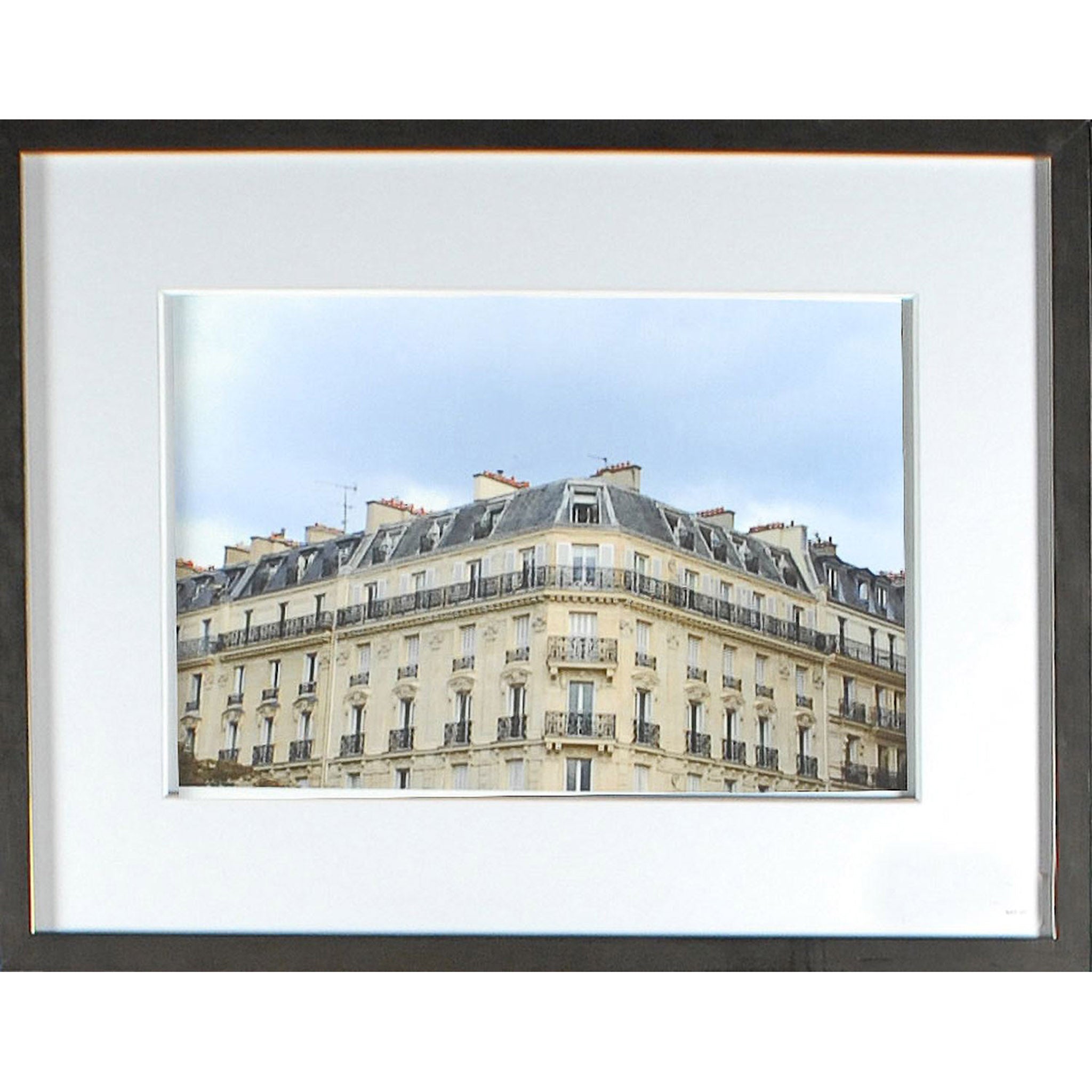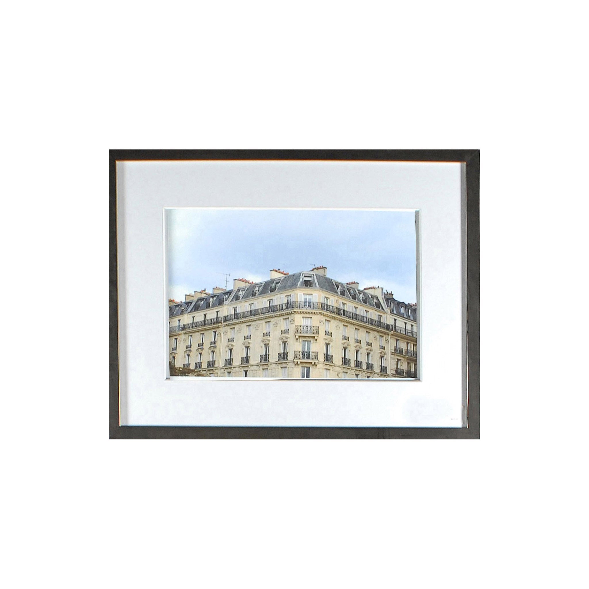 The historical Latin Quarter in Old Paris. Located on the bank of the Seinne, on what was a 1st century Latin settlement, it is today the vibrant heart of the city. Framed with wide, double thick white matte with conte chalk detail and brushed mocha, pewter profile.