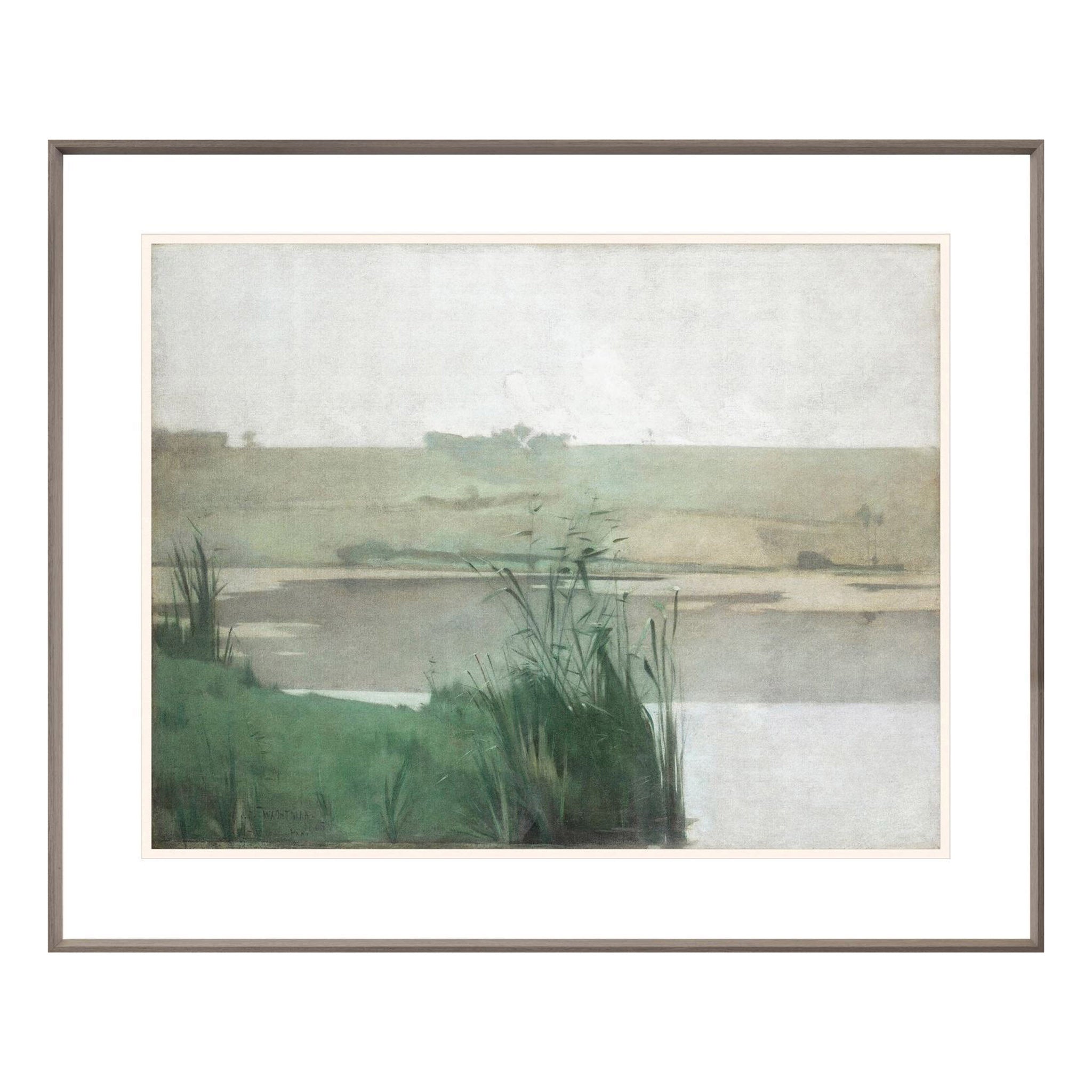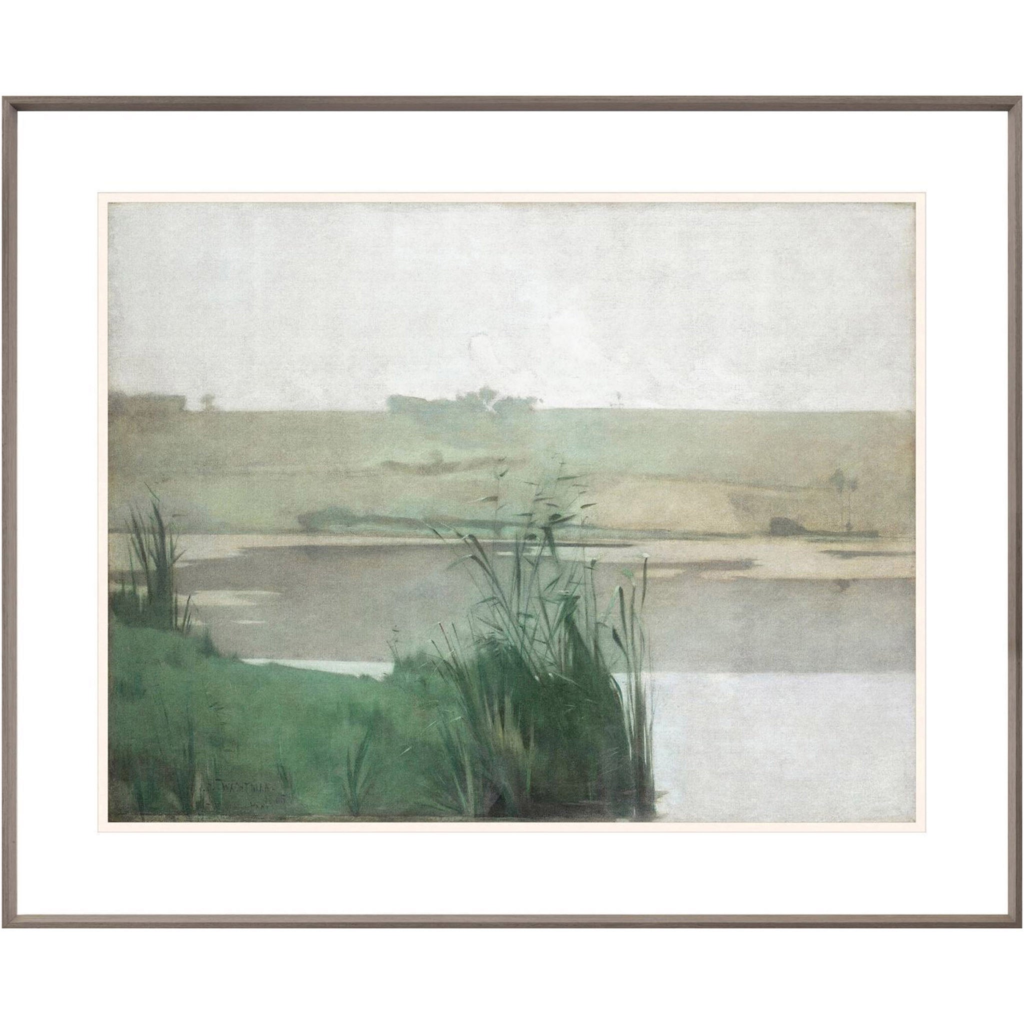 A gentle shoreline offers a contemplative scene with it's soft greens against neutral tones. Sure to create a relaxing atmosphere for any room.