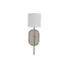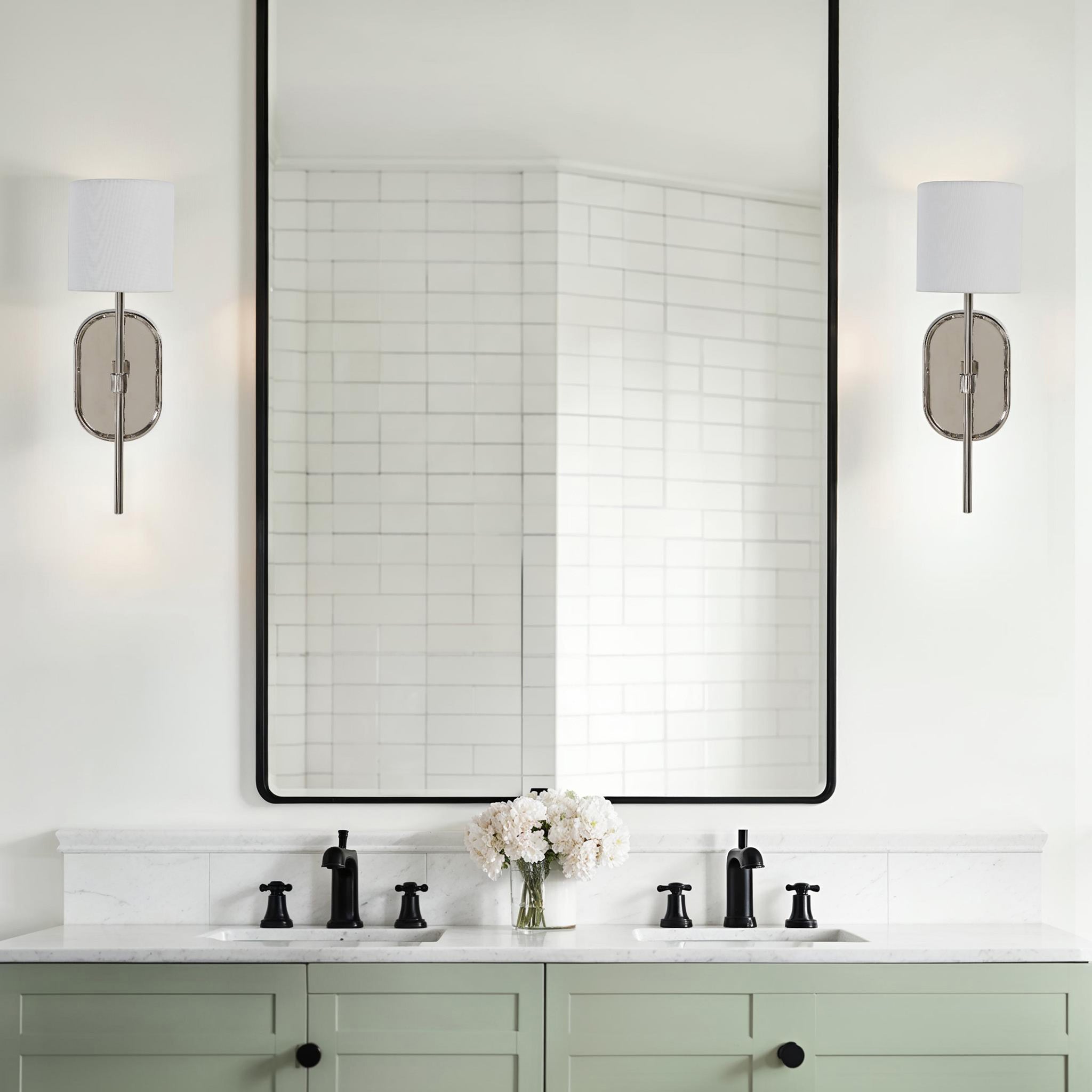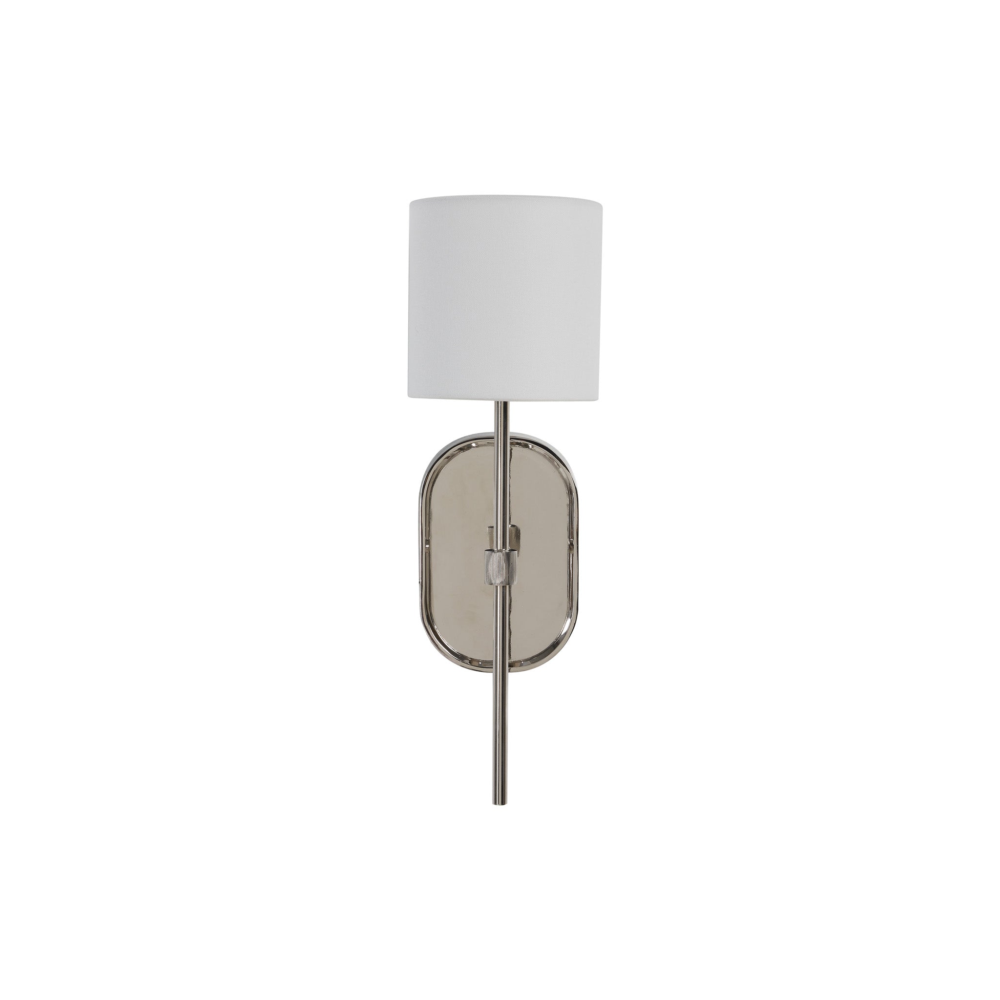 Combining sleek polished nickel-plated forged aluminum and pure ivory linen, incorporate this handsome wall sconce in your decorating scheme to deliver transitional charm and warm, ambient light at the flick of a switch. Displayed on its own, it makes a statement of great taste that gets exponentially stronger when paired up or featured in multiples.