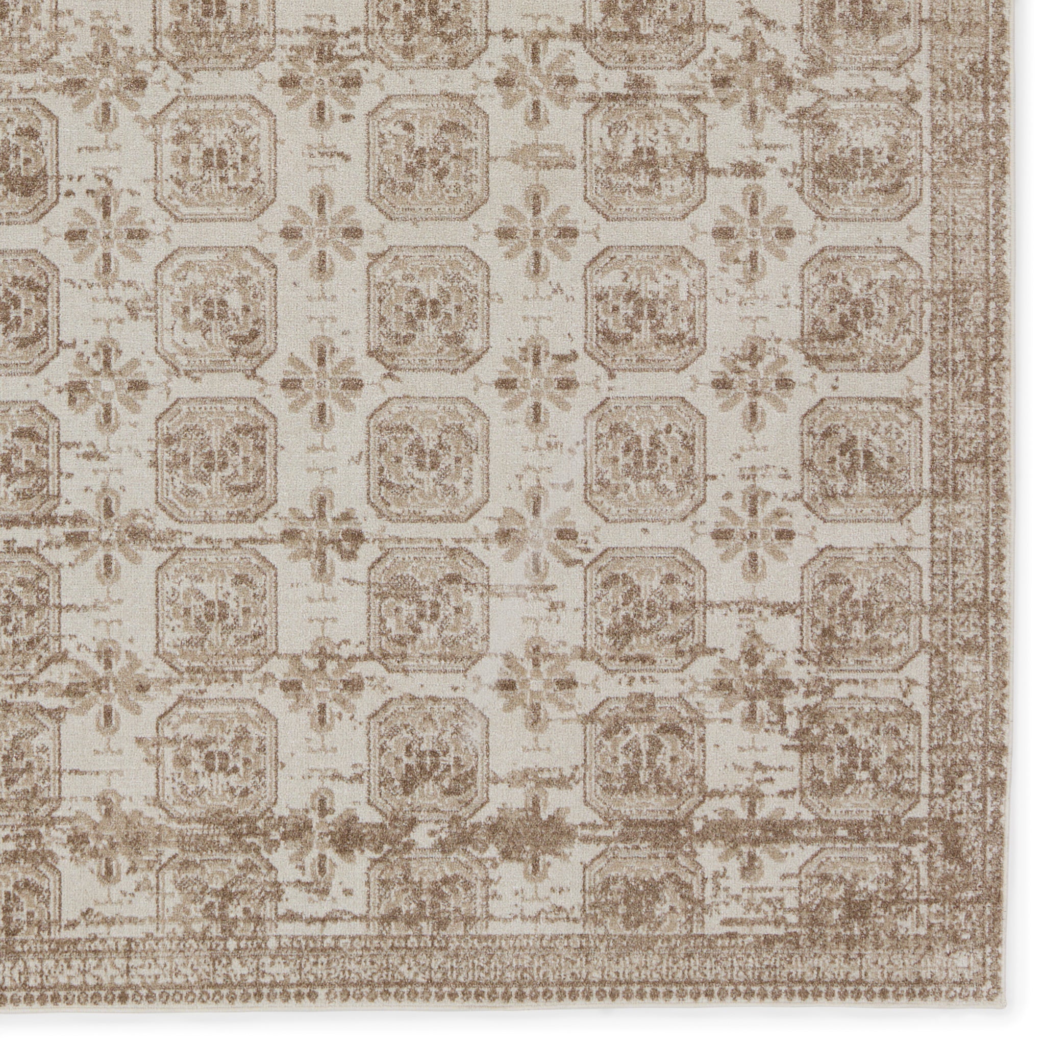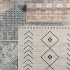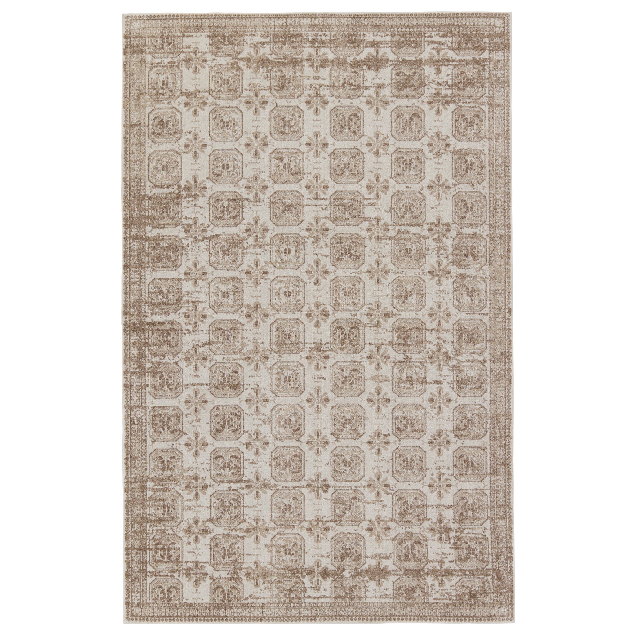 The incredibly chic Nadine collection offers durability and easy-care without compromising one bit on the style. This kid and pet-friendly assortment of rugs features a washable quality and a range of globally inspired designs that anchor rooms with eye-catching appeal. The Milea rug showcases a slightly distressed trellis pattern in tan on a cream and beige striated background. The 100% polyester fibers provide a slight sheen and lasting quality that thrives in high traffic areas of the home such as kitchens, bathrooms, living rooms, bedrooms, and halls.