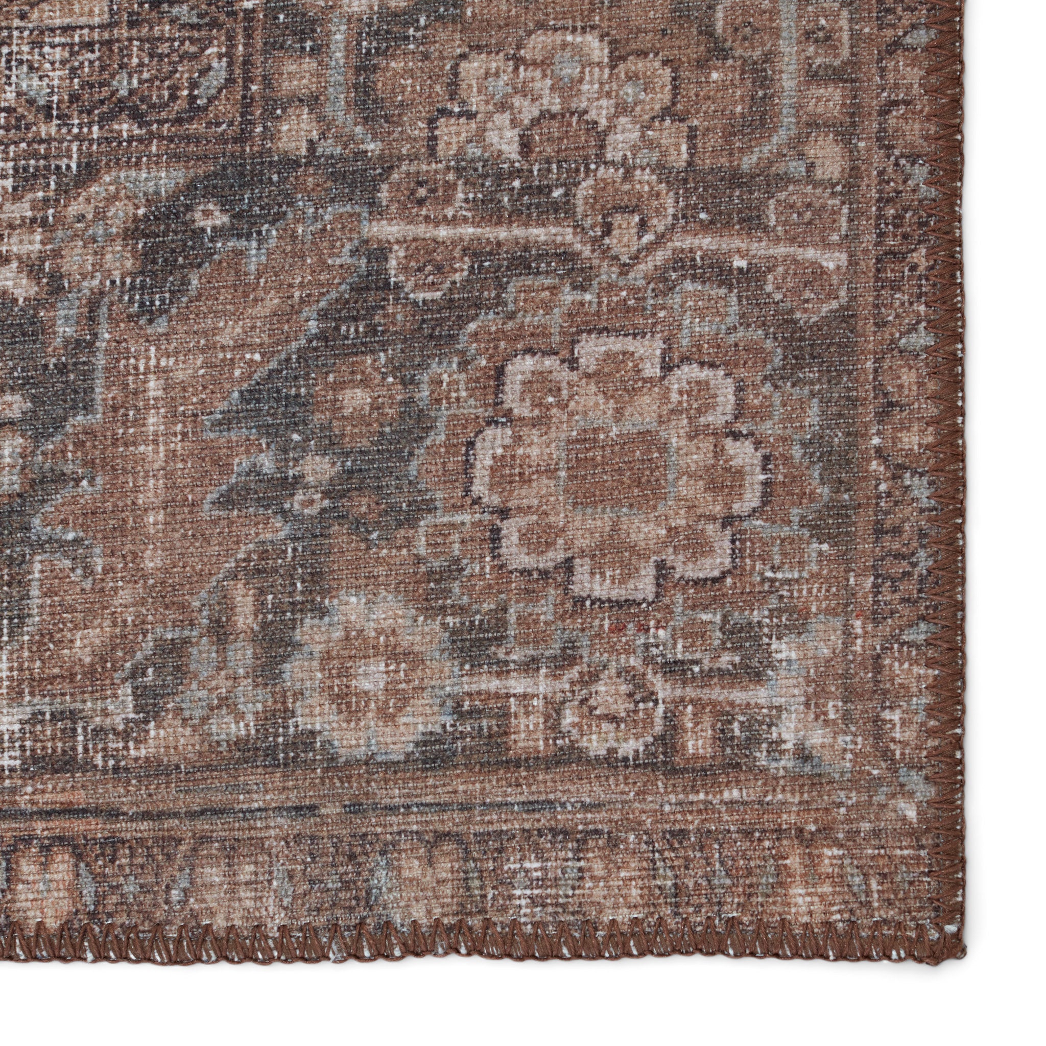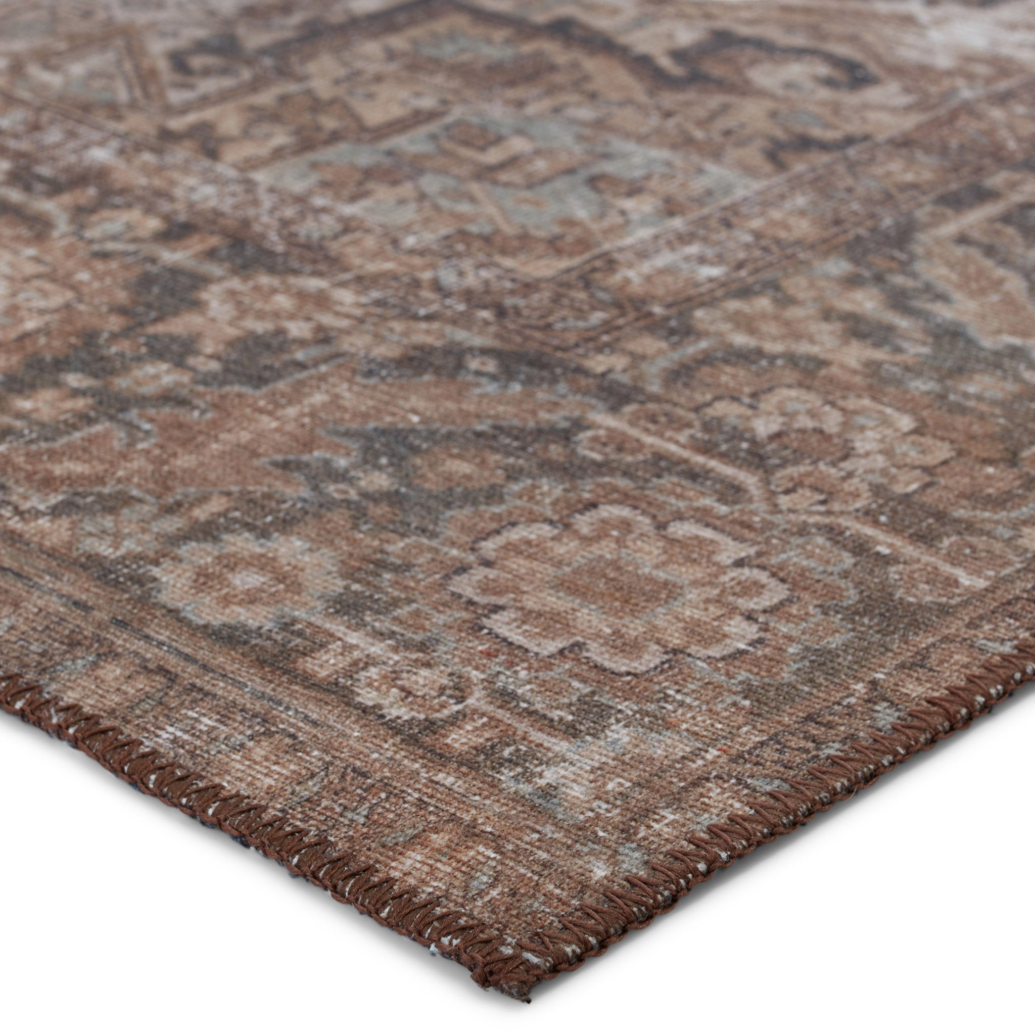 Inspired by well-traveled vintage designs, Kate Lester has joined with Jaipur Living to launch the Harman collection. This impressive assortment of antique textile designs lends heirloom-quality looks and livable style to any space. The Minita area rug showcases a faded medallion pattern emphasized by hues of brown, tan, and hints of blue. This digitally printed rug boasts a perfectly distressed effect for effortless charm that is matched with durability to stand up to heavily trafficked spaces such as entryways, halls, kitchens, and living rooms.