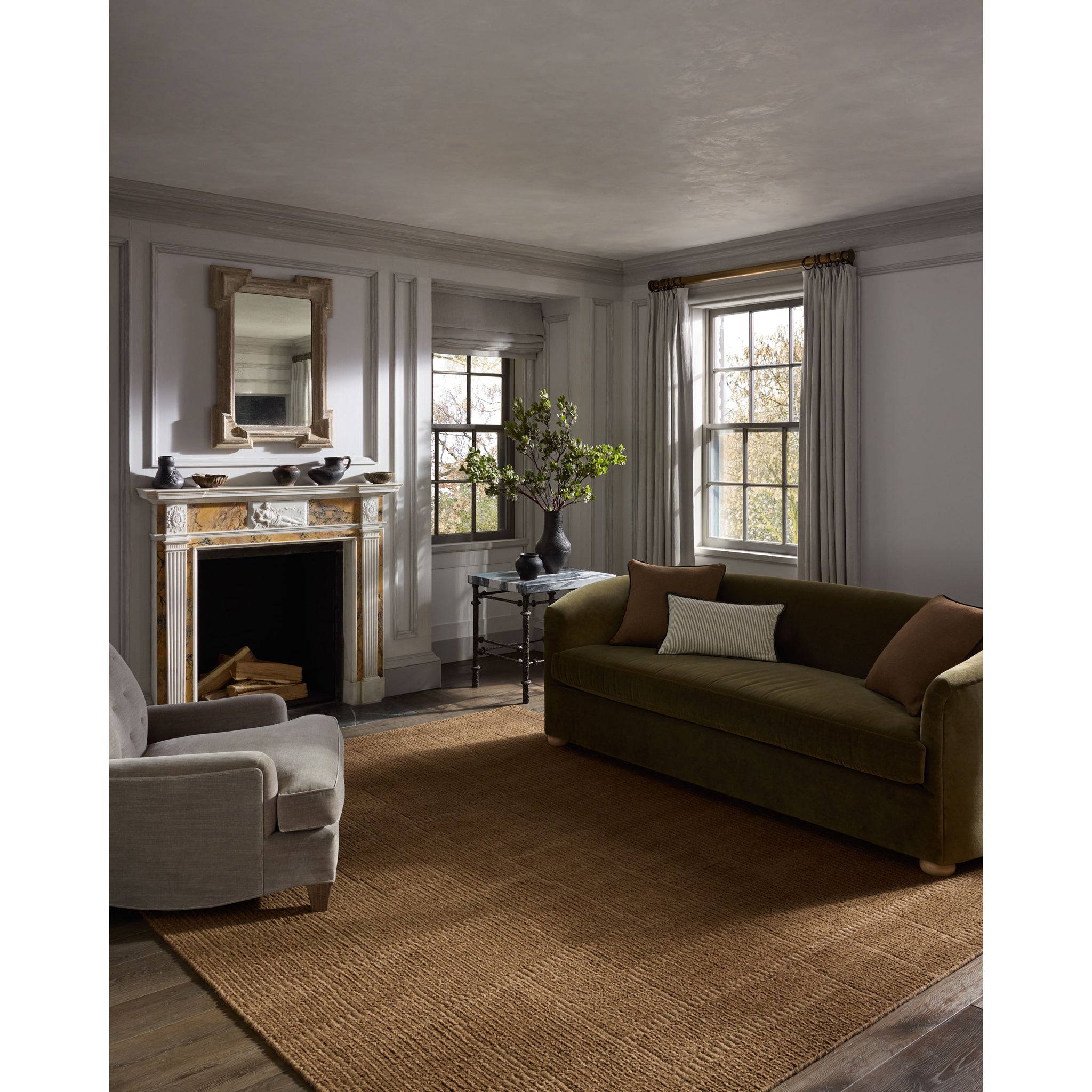 La collection Greenwich de Jeremiah Brent x Loloi est un tapis aux tons unis et à la texture magnifique, aux poils subtilement variés. Jeremiah apprécie cette collection pour ses couleurs riches, inspirées de la nature, et son velours mélangé laine et coton, plus doux et plus malléable que la laine traditionnelle. Tissé à la main en Inde, il est certifié Goodweave, gage de notre engagement envers une production éthique et du soutien aux communautés de tisserands.