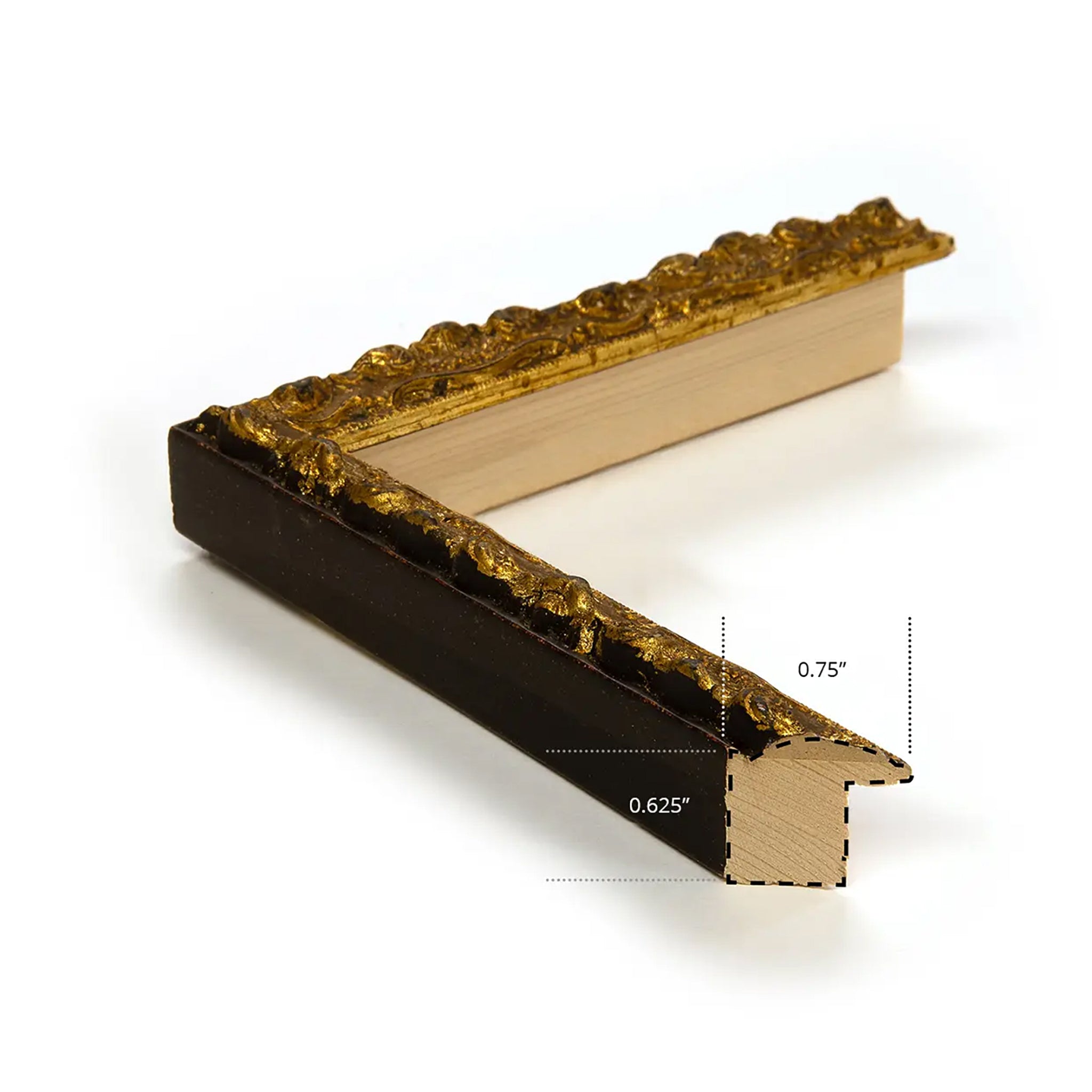 Finition du cadre : Moulure en bois détaillée en finition dorée