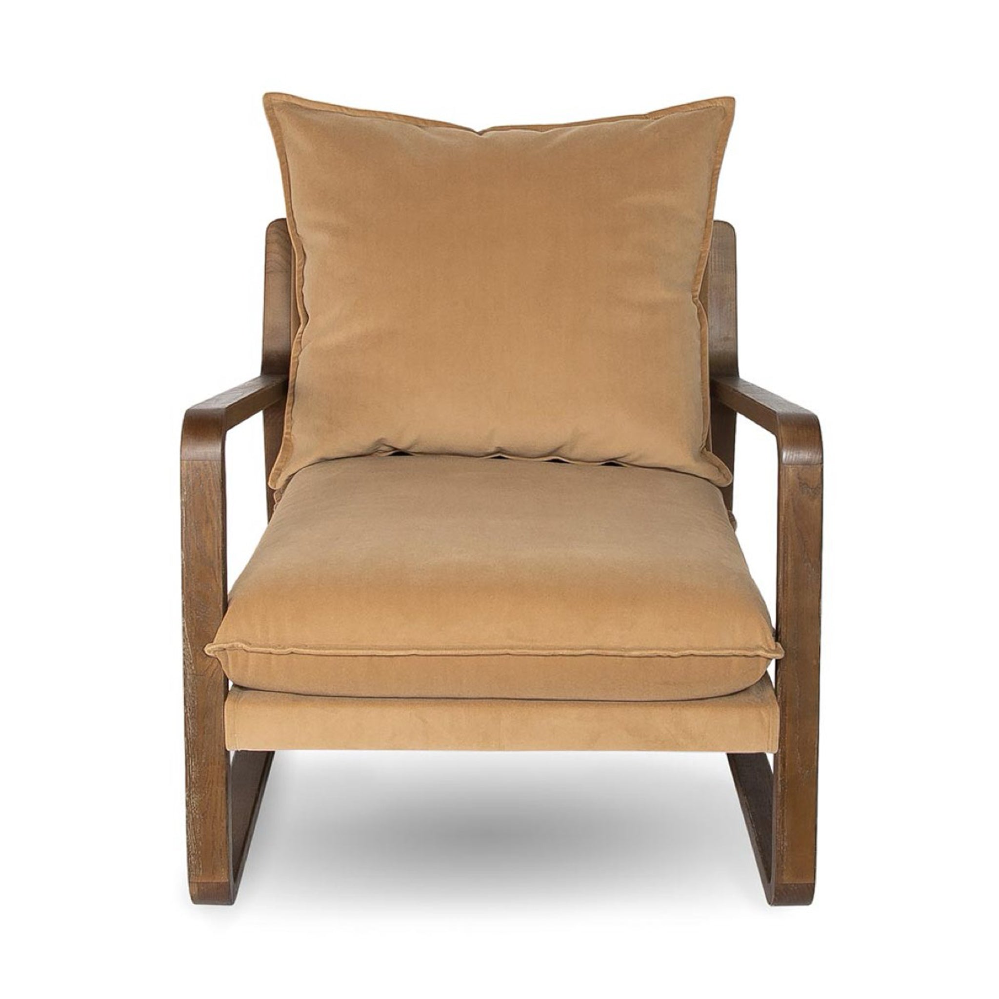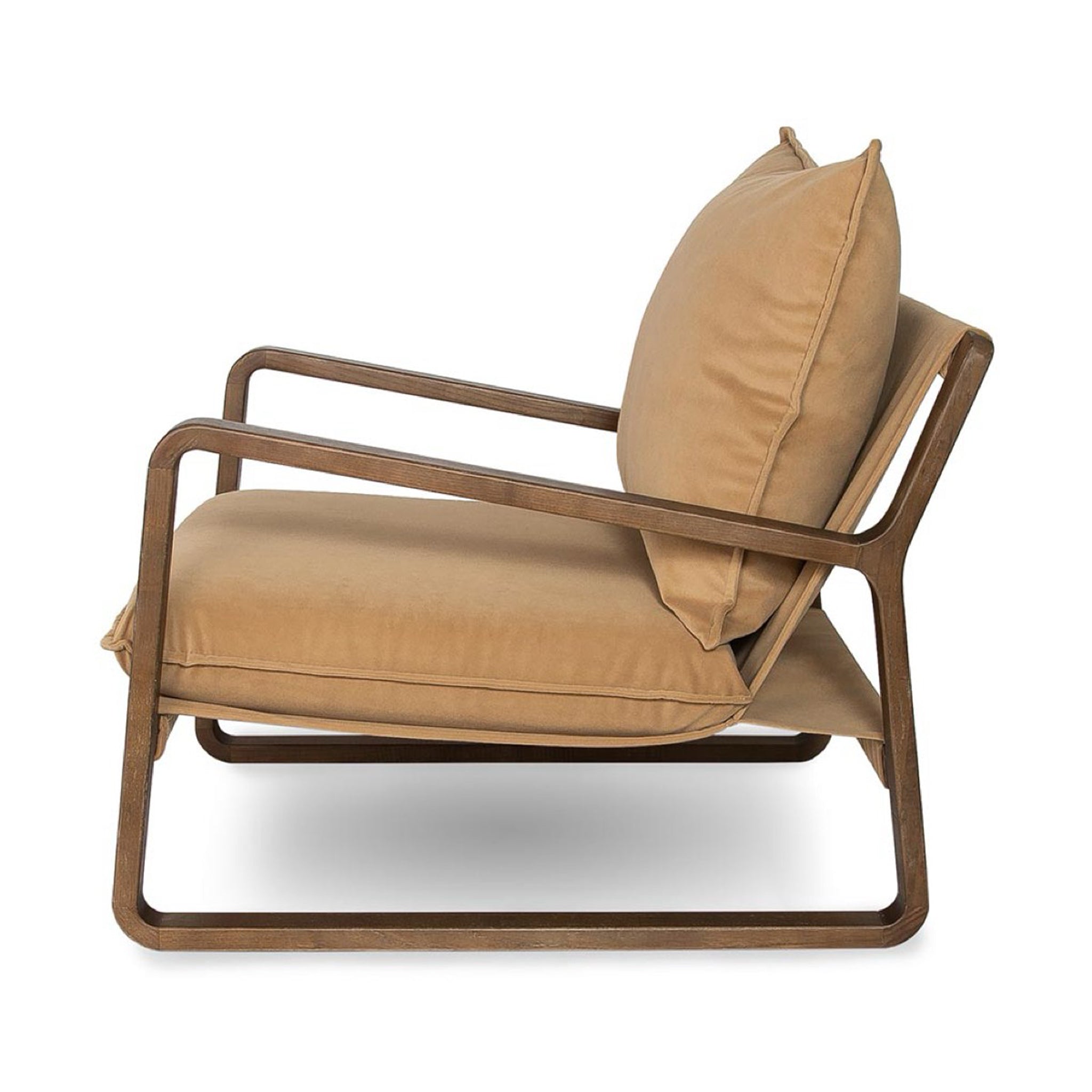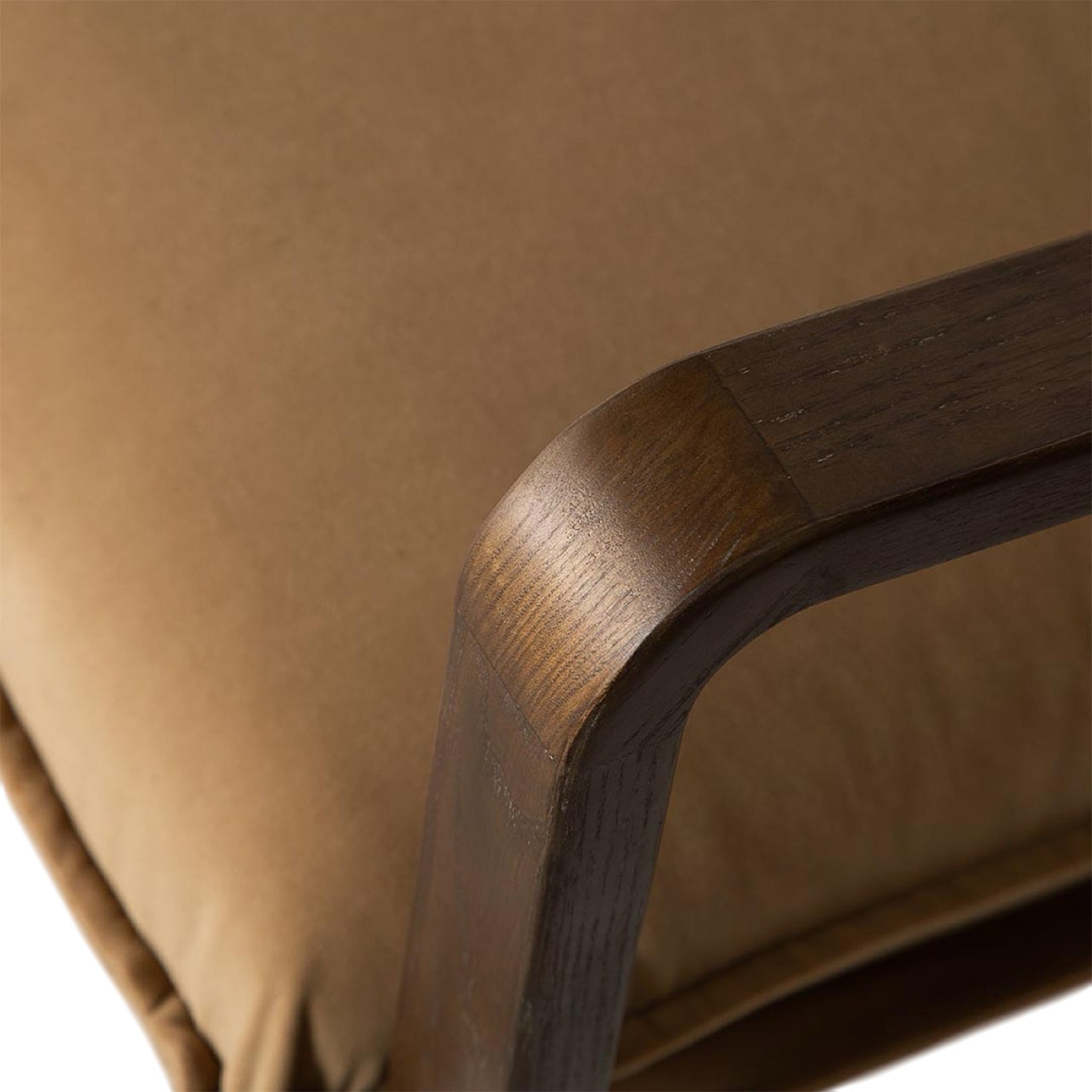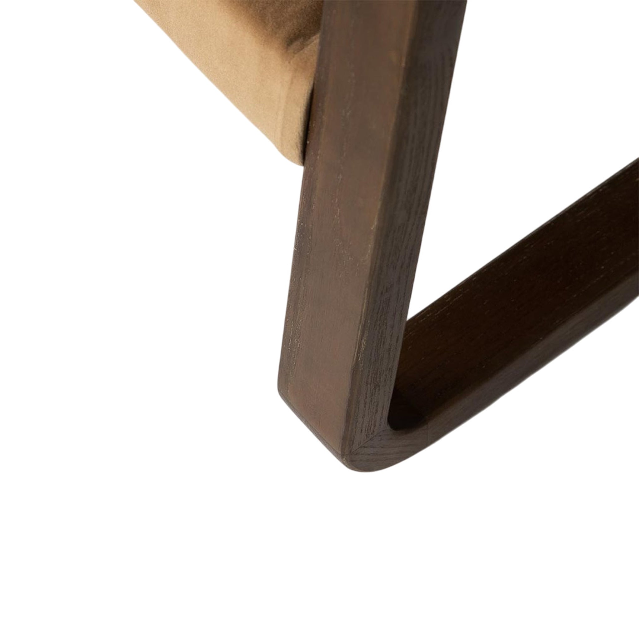 Bercée dans un cadre en bois élégant, cette chaise d'appoint discrète est dotée de généreux coussins enveloppés de somptueux poly-velours qui murmurent une invitation à la détente.