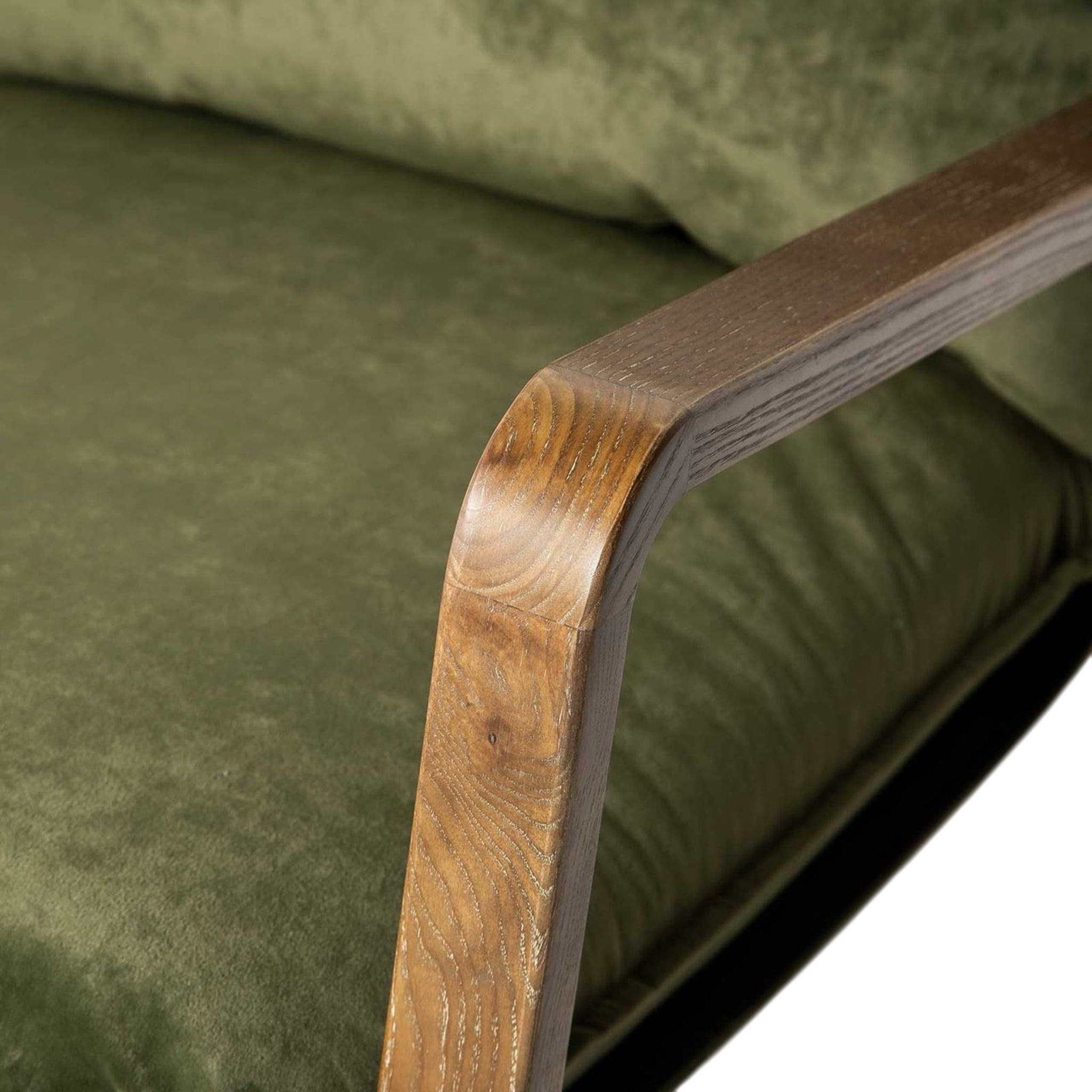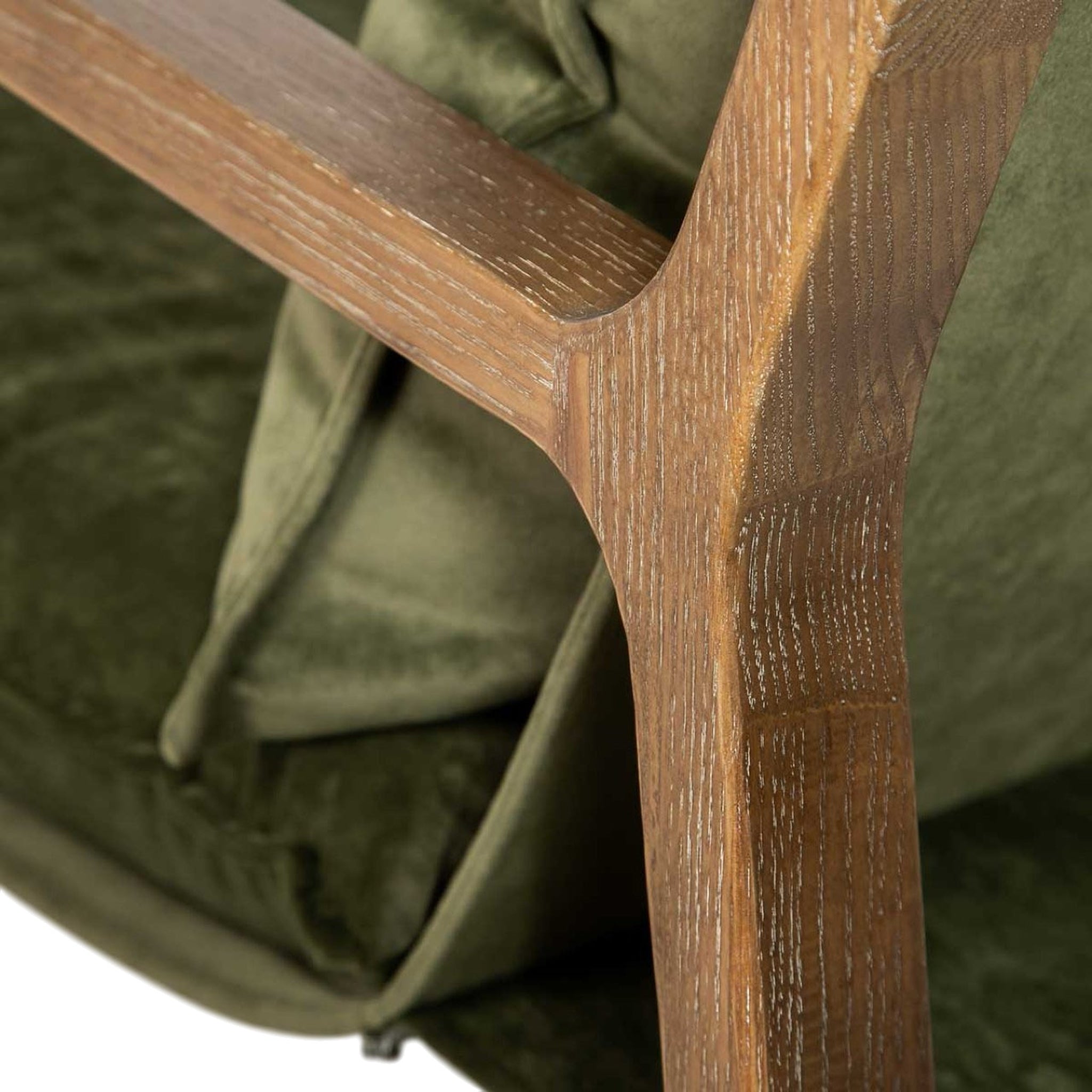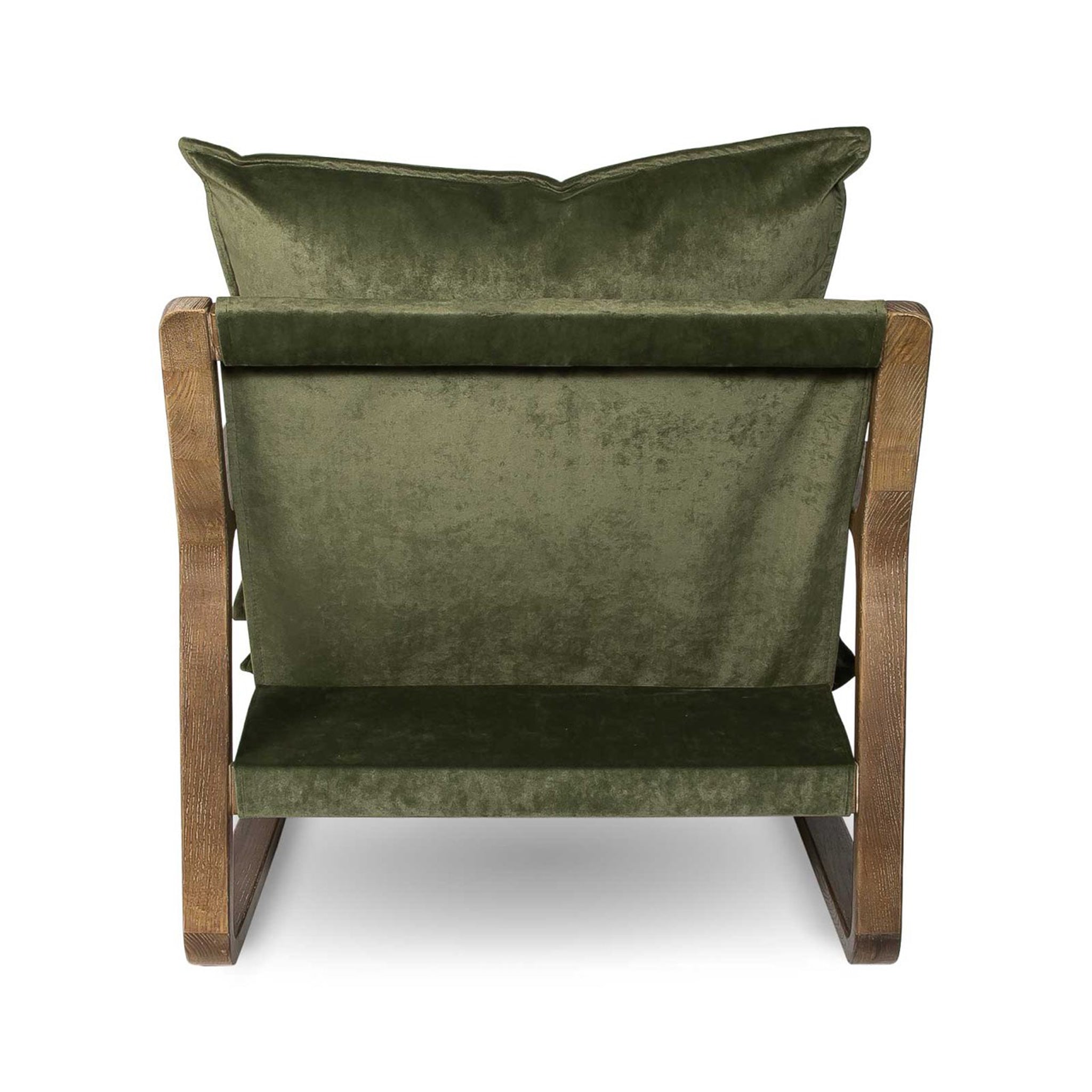Bercée dans un cadre en bois élégant, cette chaise d'appoint discrète est dotée de généreux coussins enveloppés de somptueux poly-velours qui murmurent une invitation à la détente.