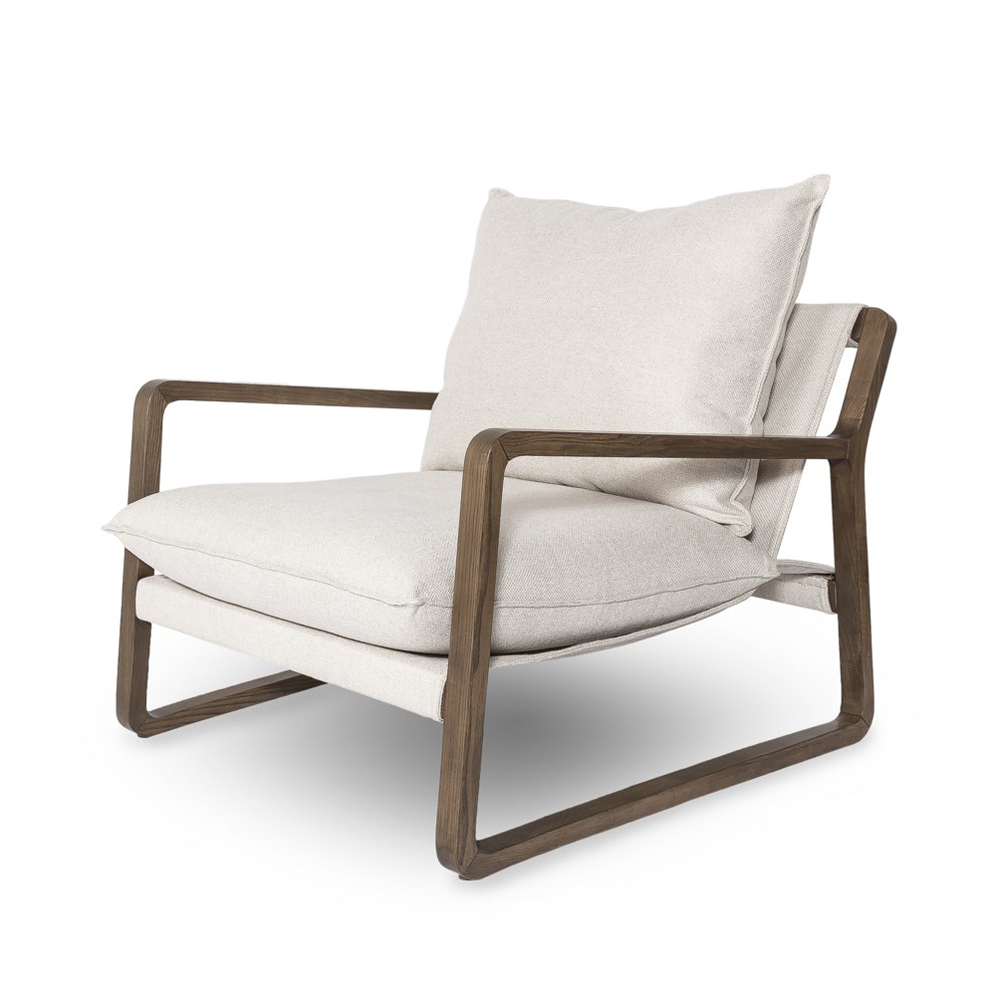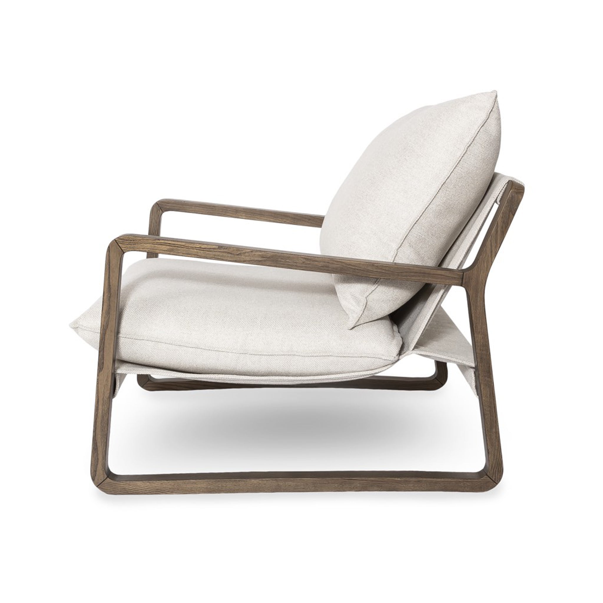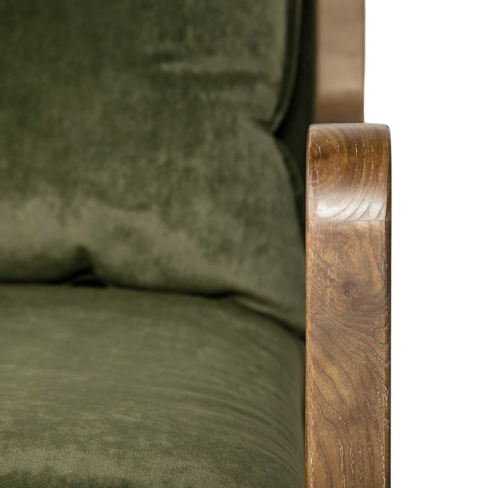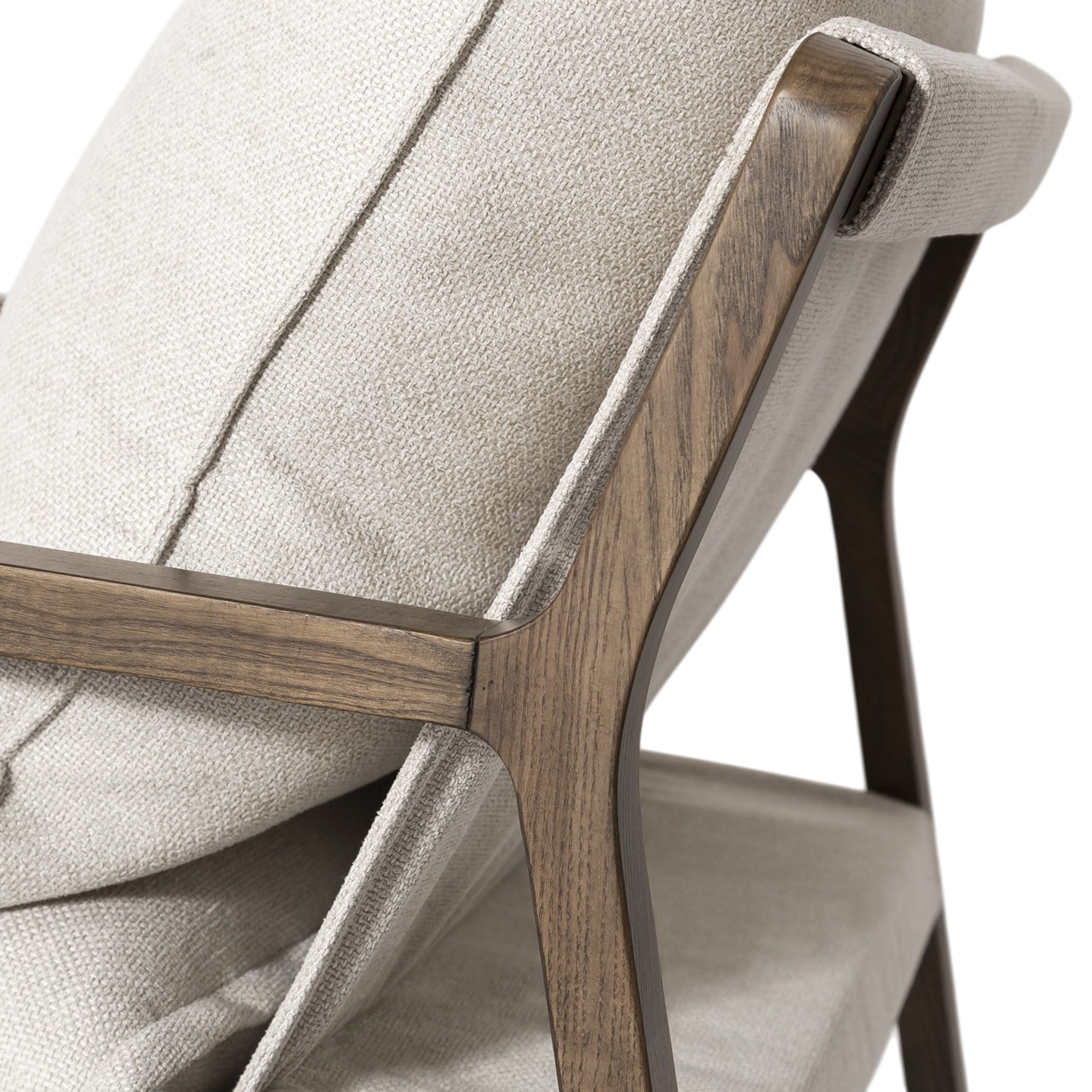 Bercée dans un cadre en bois élégant, cette chaise d'appoint discrète est dotée de généreux coussins enveloppés de somptueux poly-velours qui murmurent une invitation à la détente.