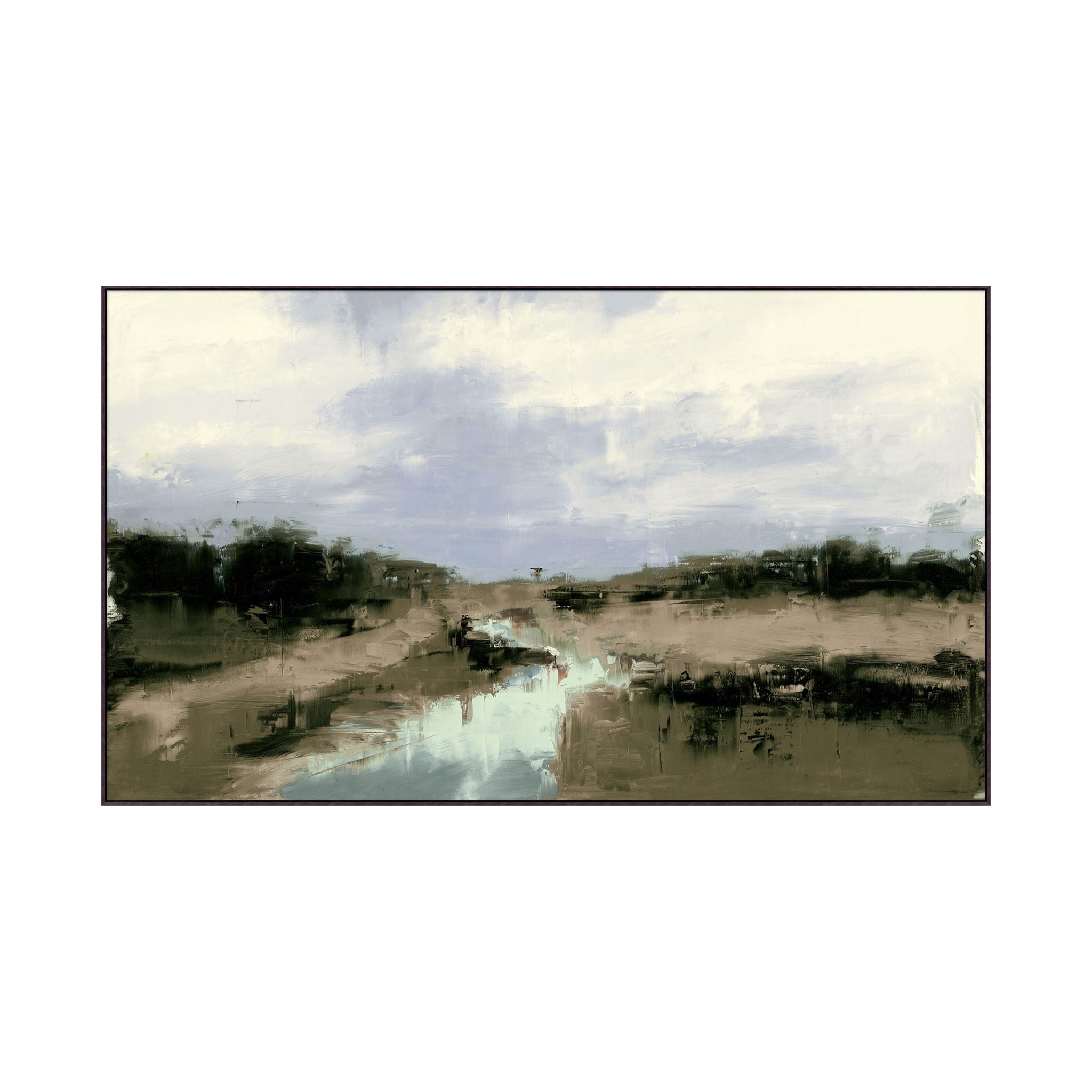 Abstract Stream est une œuvre poétique qui capture l'essence d'un ruisseau sinueux par temps nuageux. Enveloppée dans une galerie avec des retouches artistiques, cette œuvre est présentée dans un cadre flottant en bois à la finition expresso pour un rendu raffiné. Avec sa représentation abstraite d'un ruisseau serpentant à travers une prairie, Abstract Stream vous invite à explorer la rencontre entre nature et art. Les jeux d'ombre et de lumière, le doux écoulement de l'eau et les teintes subtiles créent une sensation de beauté sereine.