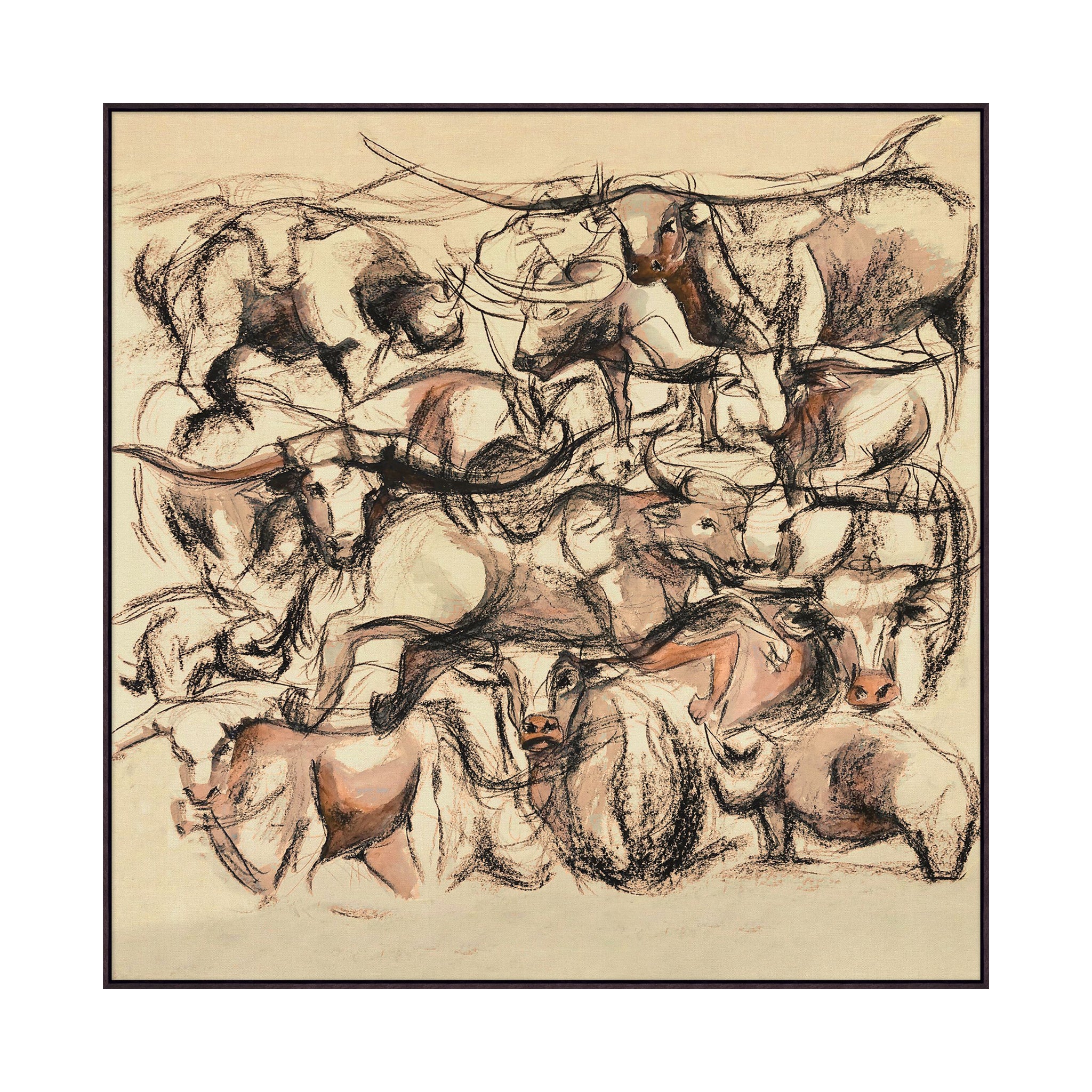 Stampede est une œuvre abstraite électrisante, présentée en giclée sur toile brute, enveloppée dans une galerie avec des retouches artistiques. Cette œuvre captivante capture l'essence du mouvement et de l'énergie sur une toile beige sereine. Dans Stampede, vous découvrirez une esquisse abstraite qui semble prendre vie sous vos yeux. Elle est sublimée par un cadre flottant en bois aux riches tons expresso.