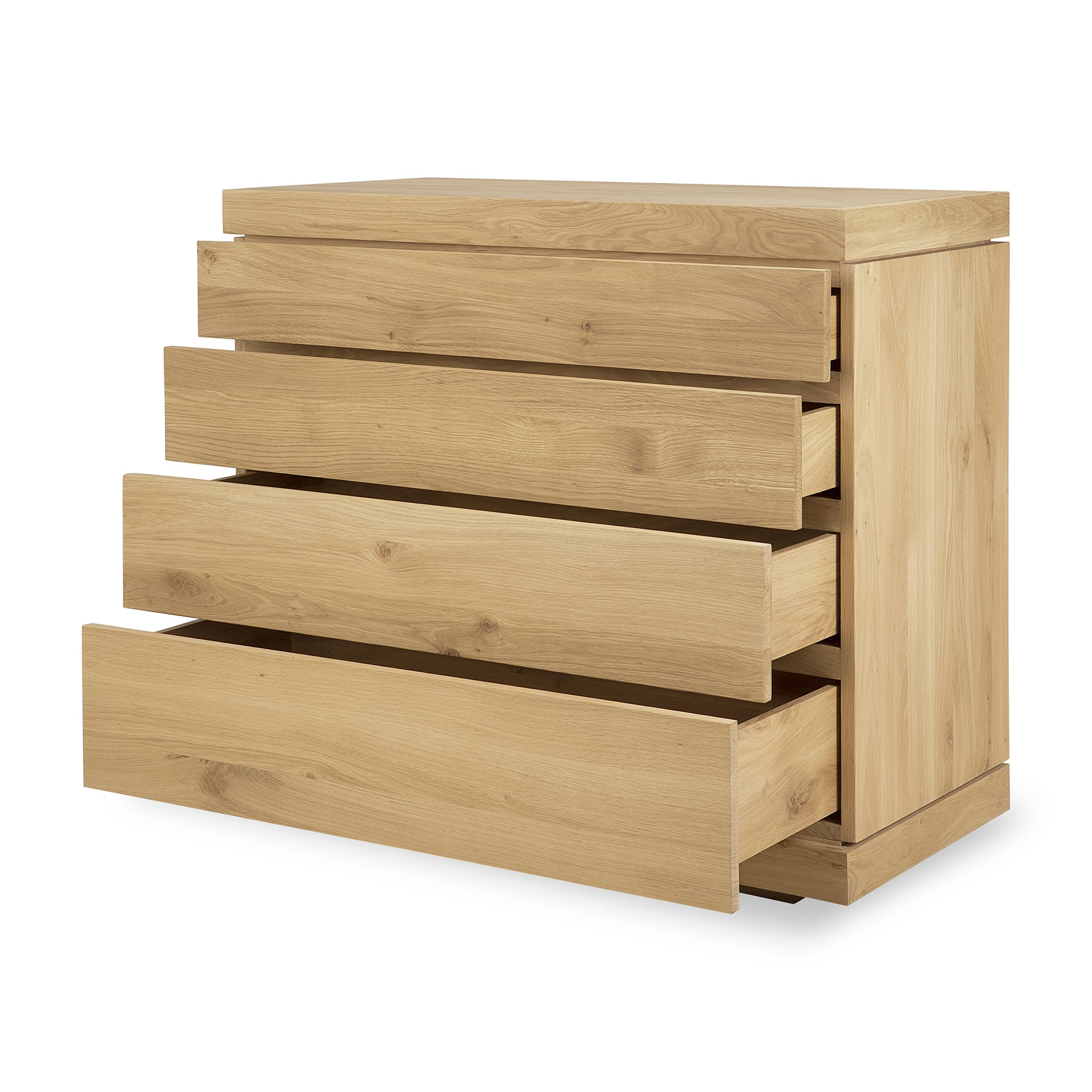 Des motifs en bois naturel en cascade, une construction robuste et un grand espace de rangement sont les points forts de la commode Burger.