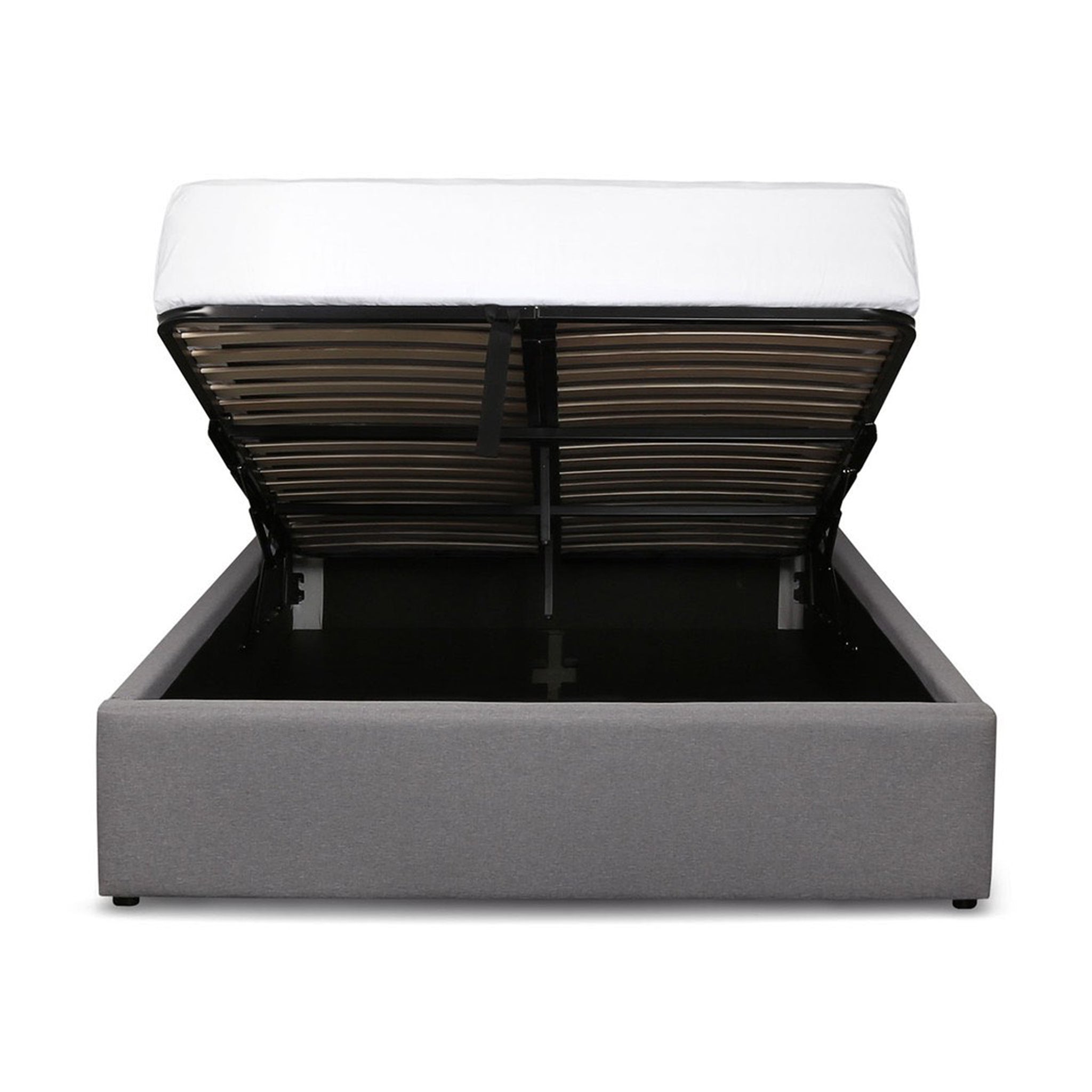 Doté d'un mécanisme de levage à gaz fluide, de beaucoup d'espace et d'une tête de lit capitonnée cousue en ligne dans un tissu durable 100 % polyester de couleur Greige neutre, Leone est discret, élégant et parfait pour les petits espaces de vie.