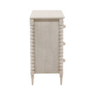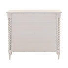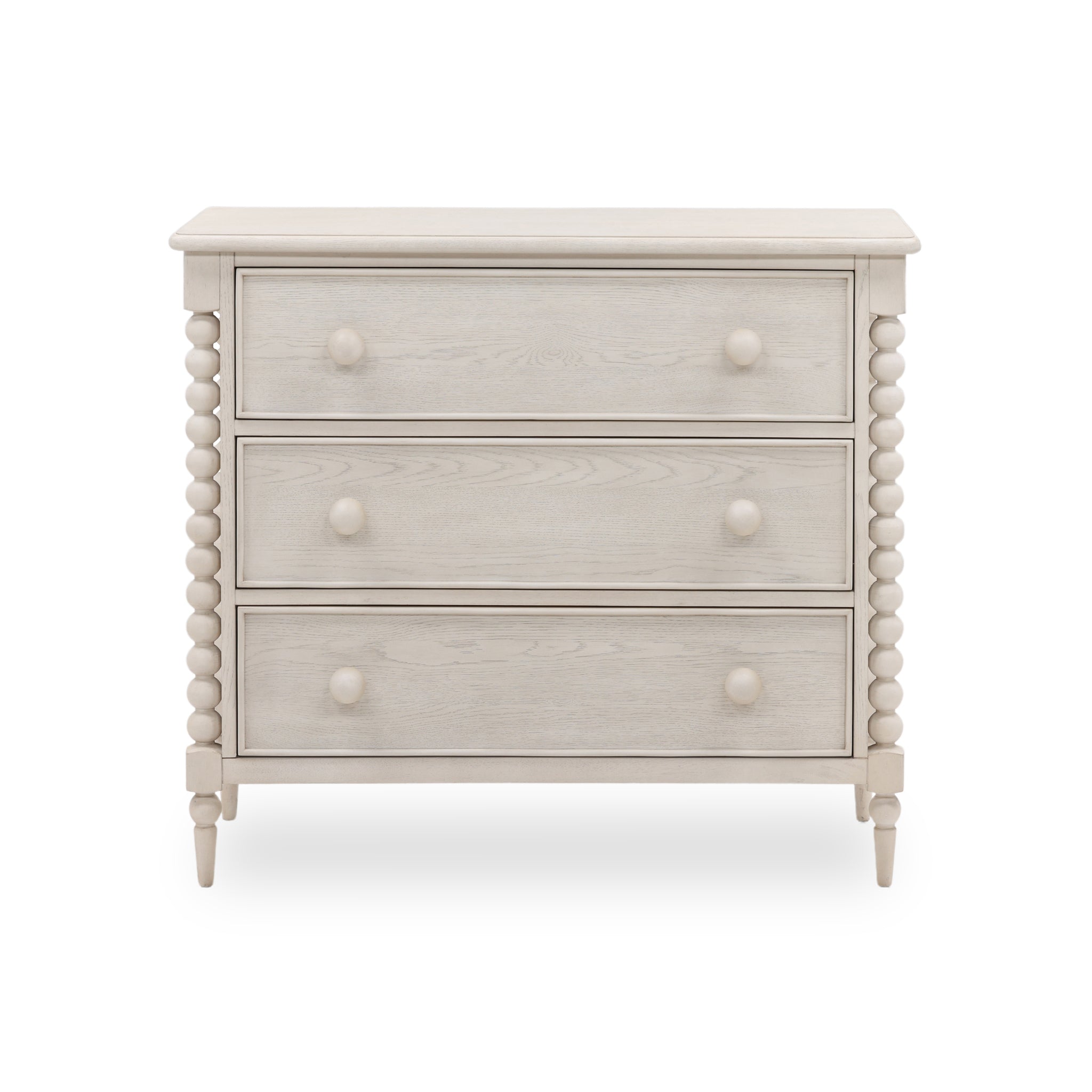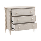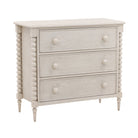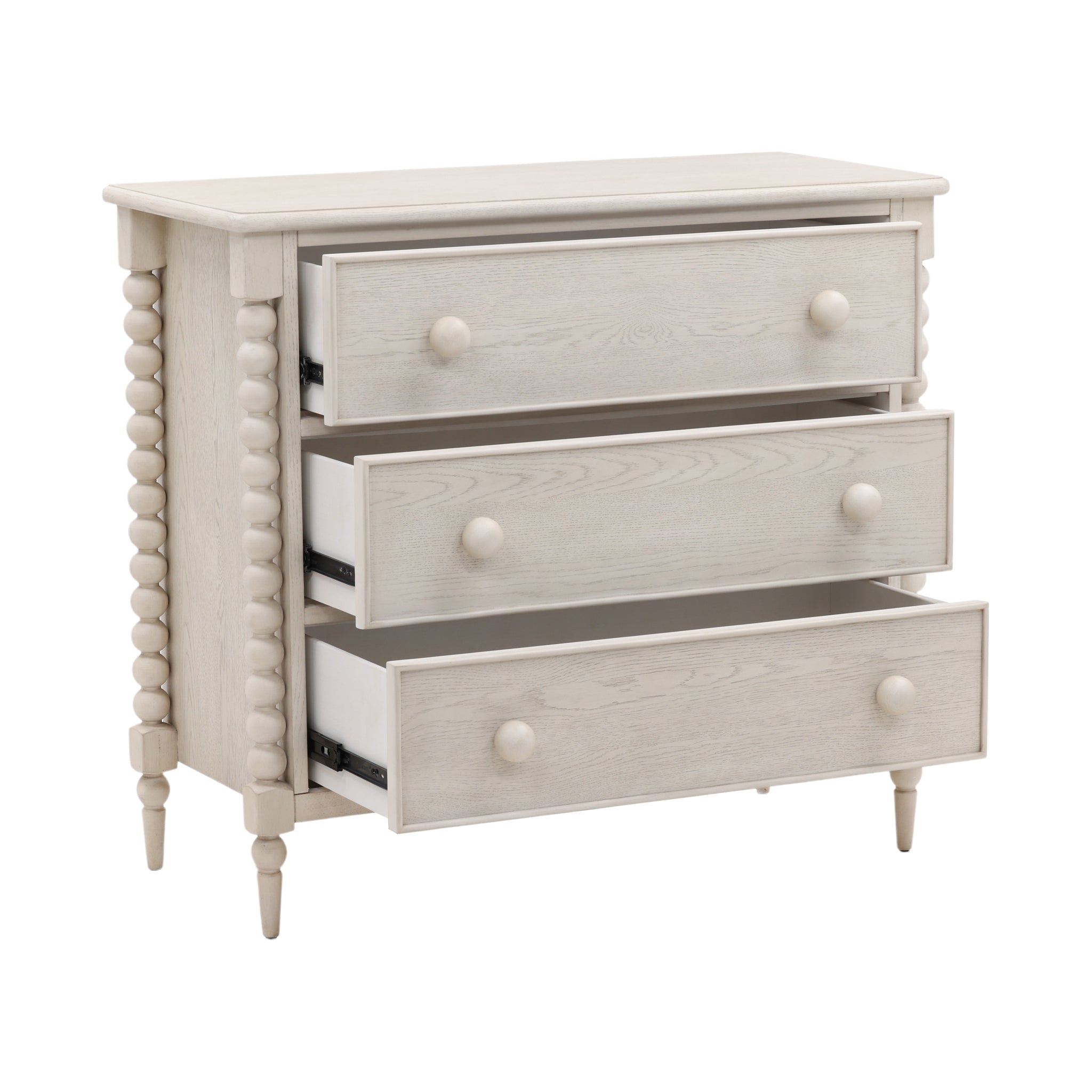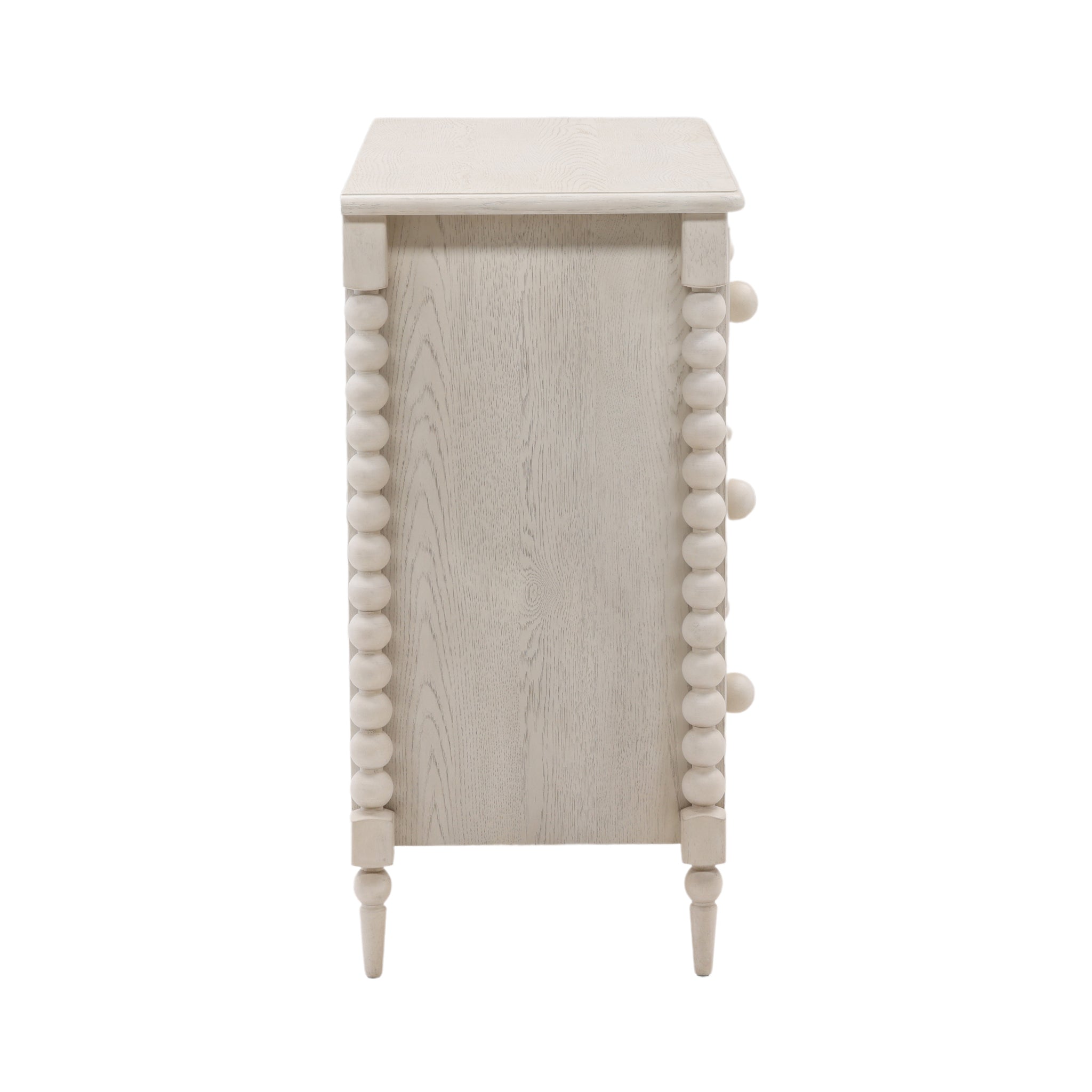 Cette charmante commode apporte une touche d'élégance rustique à votre chambre. Son atout principal réside dans les magnifiques détails en bois tourné, façon bobine, qui forment les colonnes et les pieds verticaux. Avec sa finition en bois clair vieilli au grain apparent, ce meuble offre trois tiroirs spacieux pour un rangement pratique près du lit.
