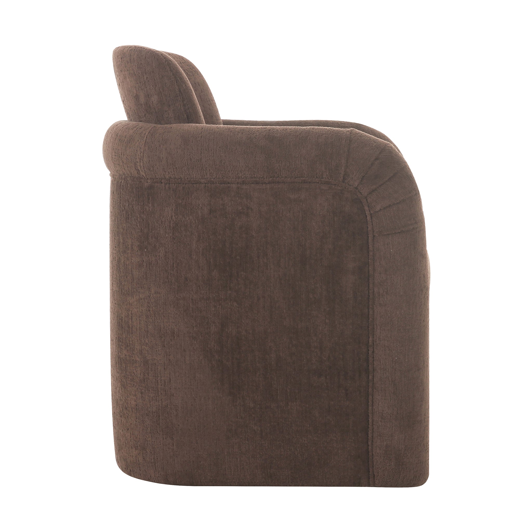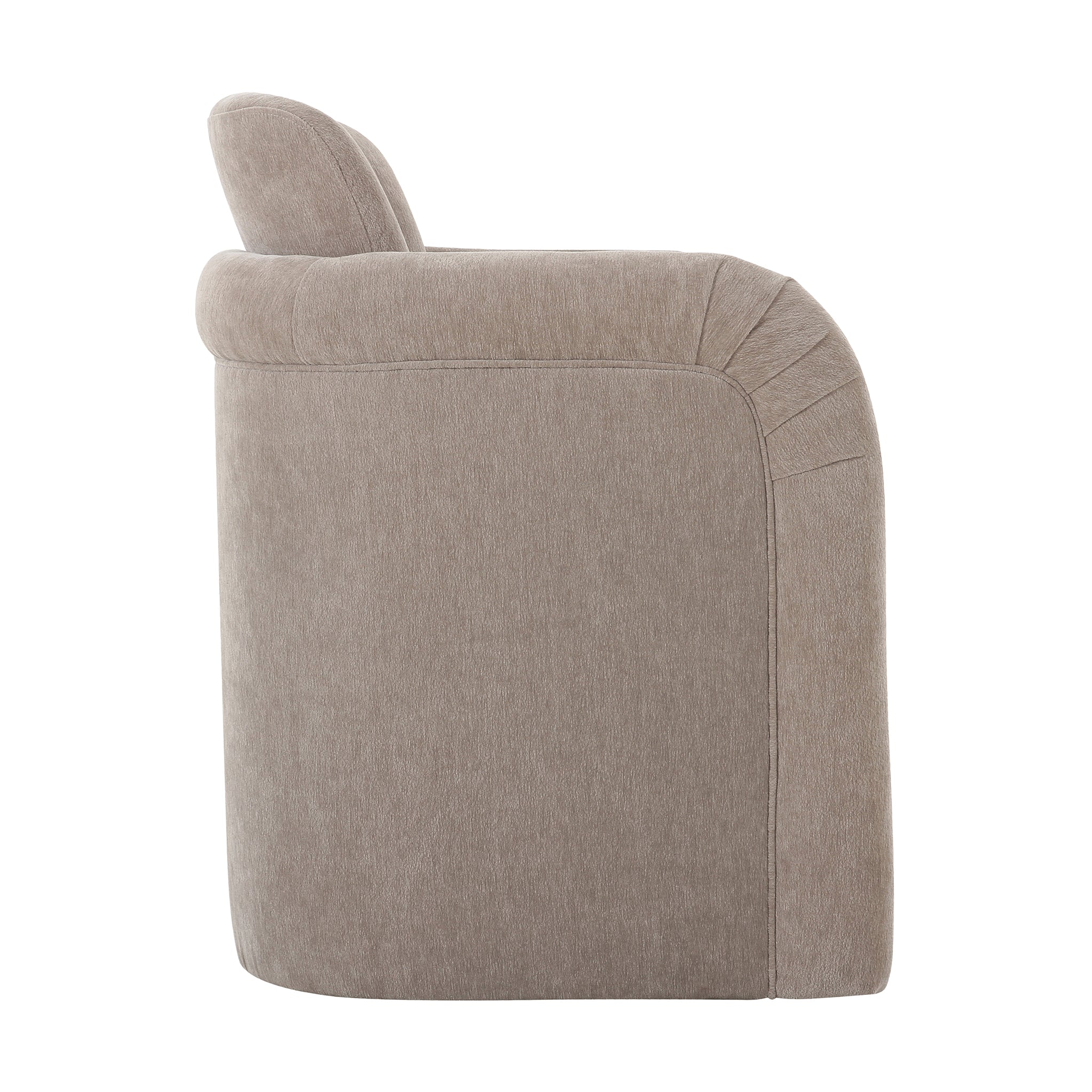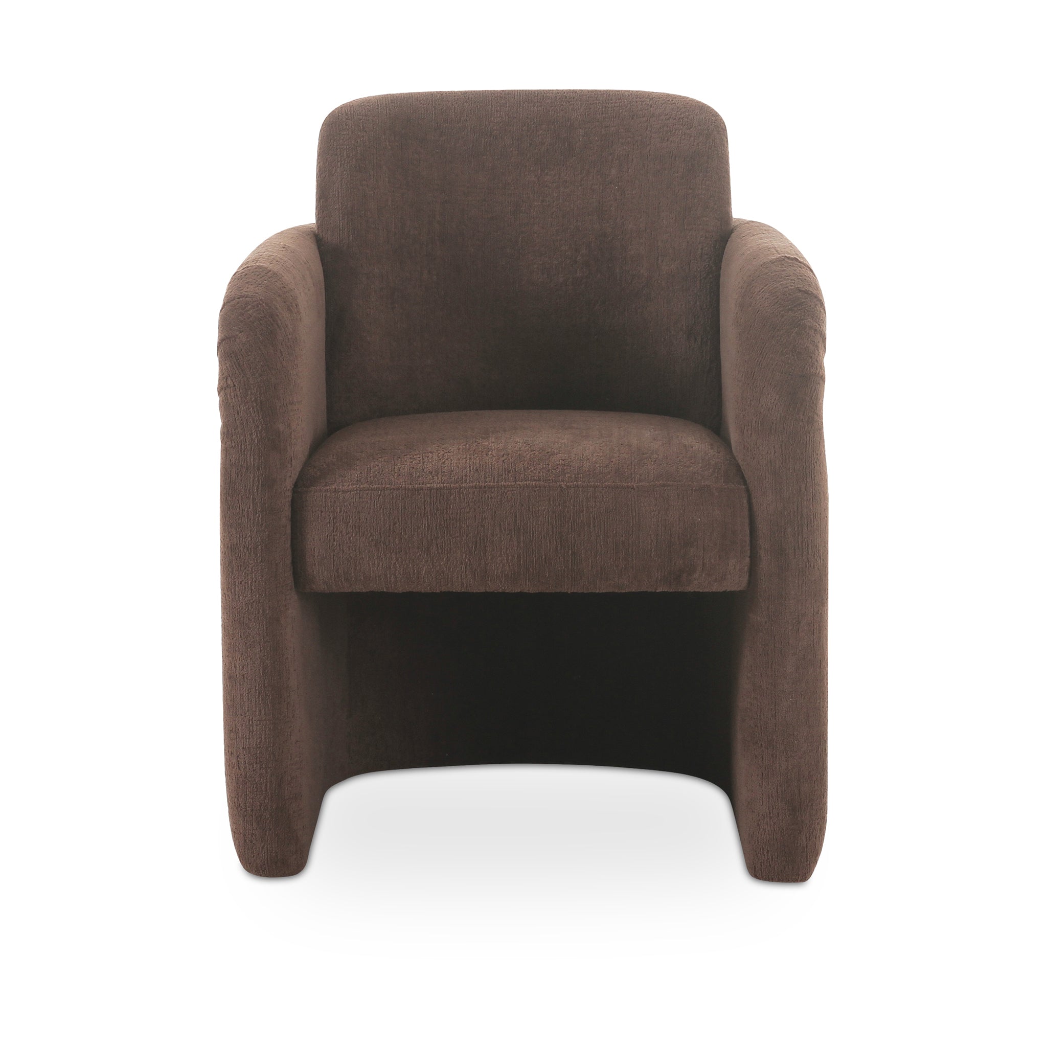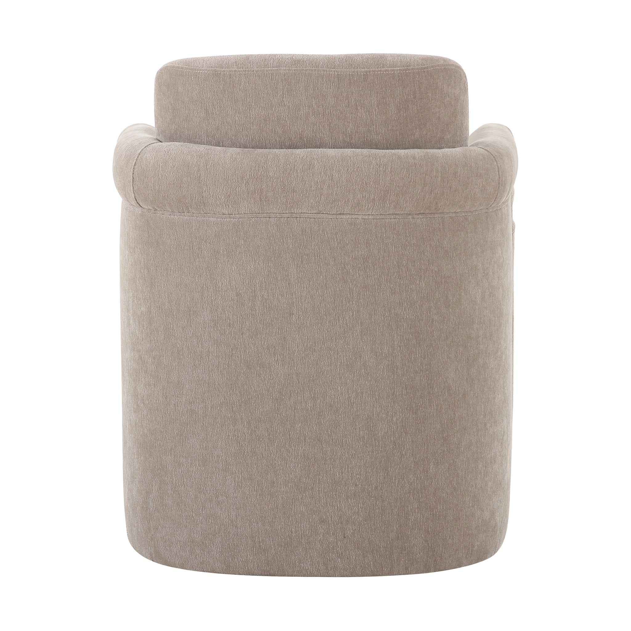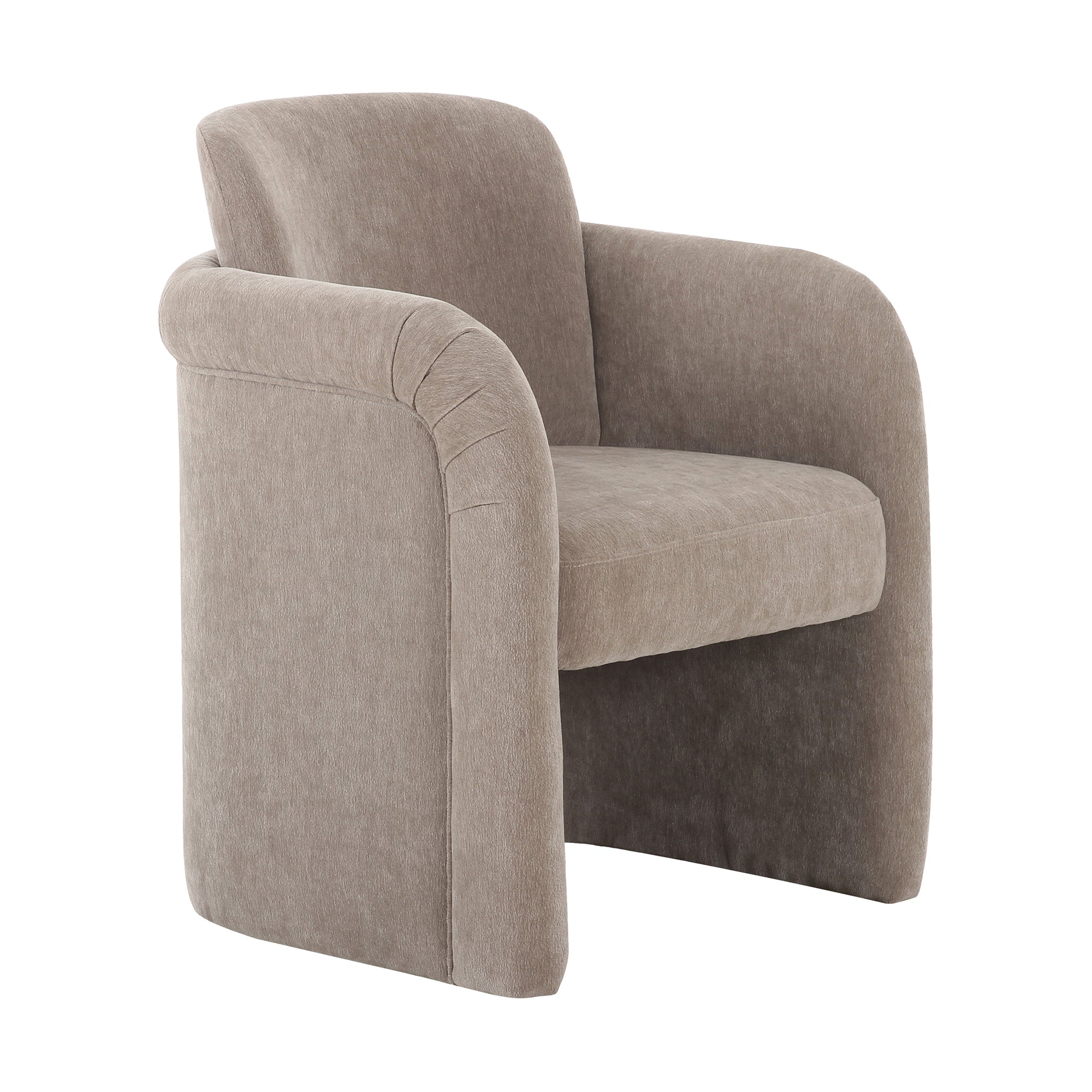La chaise de salle à manger George incarne l'essence même du confort. Son assise généreusement rembourrée semble flotter entre un élégant cadre galbé et rembourré, et un piètement roulant, remplaçable par les pieds en plastique inclus, pour une assise fixe. Les accoudoirs, avec leurs détails plissés, rendent hommage aux modèles anglais traditionnels, alliant savoir-faire classique et esthétique moderne. Le revêtement doux et texturé apporte une touche de douceur et d'hospitalité à tout espace.