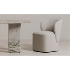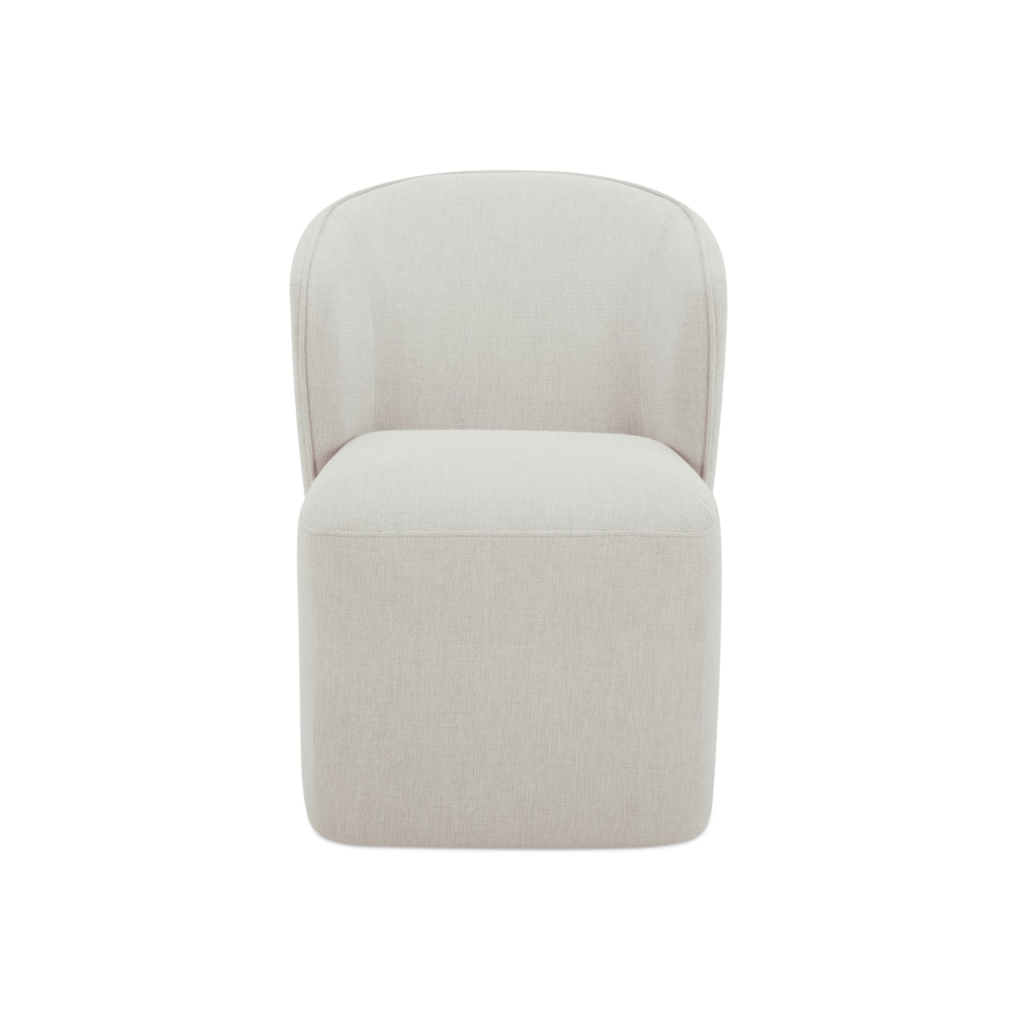 La chaise de salle à manger roulante Laney est autant une question de confort que de sensibilité moderne, avec un siège et un dossier généreusement rembourrés, une silhouette gracieuse, des lignes épurées, un dossier incurvé, un siège carré arrondi, des roulettes et un revêtement en tissu haute performance qui protège contre les taches, les déversements et l'usure.