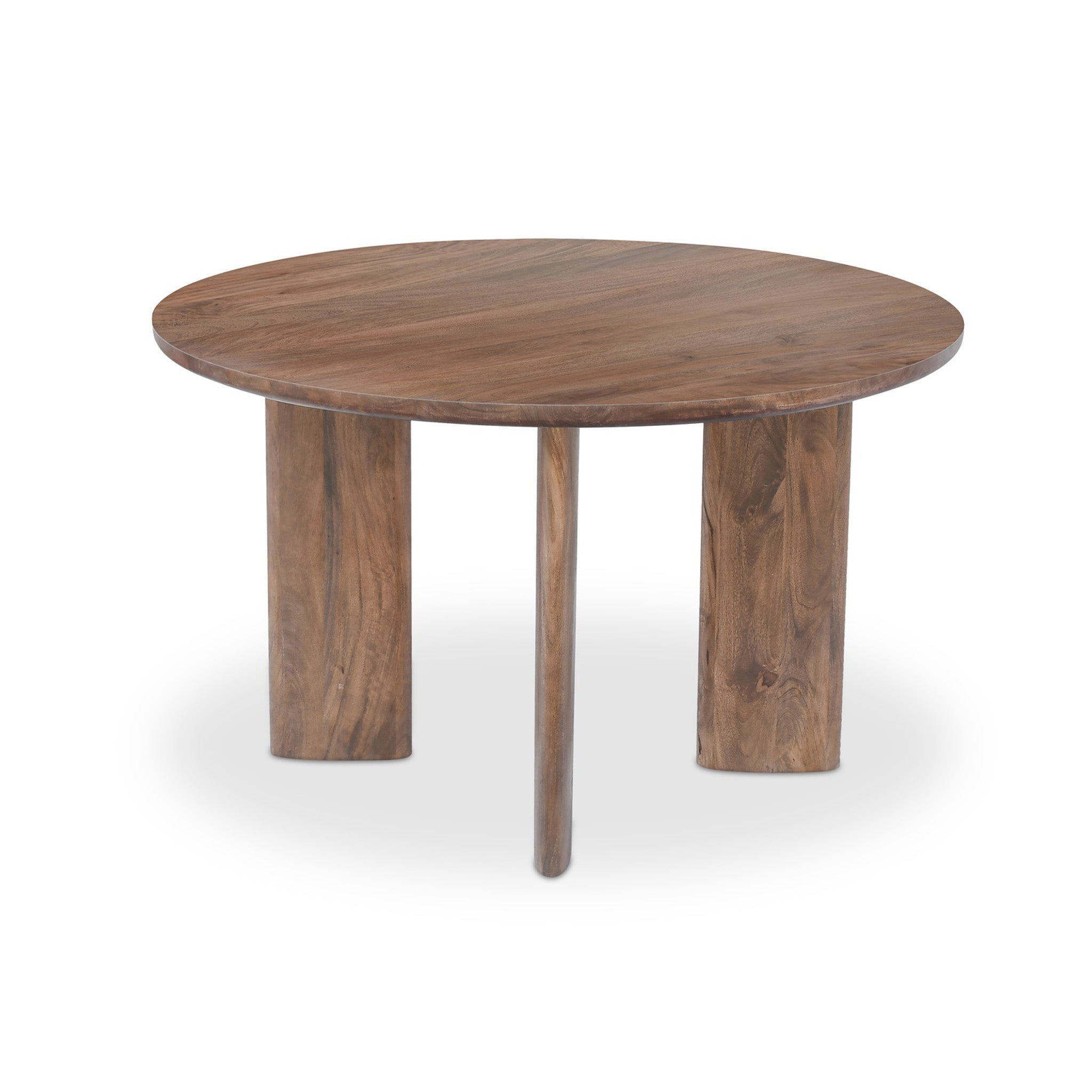 If your dining area could talk, it would ask for this table. Lorenza keeps things warm and grounded with a round top that makes every seat feel included. The angled legs add just enough visual intrigue-like a subtle architectural move-while the dark brown mango wood brings richness without feeling heavy. Comfortably seating four, it's made for weeknight pasta, weekend coffee, and the kind of conversations that linger. Pull up a chair and stay awhile.