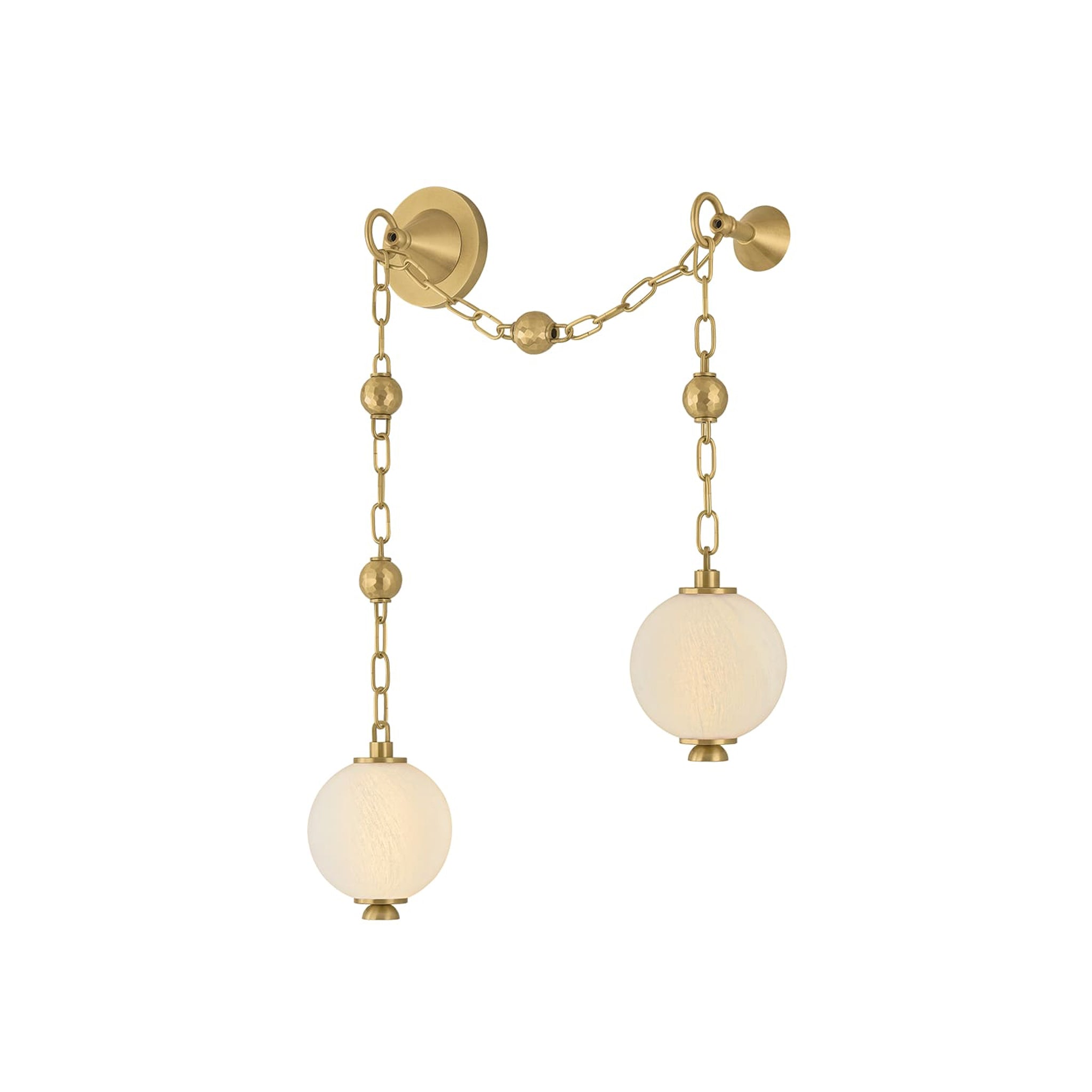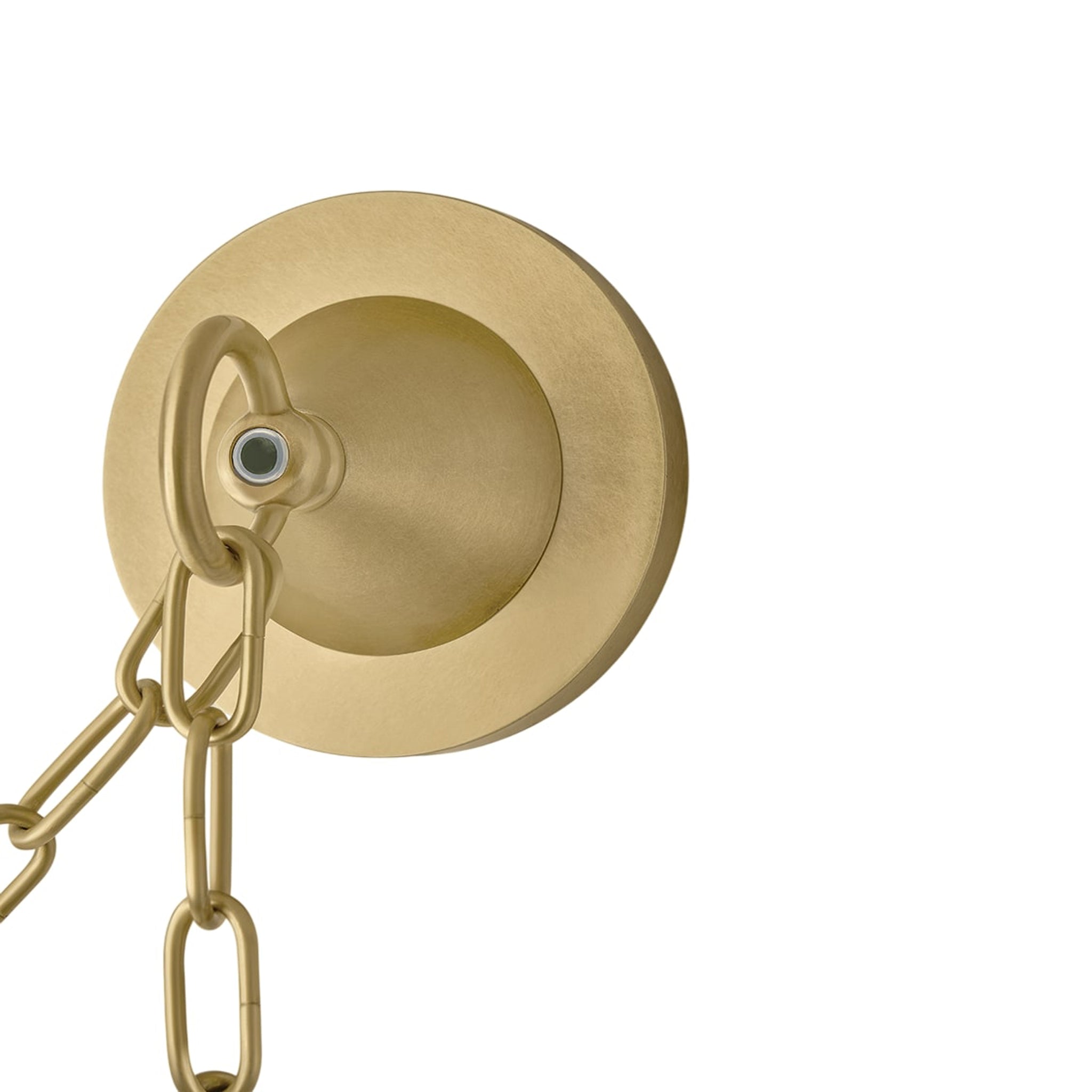 Corda puise son inspiration dans l'élégance des bijoux anciens, où la lumière devient ornement et la structure raconte une histoire. Des sphères en verre nuage mat soufflé à la main sont suspendues à des chaînes en laiton vieilli brillant, rehaussées de délicats détails de chaînettes à billes, évoquant la richesse des colliers de perles et de breloques superposés. Disponible en applique à 2 lumières, en luminaire linéaire à 6 lumières et en lustre spectaculaire à 12 lumières, le système de suspension à plusieurs niveaux de Corda permet des options d'installation personnalisables, introduisant une sensation de mouvement et de personnalisation inattendue. Il apporte une touche d'intimité et d'élégance à un espace, diffusant une lueur chaleureuse et glamour, à la fois délicate et intentionnelle. Moniomi pour Corbett Lighting.