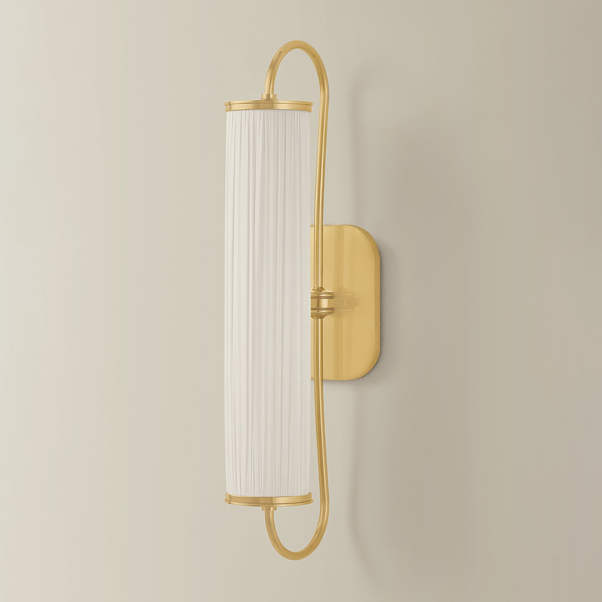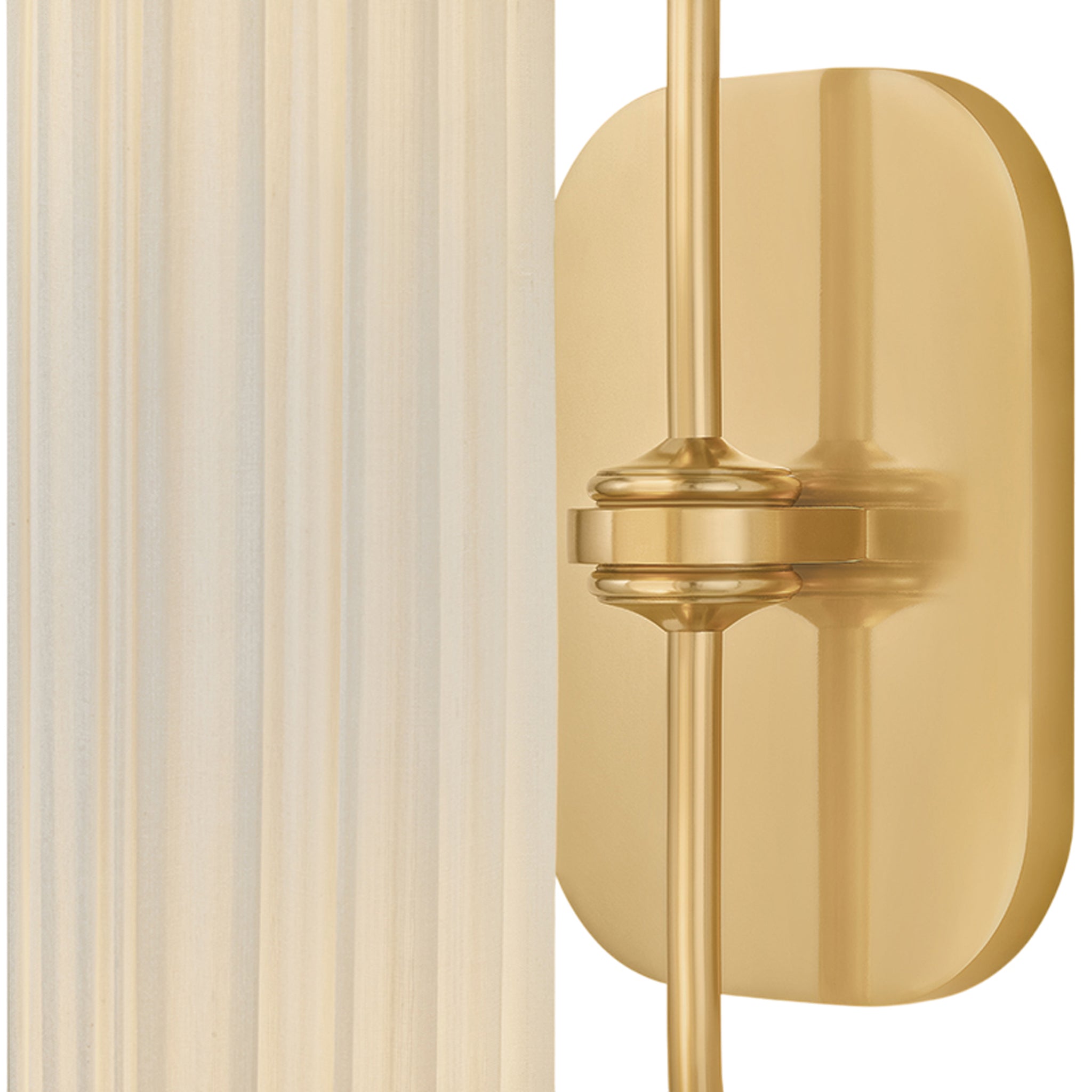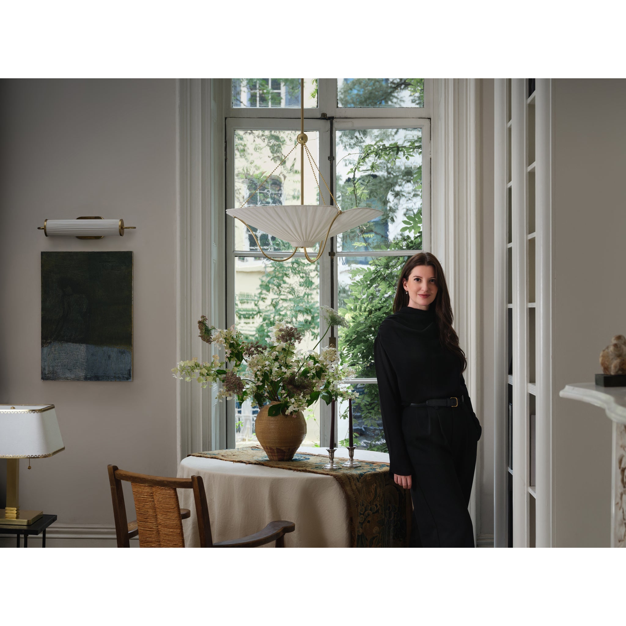 Elaine est un luminaire compact et élégant qui apporte une sophistication discrète à tout intérieur. Son abat-jour en soie plissée diffuse la lumière avec subtilité, tandis que sa structure en laiton vieilli aux courbes délicates lui confère douceur et fluidité sculpturale. Utilisée comme élément décoratif ou comme éclairage fonctionnel discret, Elaine sublime les transitions entre les espaces, créant une continuité raffinée. Disponible en applique verticale à deux lumières ou en applique murale à deux lumières, ce modèle polyvalent apporte une subtilité aux intérieurs. Création d'Augusta Hoffman pour Hudson Valley Lighting.