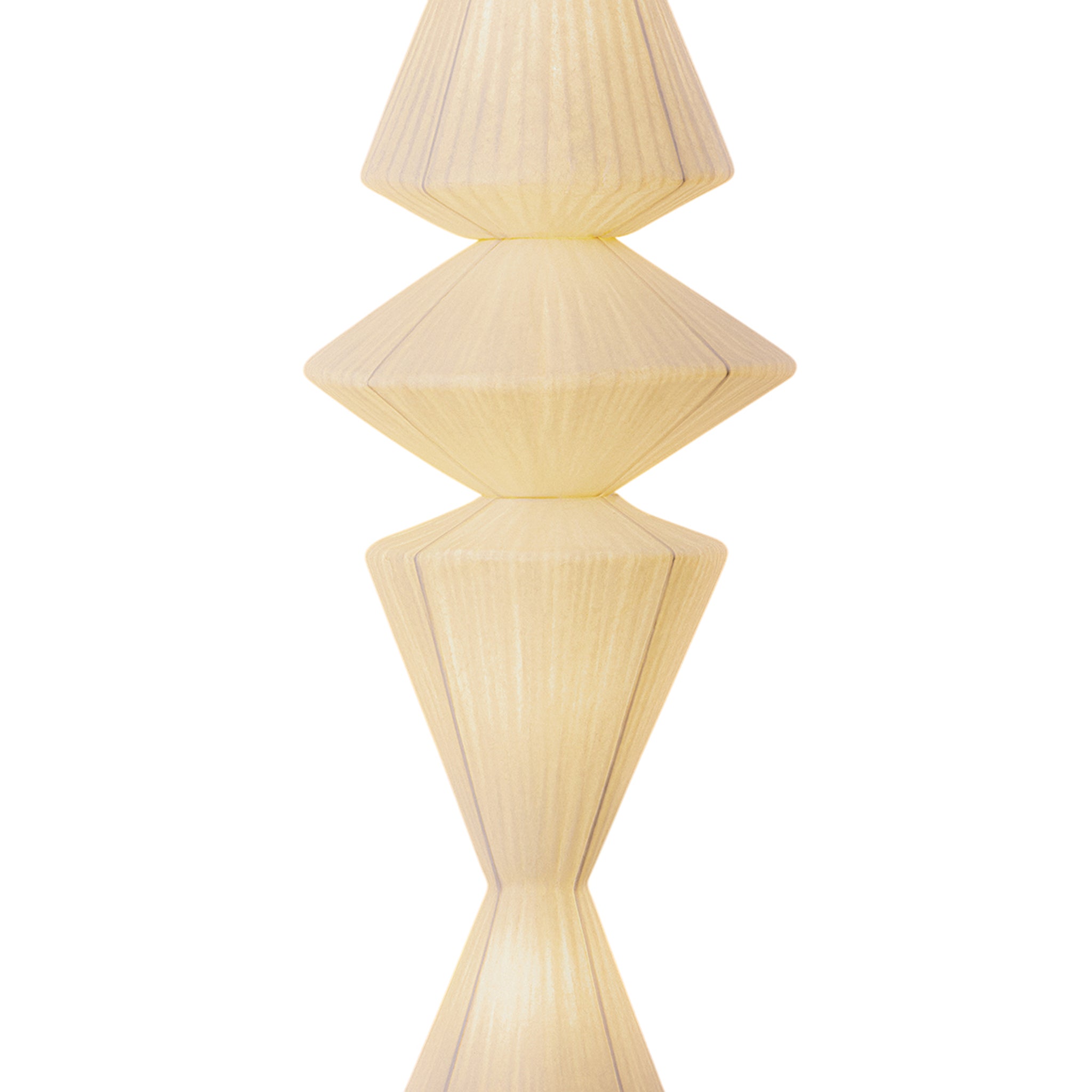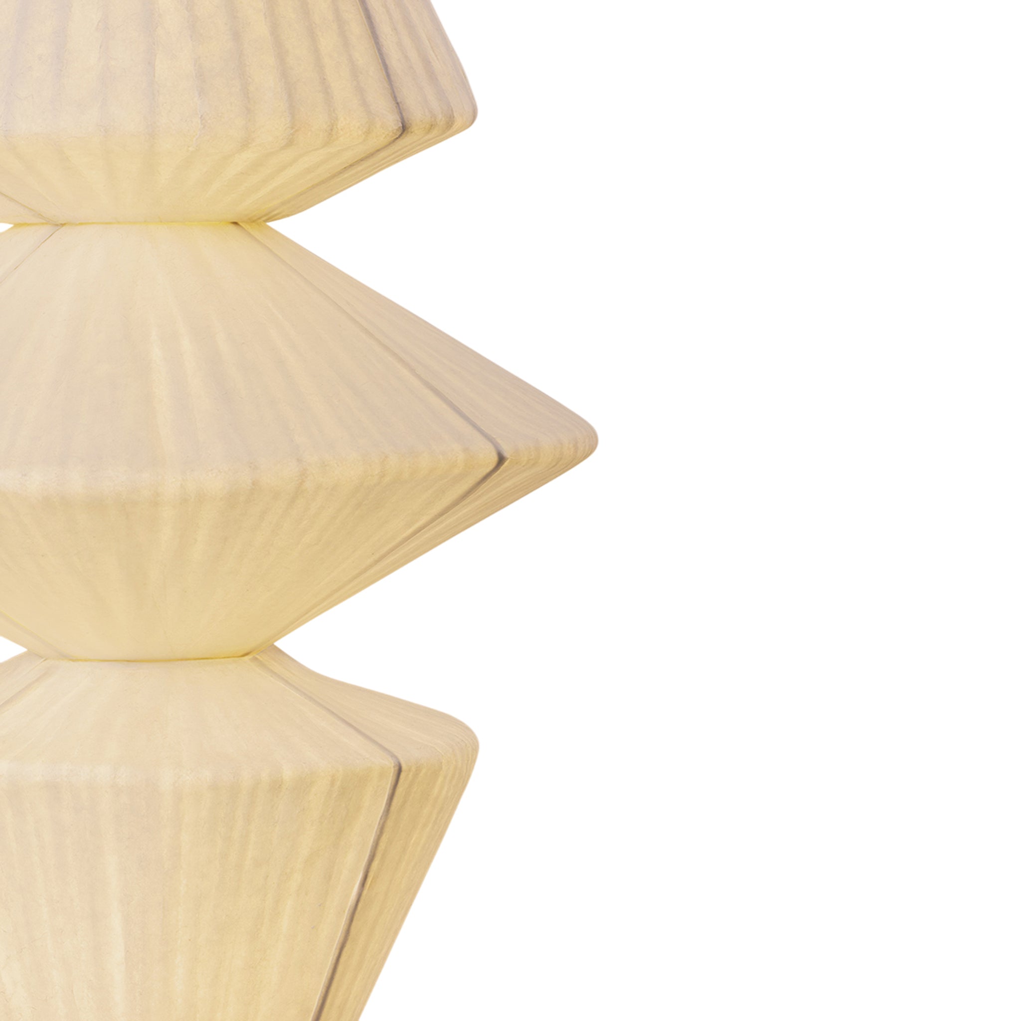 Inspiré des formes emblématiques de l'artiste Isamu Noguchi, le lampadaire Greendale apporte une beauté sculpturale sereine à tout espace. Sa silhouette géométrique et totémique est réalisée artisanalement en papier japonais à la texture verticale subtile qui s'anime une fois éclairée. Un socle en placage de bois confère à cette lampe remarquable une assise stable.