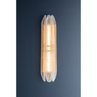 Sublimant une silhouette minimaliste, l'applique Westtown utilise des matériaux d'exception pour un effet subtil. Fixées par de petites vis moletées en laiton vieilli, de longues pièces de verre piastré sont positionnées devant une source lumineuse LED. Gravé intérieurement d'un motif tourbillonnant blanc, le verre diffuse une lumière douce, idéale pour un couloir ou une salle de bain.