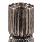 Ce vase décoratif élégant apporte une touche de modernité à votre intérieur. Sa silhouette unique en forme de sablier, ornée d'un motif cannelé et côtelé saisissant qui capte la lumière et offre une dimension tactile agréable. Sa finition gris anthracite profond et métallique en fait un accessoire raffiné, idéal pour mettre en valeur un bouquet ou comme objet d'art à part entière.