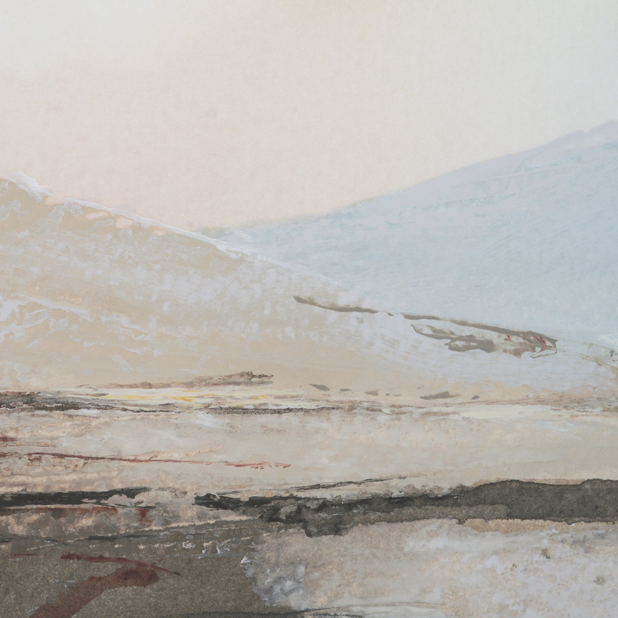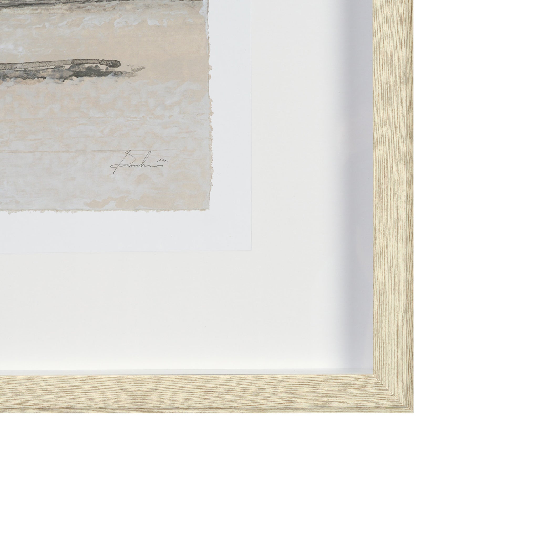 Plongez votre espace dans une sérénité absolue avec cette œuvre d'art abstraite encadrée. De douces aquarelles mêlent des bleus feutrés, des bruns terreux et des verts apaisants pour dépeindre un littoral paisible où des montagnes lointaines rencontrent une mer calme. Cette pièce captivante offre une élégance discrète et une ambiance naturelle et apaisante, idéale pour les intérieurs contemporains, minimalistes ou d'inspiration côtière.