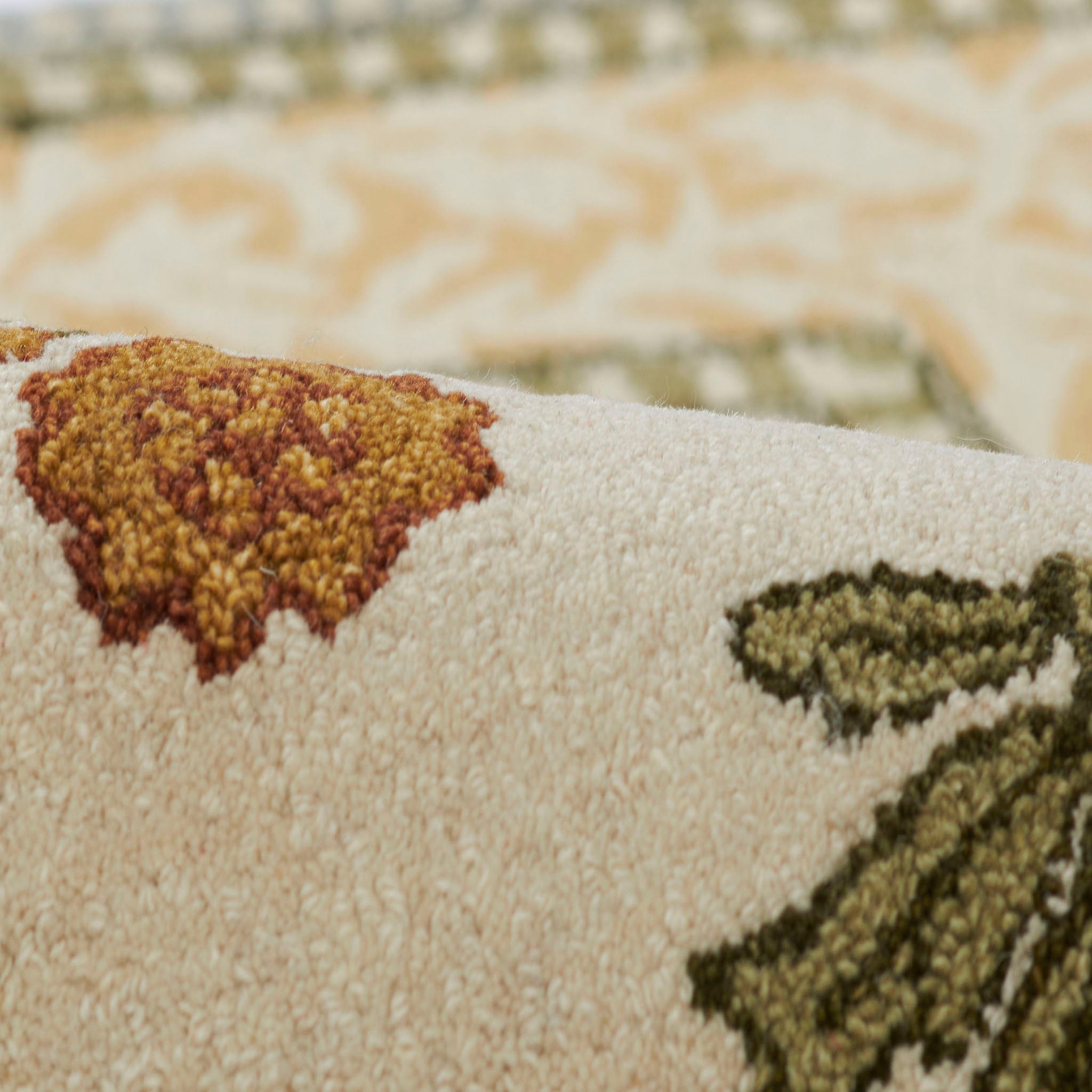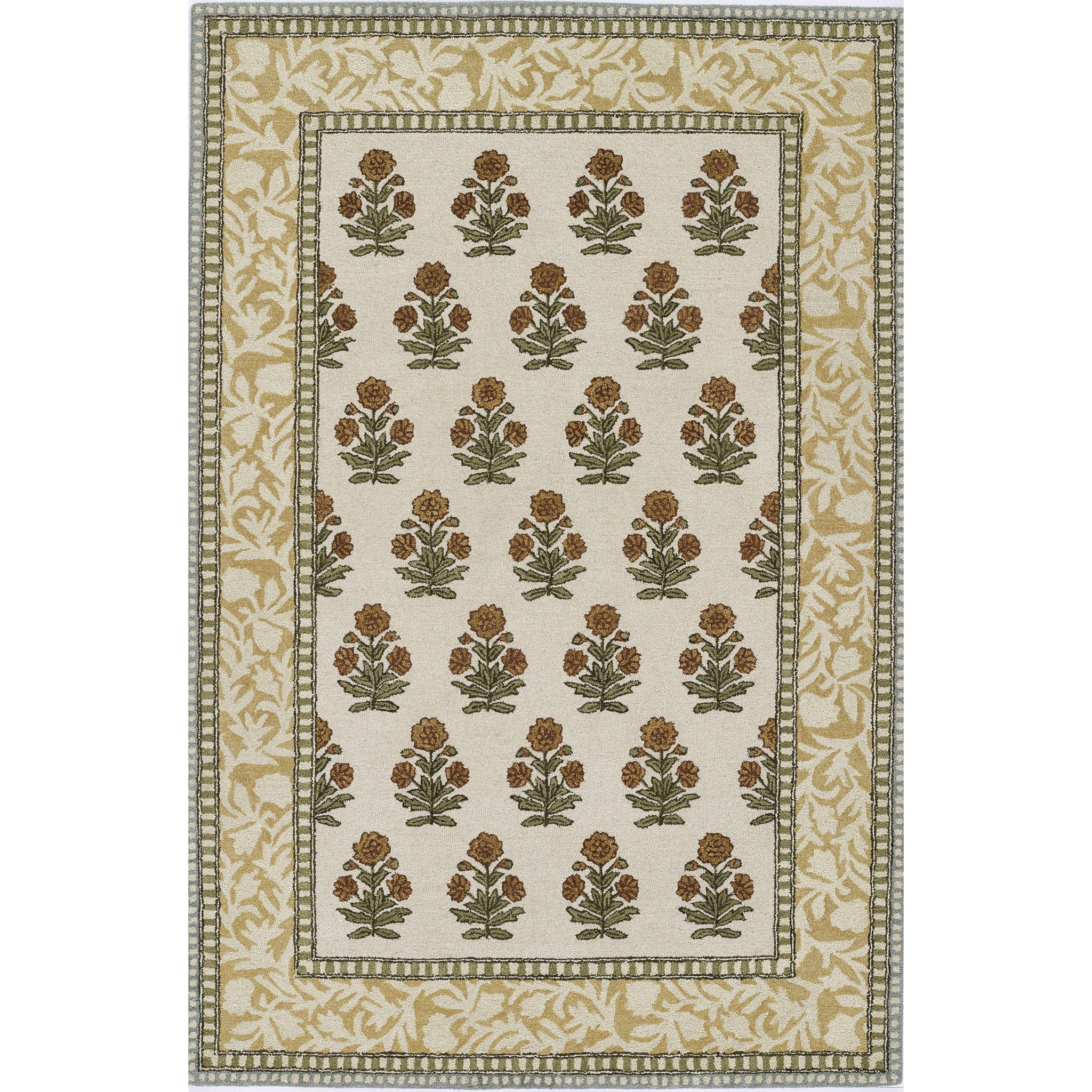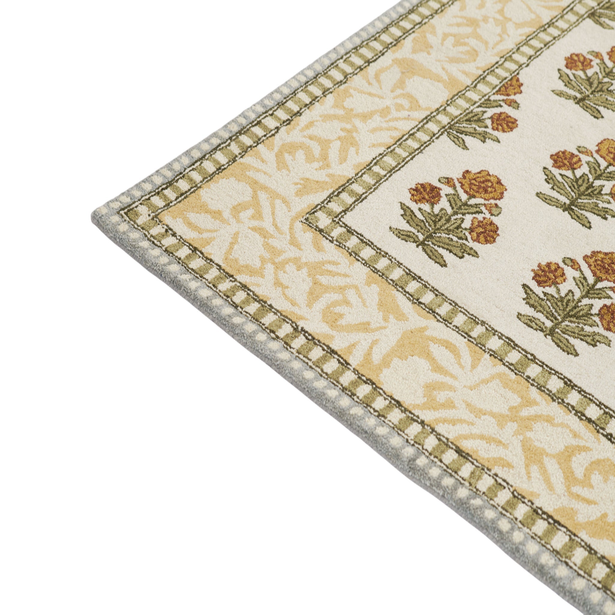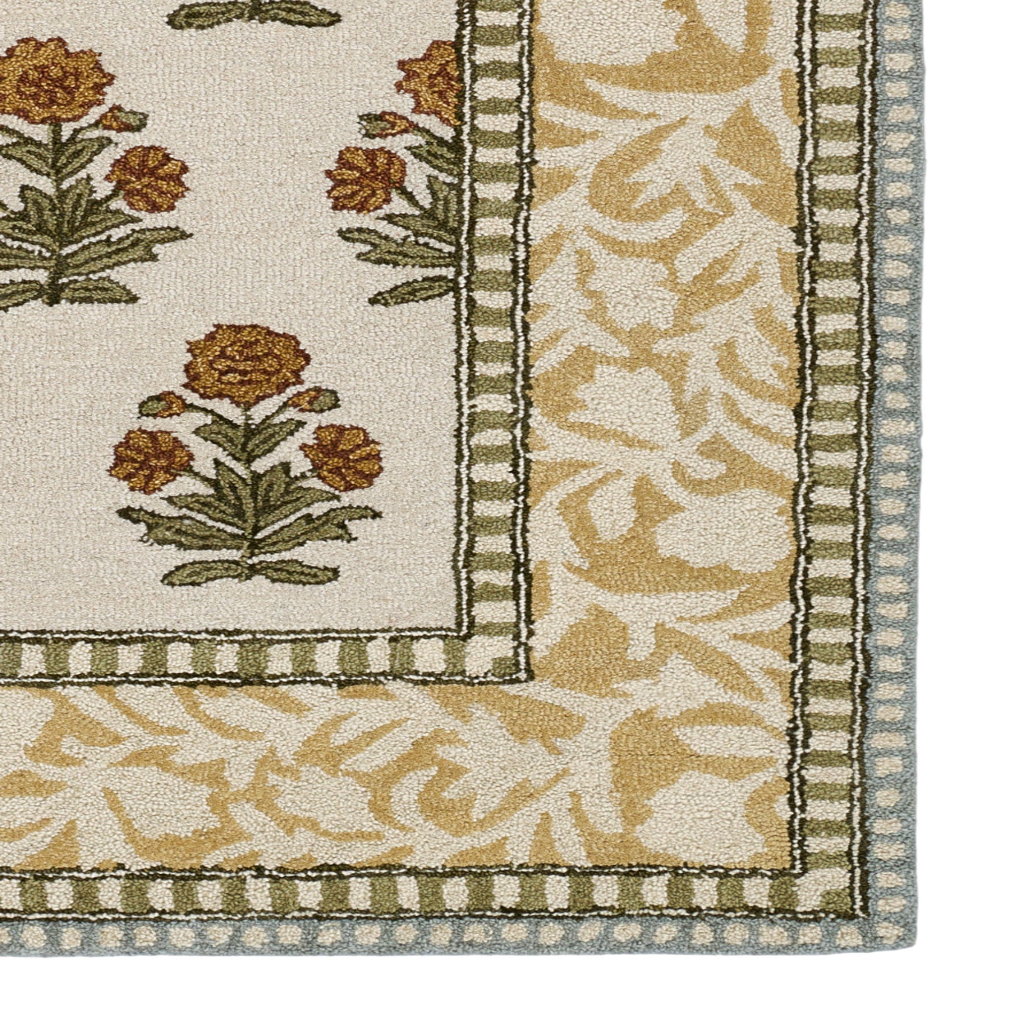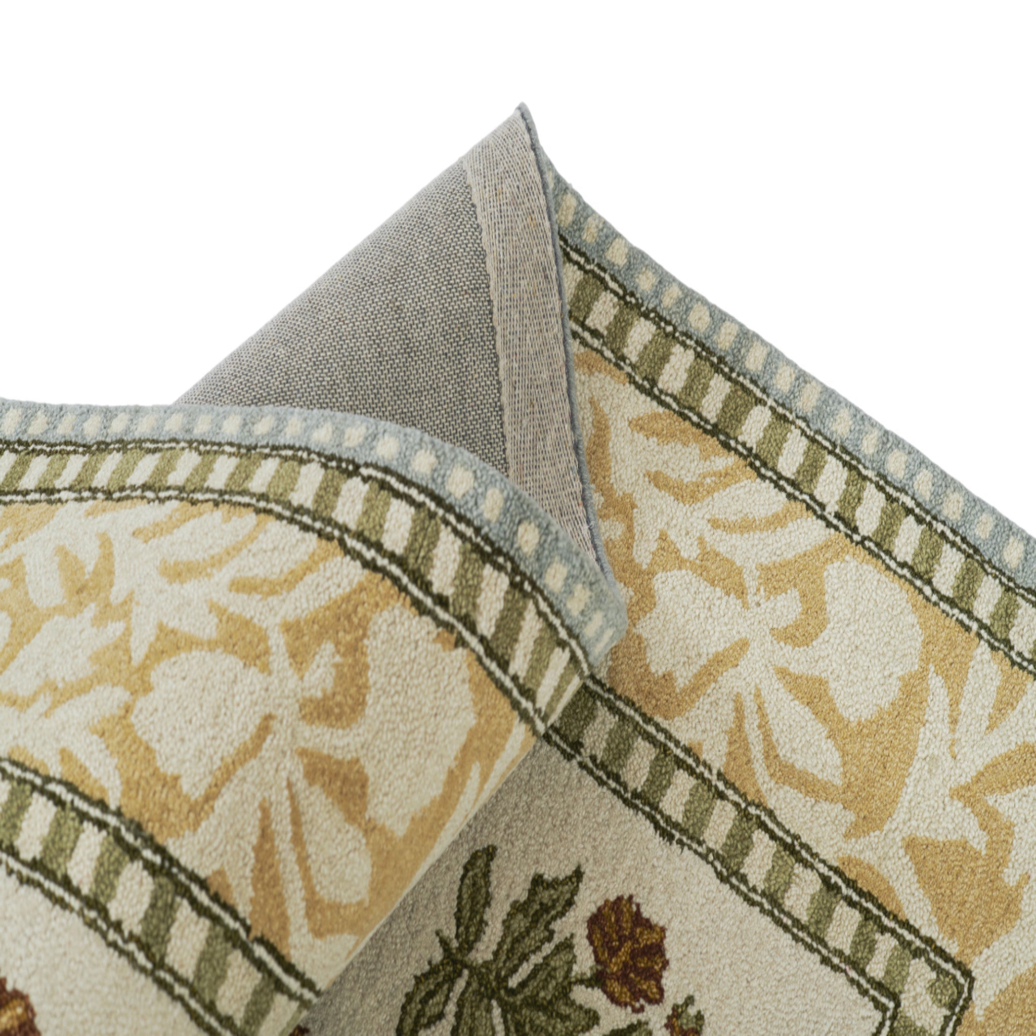 This charming rug from the Cotswold Collection captures the heart of English countryside living with its delicate, hand-tufted rose motifs arranged in neat rows across a soft ivory ground. A warm golden border adorned with leafy vines frames the design, while a contrasting striped trim adds a tailored touch. The palette of honeyed yellows, terracotta reds, and olive greens evokes sun-drenched gardens and vintage textiles, making it the perfect accent for cottage, farmhouse, or traditional interiors. Both nostalgic and refined, this piece brings warmth, whimsy, and heirloom elegance to any space.