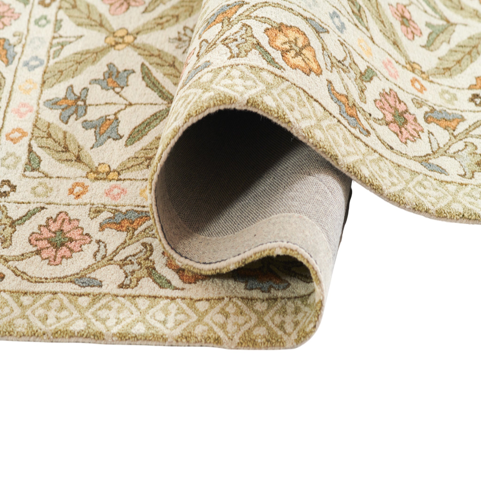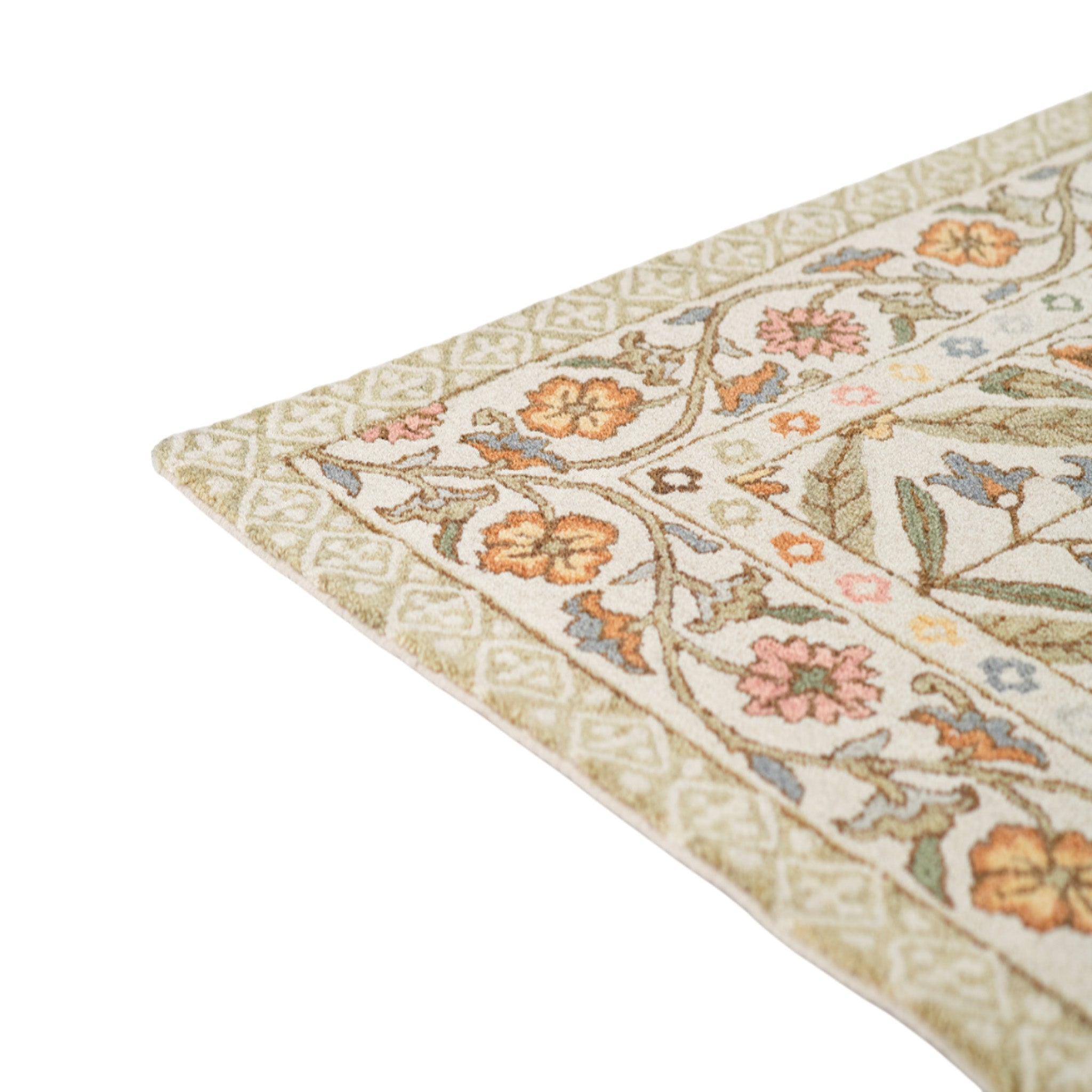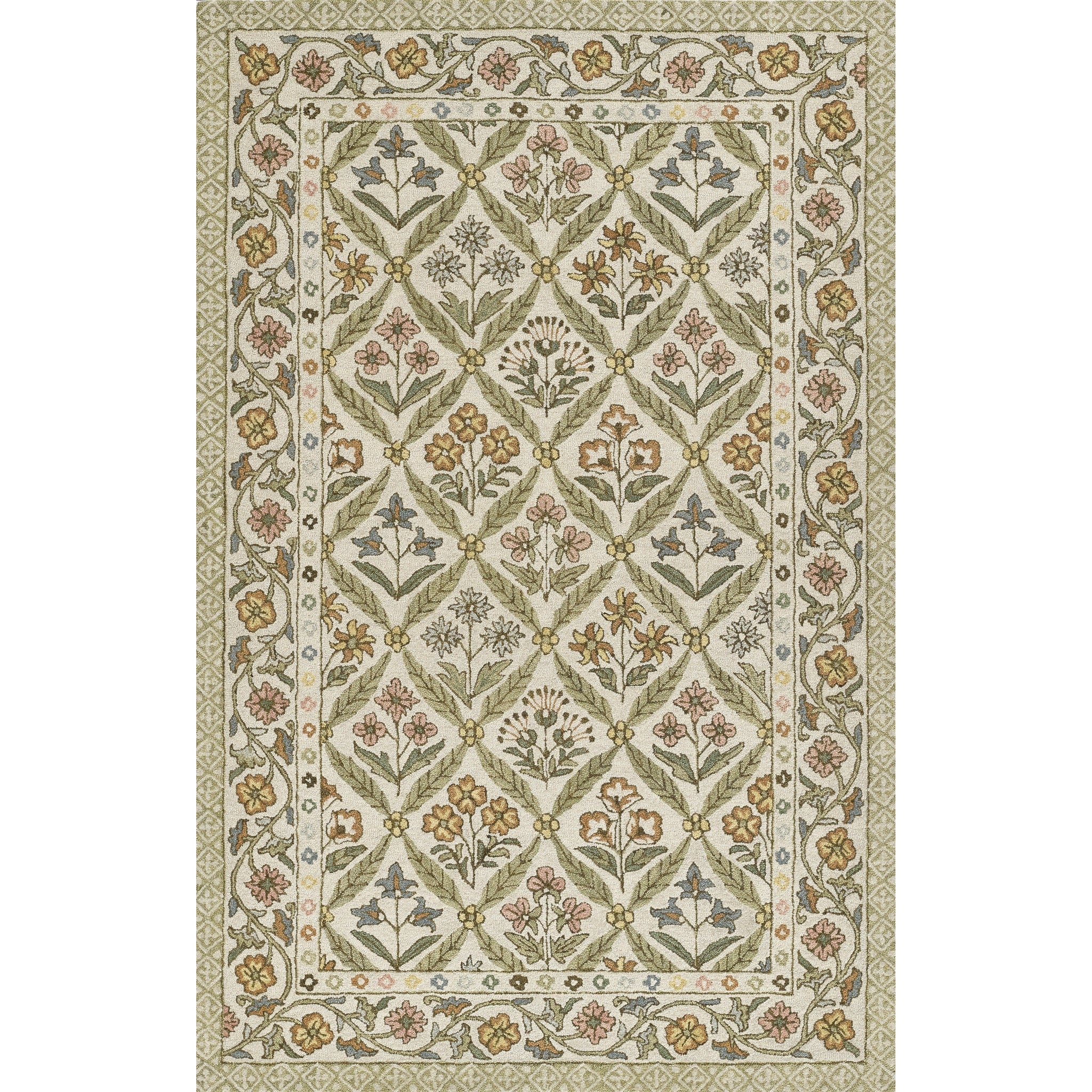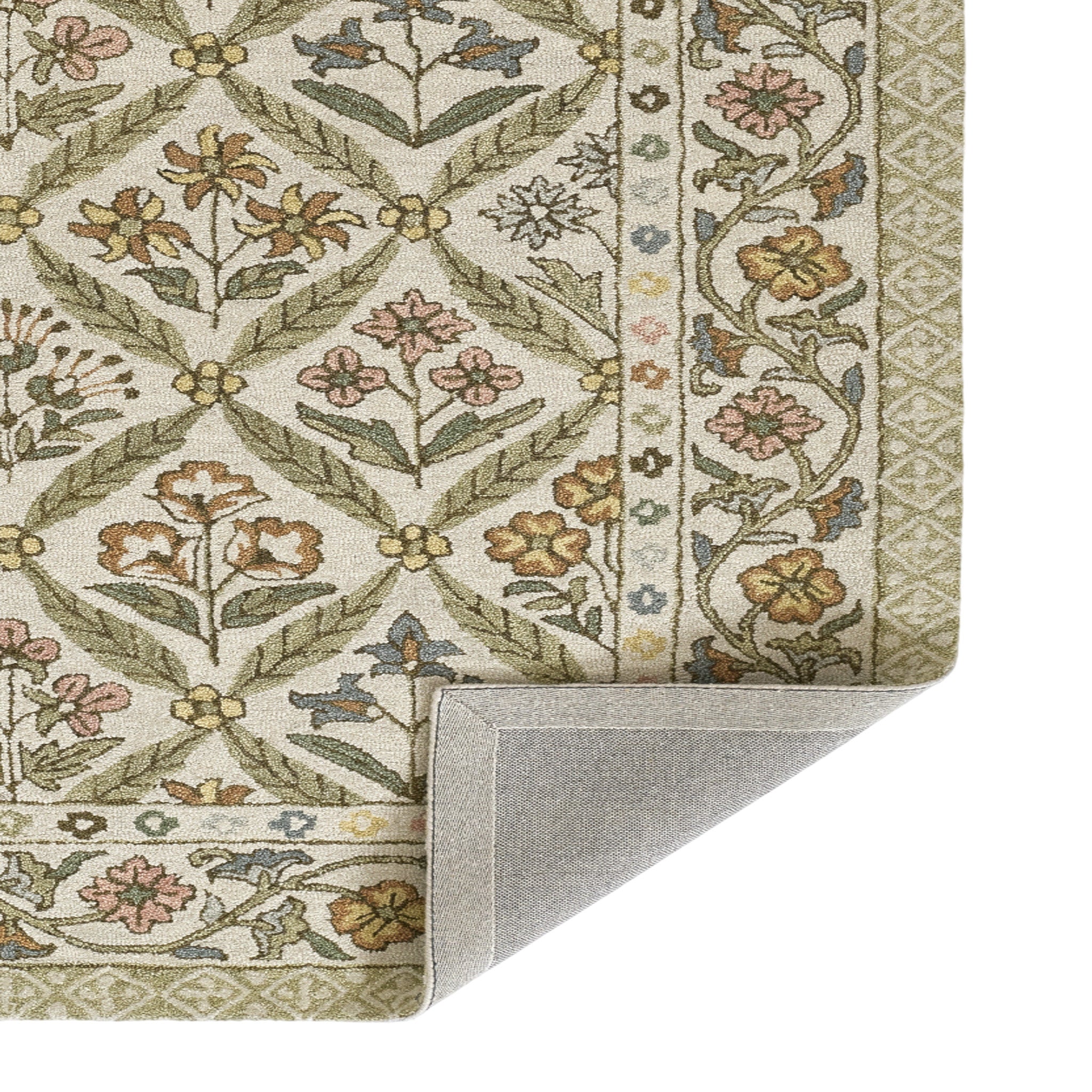 Charming and nostalgic, this Cotswold rug captures the spirit of English countryside living with a delicate floral lattice design and soft, springlike palette. Pastel tones of pink, yellow, blue, and green bloom across a creamy ground, while the intricate border evokes hand-painted ceramics and heritage textiles. Hand tufted of 100% wool with a cotton backing, it offers a plush, durable feel underfoot-perfect for grounding bedrooms, sunrooms, or sitting areas with a warm, welcoming ambiance. Both romantic and refined, this rug blends artisanal craftsmanship with timeless style.