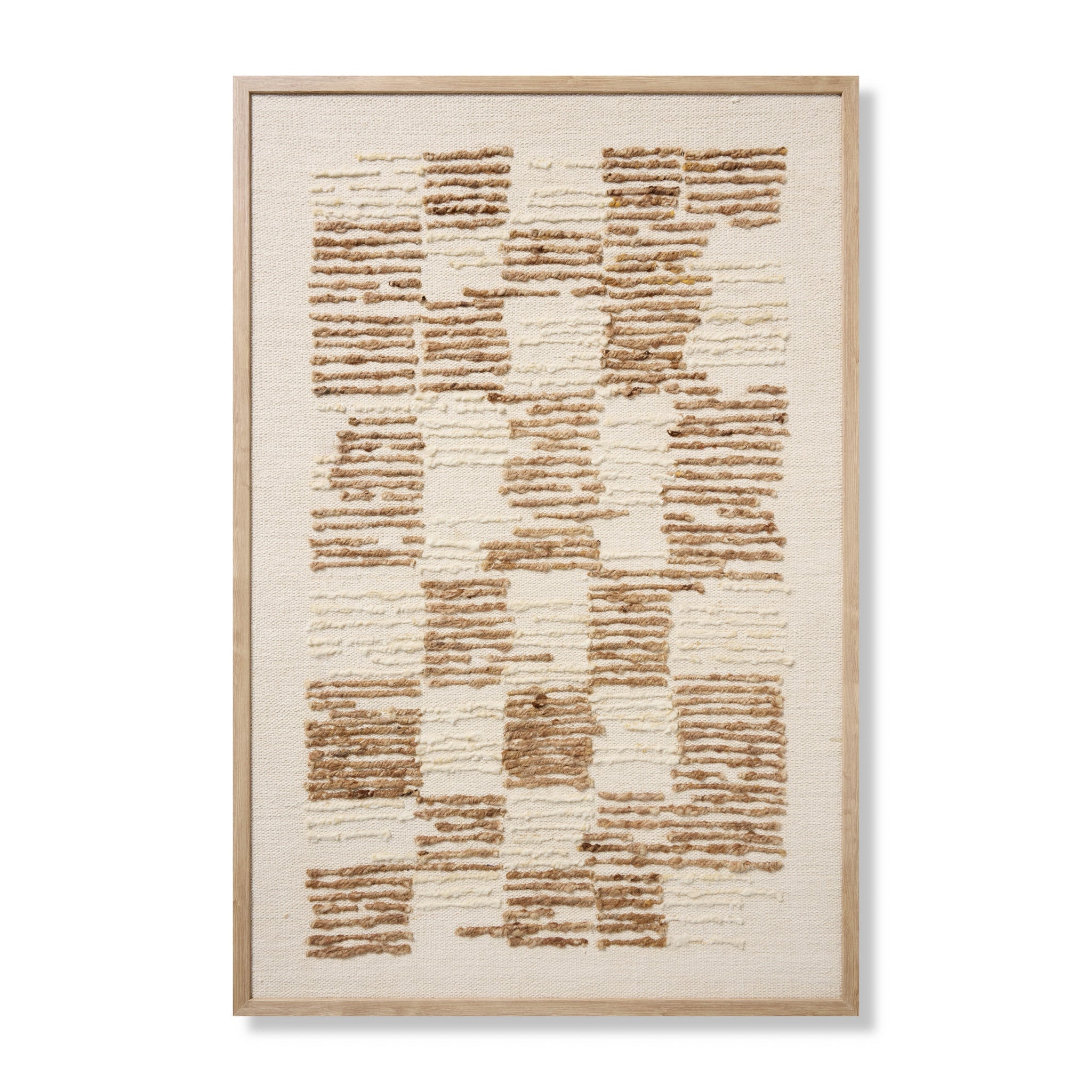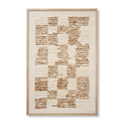 Los Alamos est une grande œuvre murale d'Amber Lewis x Loloi, présentant un motif à damier libre et déstructuré, idéale pour une décoration intérieure organique et moderne. Cette œuvre beige et brune est tissée à la main en Inde et encadrée sur mesure par Loloi aux États-Unis.