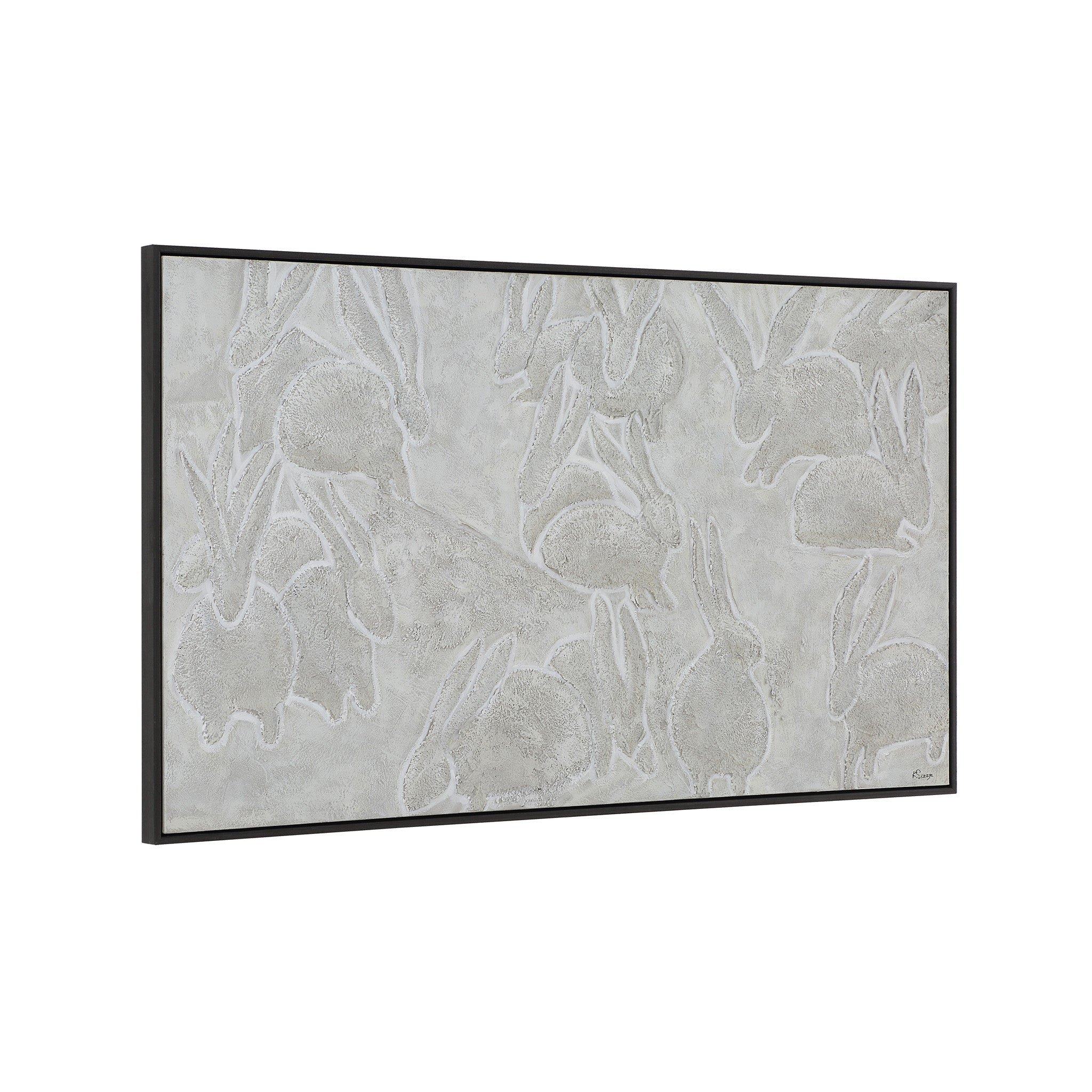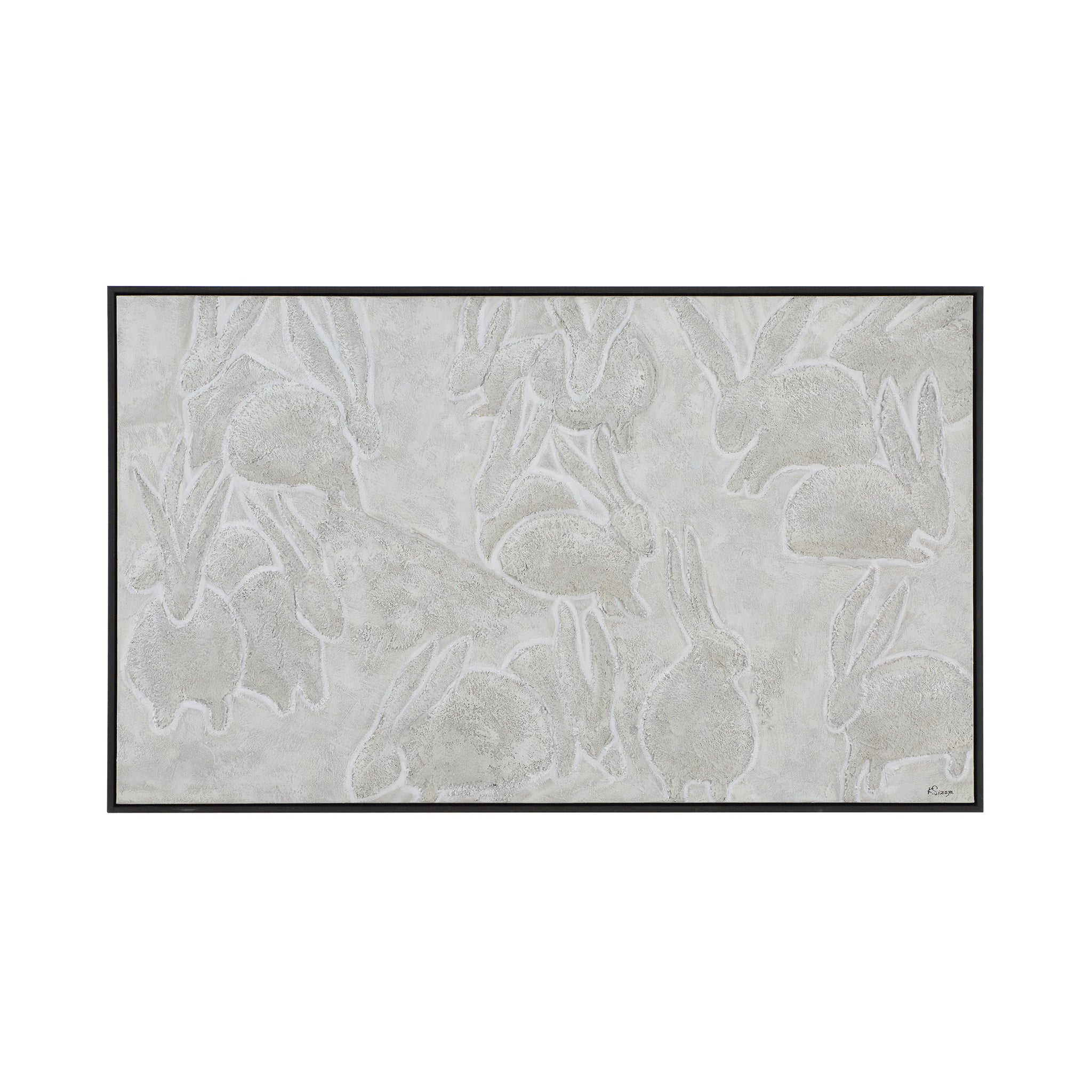 Symbole de transformation, de croissance et de renouveau, le lapin possède de nombreuses qualités, ce qui en fait un thème populaire dans l'art. Cette toile murale incarne toutes ces caractéristiques et bien plus encore. Abstraite dans sa conception et apaisante dans sa palette, cette œuvre encadrée, peinte à la main et à la texture riche, est prête à apporter sa magie à tout intérieur.
