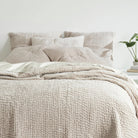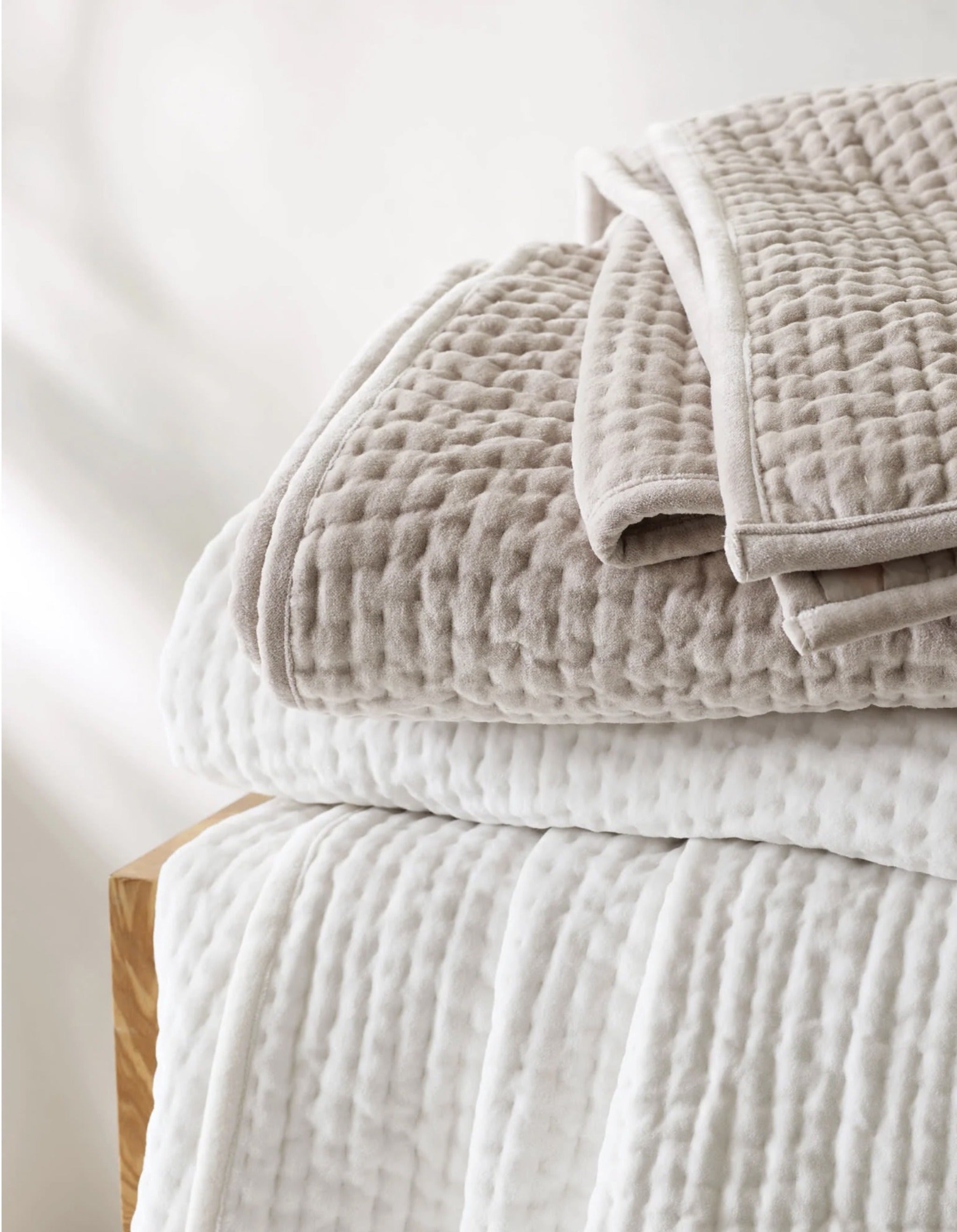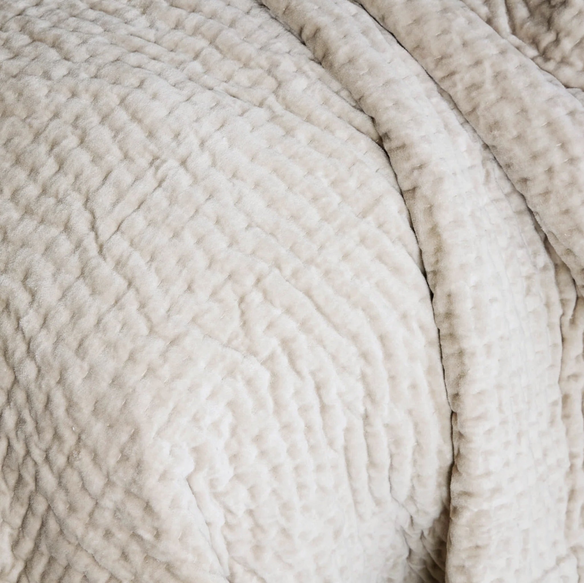 Cette couette en velours d'une douceur exceptionnelle est confectionnée avec des coutures nervurées classiques et un rembourrage supplémentaire pour un confort luxueux. Elle vous garantit un confort douillet et chaleureux, même lors des nuits les plus fraîches. Pour un look serein, associez-la aux taies d'oreiller matelassées assorties. Matelassée avec un rembourrage en coton.