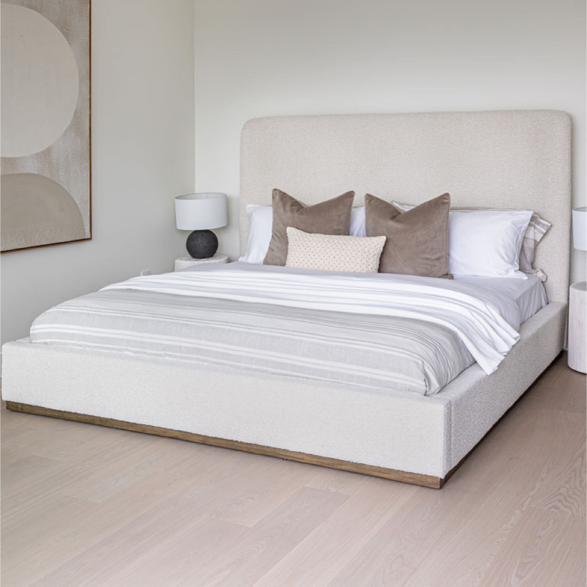 Revêtue d'un tissu bouclé blanc cassé saisissant, Franca s'intégrera parfaitement à votre intérieur. Fonctionnelle et élégante, sa tête de lit aux courbes douces apporte une touche tendance subtile et un design raffiné.