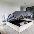 Élégant, stylé et doté de rangements ? Livia répond à tous les besoins de vos clients en matière de lit avec rangement. Sa tête de lit à coutures françaises, confectionnée dans un tissu crème élégant et luxueux, repose sur des traverses plus fines. De plus, ses rangements en font un lit idéal pour les petits espaces. Sa tête de lit capitonnée à coutures françaises est un véritable coup de cœur. C'est magnifique !