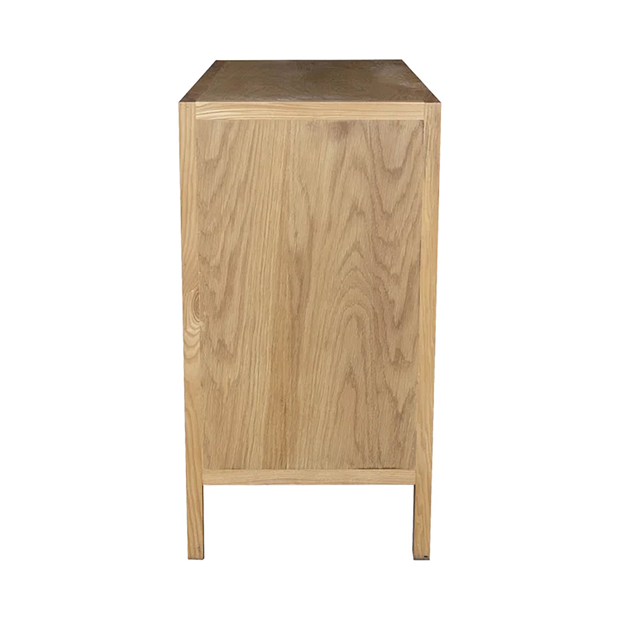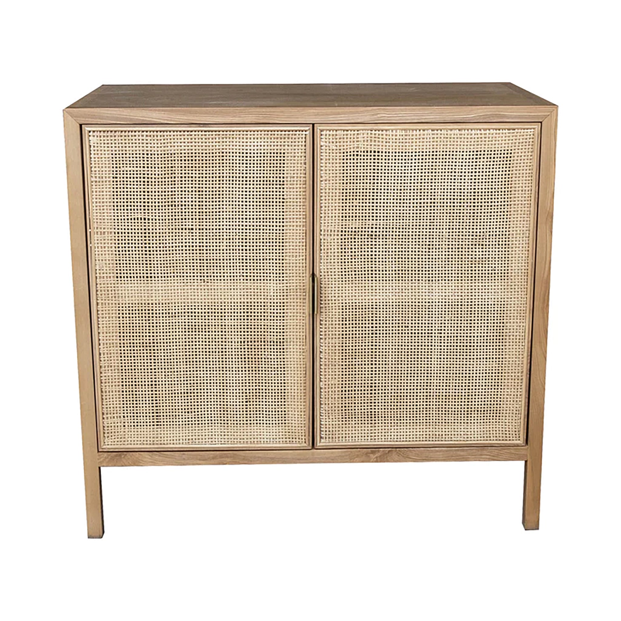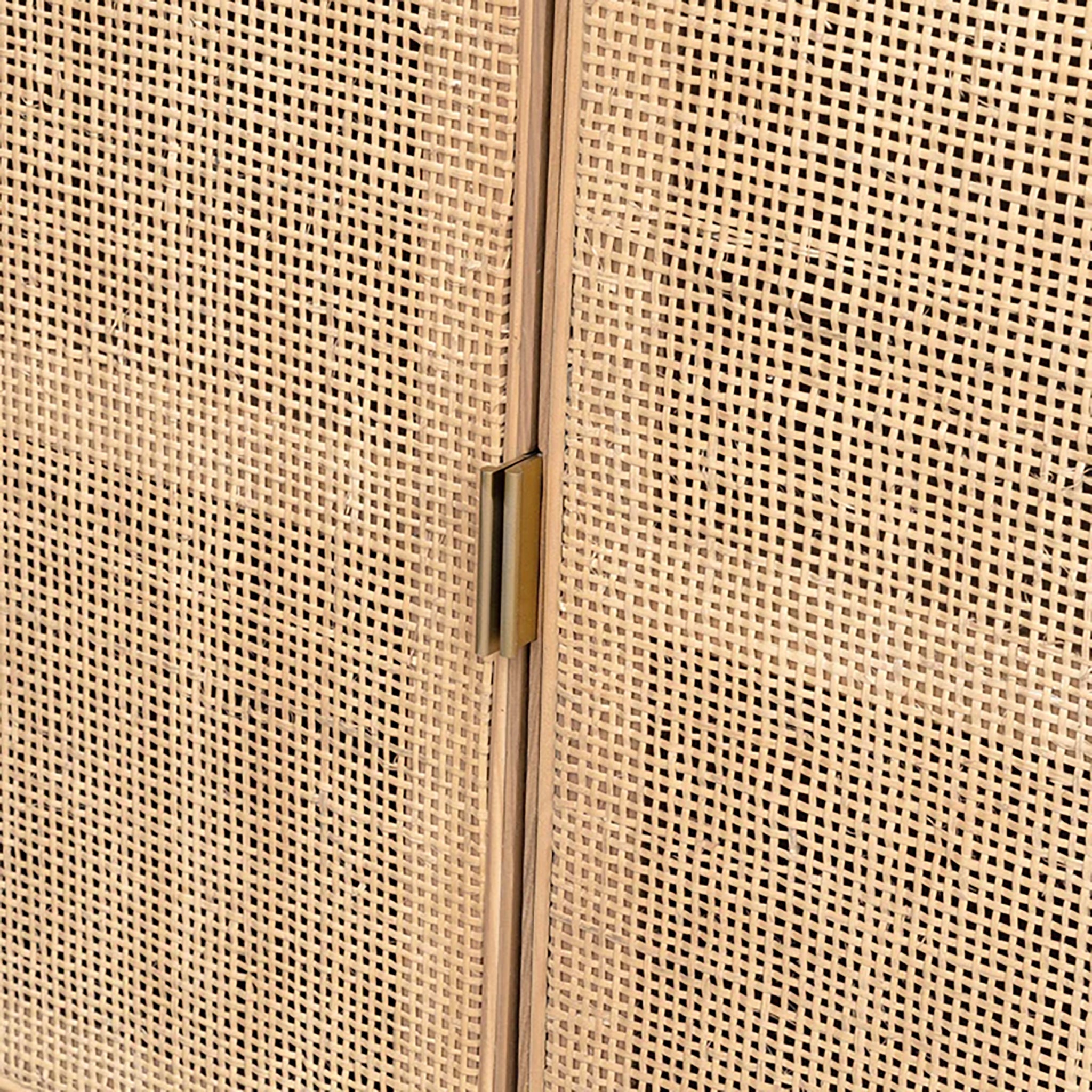 Ce petit buffet en rotin est le complément idéal pour votre cuisine ou votre salle à manger. Il confère à votre pièce une ambiance chaleureuse et naturelle grâce à son cadre en chêne massif et sa surface plaquée chêne. Avec ses touches d'osier et ses poignées en laiton antique, ce meuble apporte un charme rustique à votre espace, tout en vous offrant un grand espace de rangement grâce à ses portes faciles à ouvrir. C'est l'alliance idéale entre style et fonctionnalité.