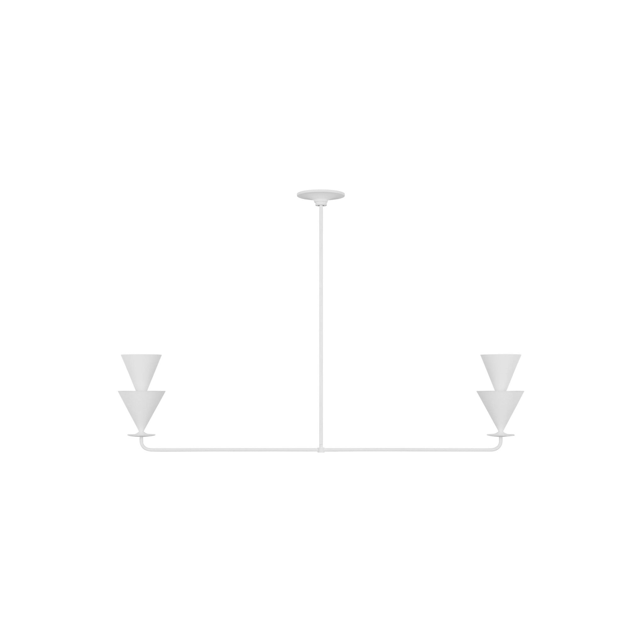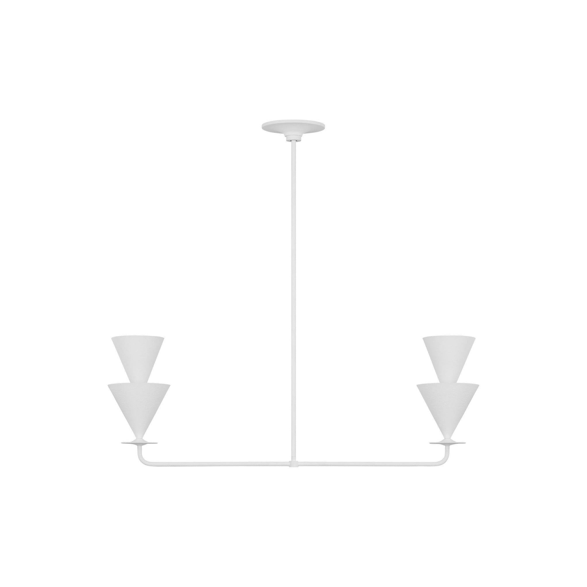Lustre linéaire d'intérieur Cornet à 2 lumières, à intensité variable, en plâtre moulé, finition blanc mat, avec abat-jour en acier moulé. Doté d'abat-jour coniques inversés en plâtre moulé blanc, Cornet reflète les influences du design européen des années 1920-1940, de l'Art déco au style italien du milieu du siècle, et même les torchères classiques de Serge Roche.