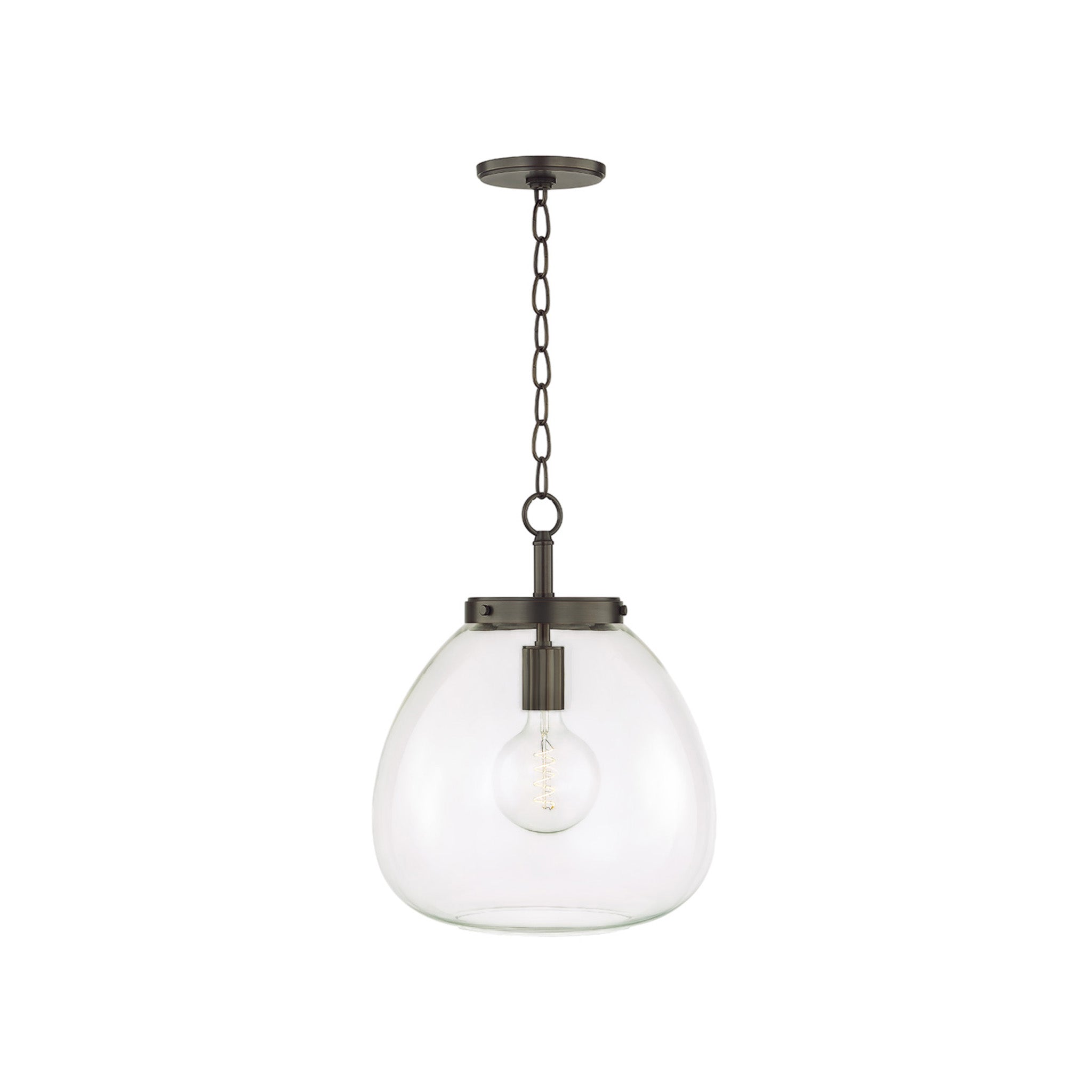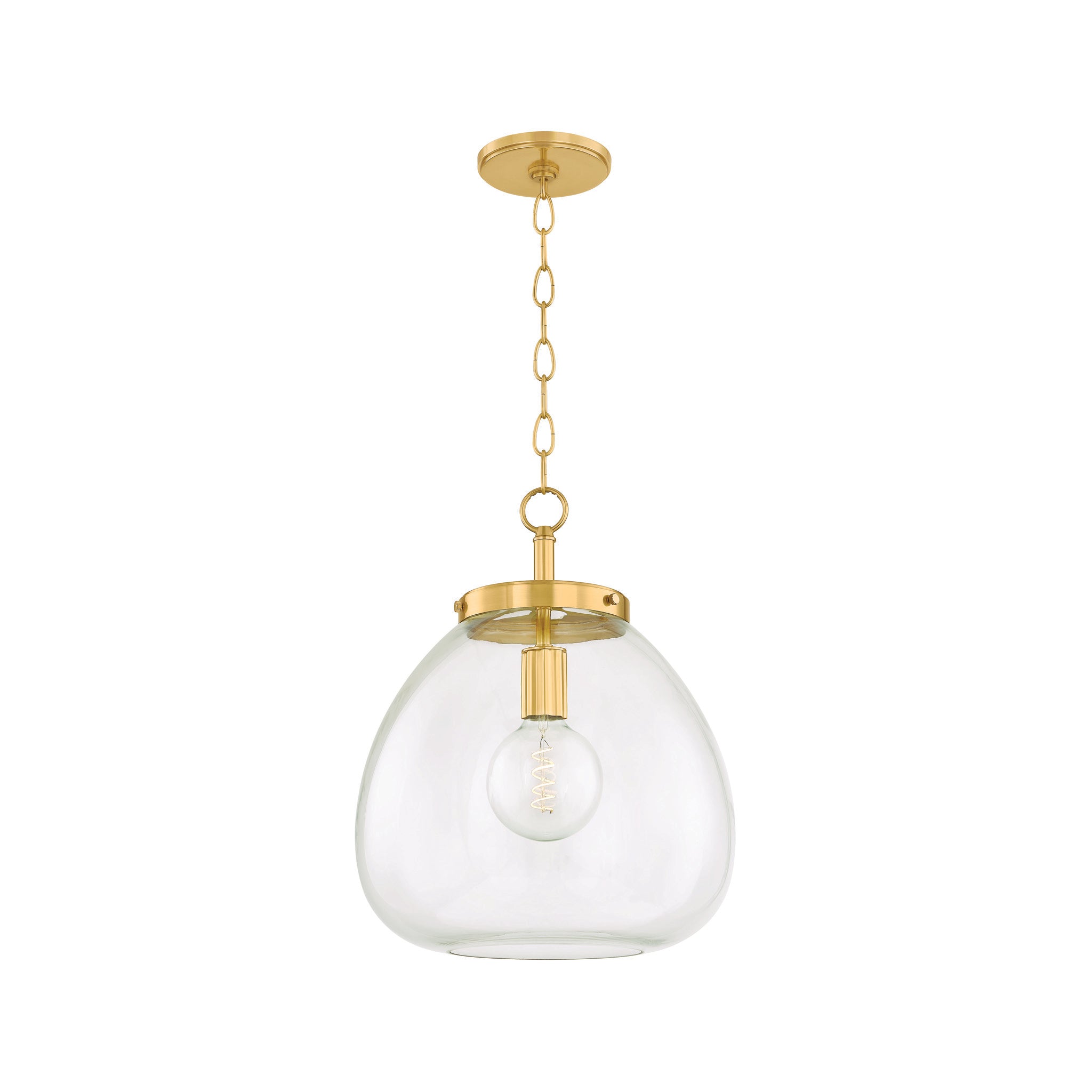 The Della pendant takes a simple shape and makes it special. When viewed from below, the gently curved clear glass shade provides a view of the botanical metalwork within. The organic form of the shade nods to nature, as does the floral cut-out detail on the socket cup and fitter. Finished in either Aged Brass or True Bronze, Della is a crowd-pleaser in kitchens and dining rooms.