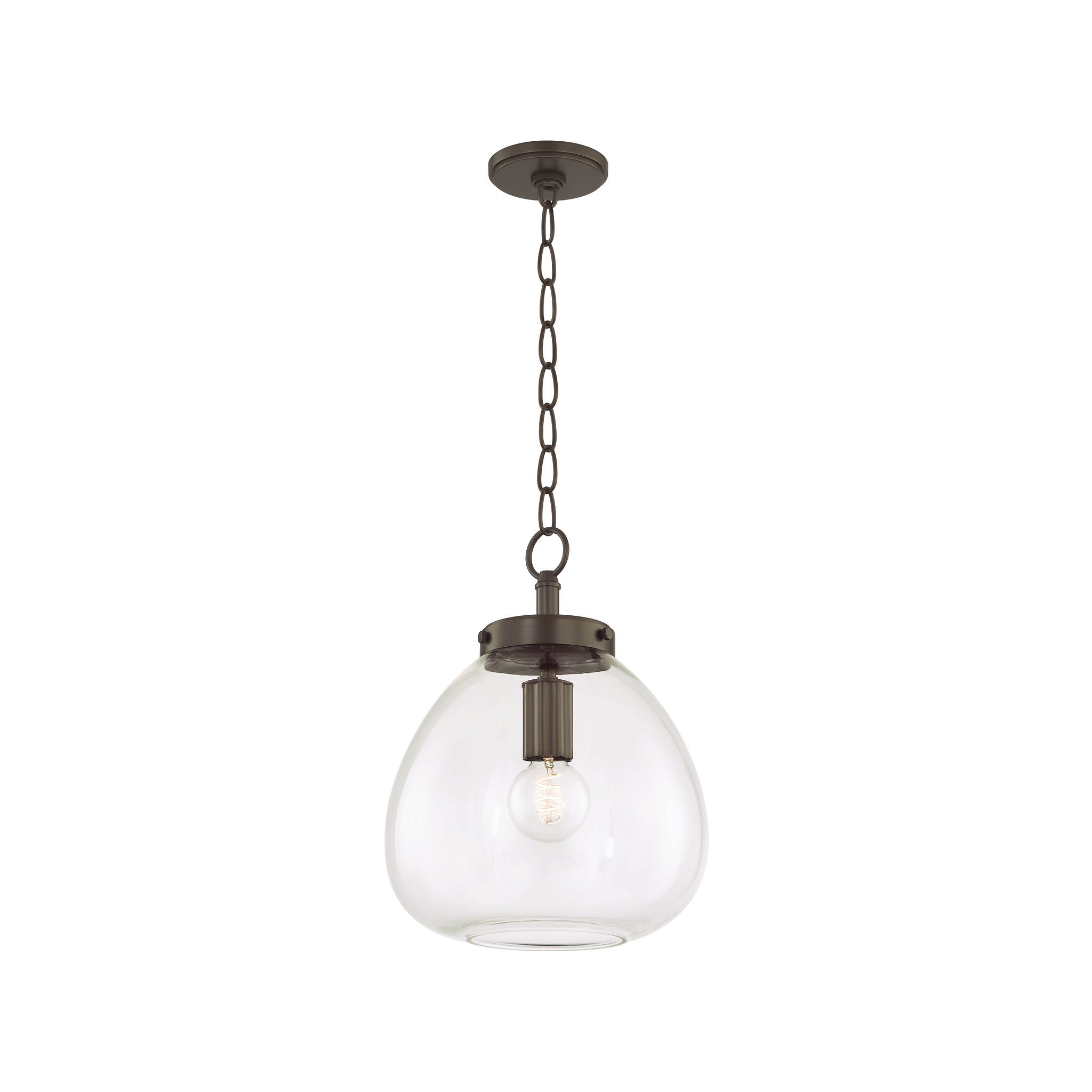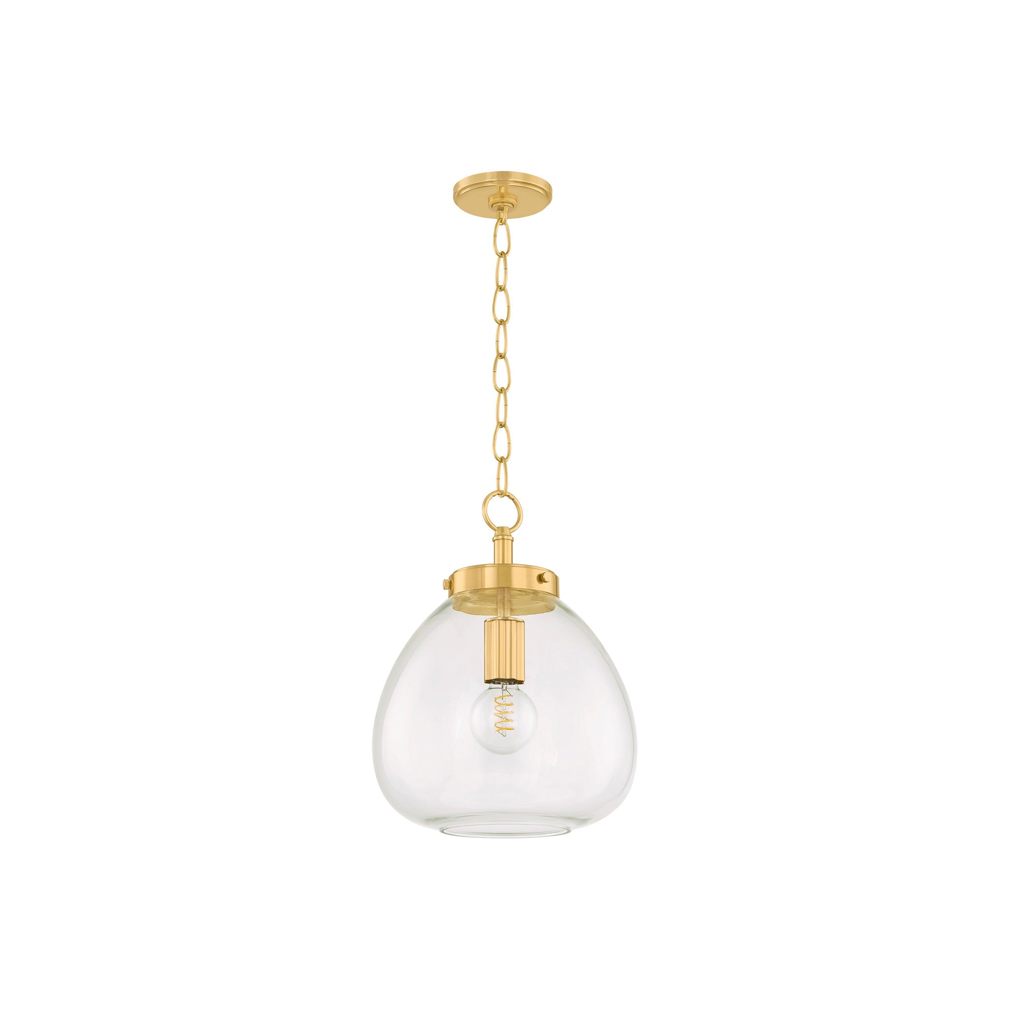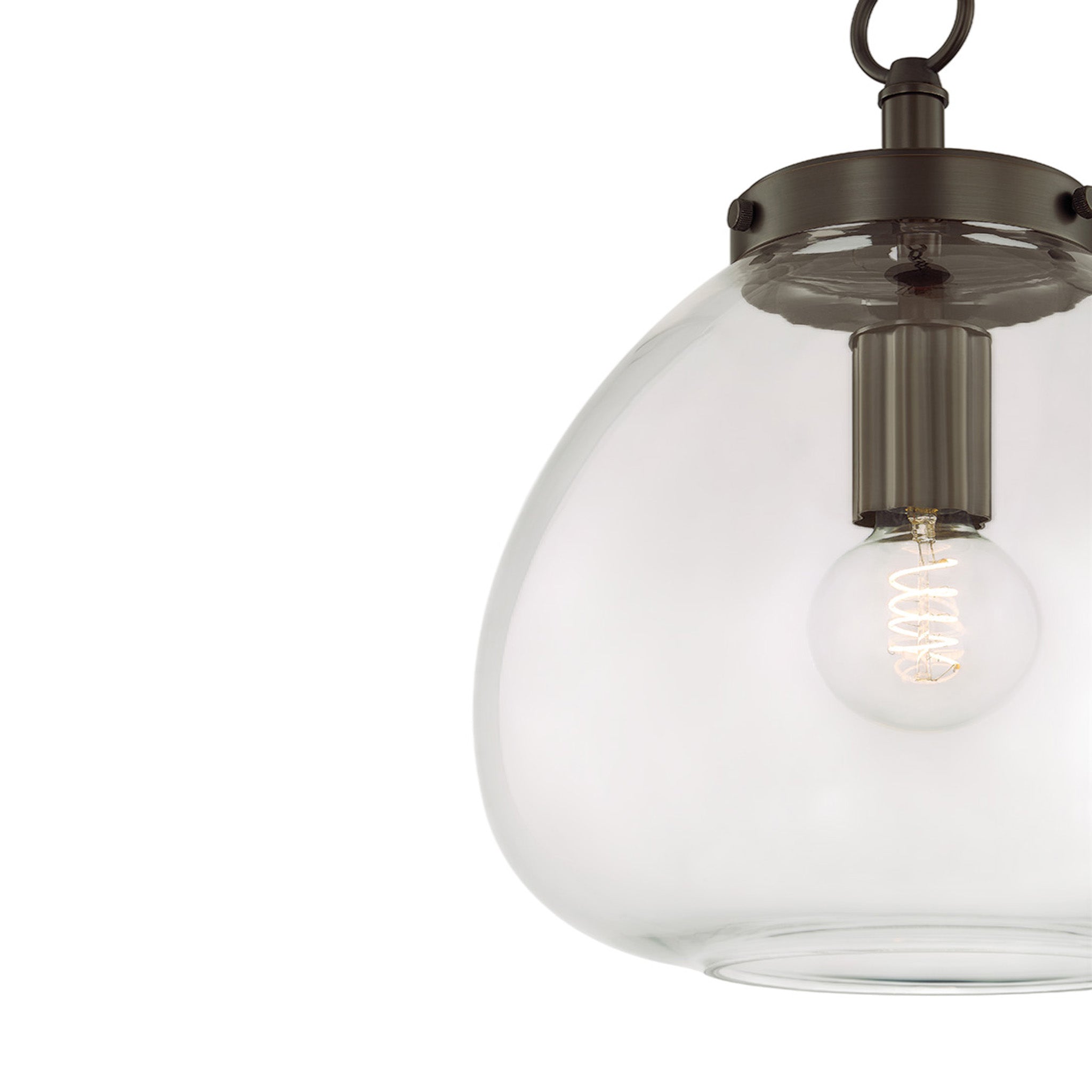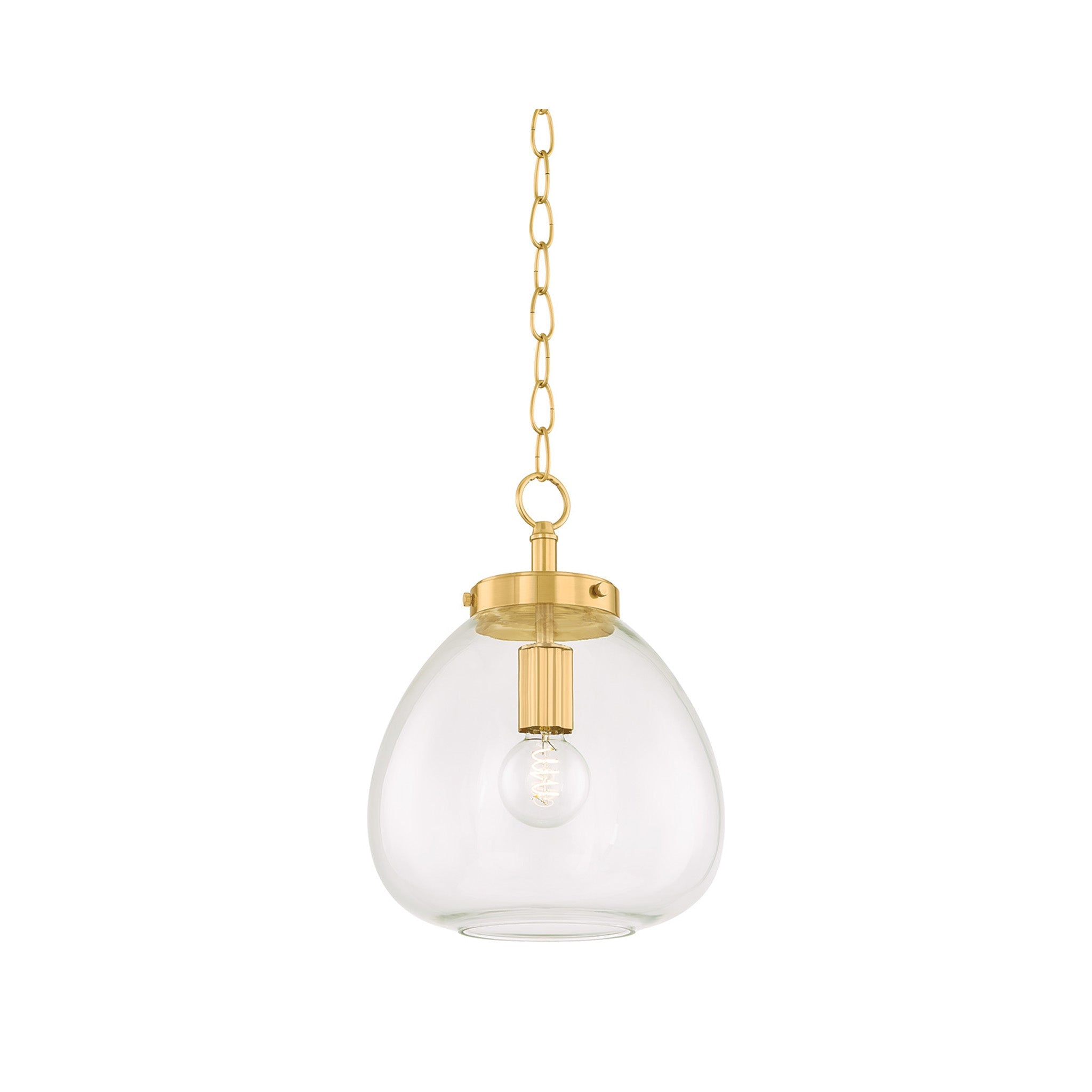 The Della pendant takes a simple shape and makes it special. When viewed from below, the gently curved clear glass shade provides a view of the botanical metalwork within. The organic form of the shade nods to nature, as does the floral cut-out detail on the socket cup and fitter. Finished in either Aged Brass or True Bronze, Della is a crowd-pleaser in kitchens and dining rooms.