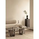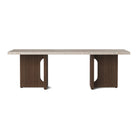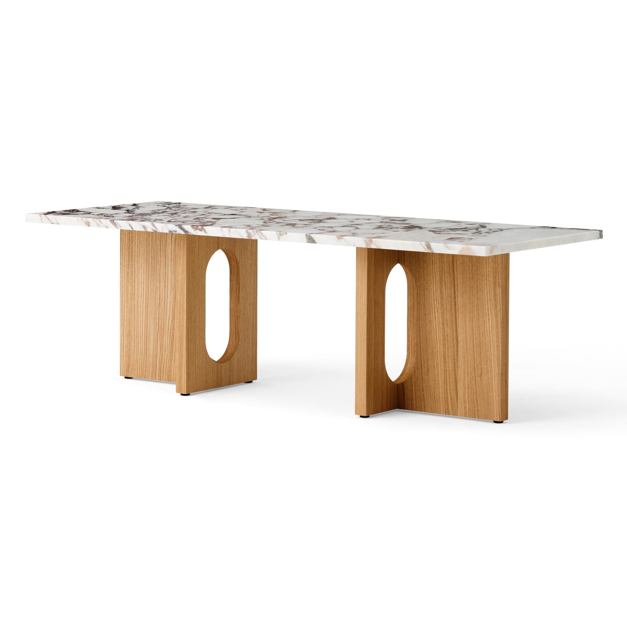 Conçue à l'origine par l'architecte et designer norvégienne Danielle Siggerud pour l'ancien café-showroom d'Audo, la collection Androgyne se distingue par ses lignes épurées et ses matériaux raffinés. Célébrant le savoir-faire artisanal et le bois, la table basse Androgyne est proposée en chêne naturel ou teinté foncé, ou en noyer, avec un plateau en pierre de Kunis, en Calacatta Viola ou en marbre gris Galaxy. Pensée pour un usage quotidien, sa forme et sa fonction polyvalentes lui permettent de servir aussi bien de table basse que de banc pour y déposer des livres ou des objets décoratifs.
