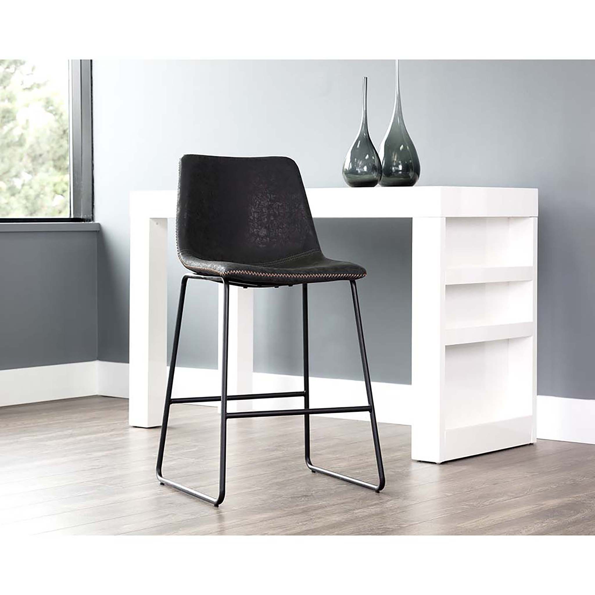 Un tabouret de bar confortable et compact. Son design épuré, inspiré du style mid-century, est rehaussé d'une structure en acier noir brossé. Disponible en similicuir. Convient à tous les espaces, de la salle à manger à la cuisine en passant par le bar. À manipuler avec précaution : ce modèle est confectionné en similicuir. Ce matériau est conçu pour imiter les caractéristiques naturelles du cuir ; de ce fait, les variations de couleur, les marques, les plis, les rainures et les légères éraflures sont des imperfections appréciées. Chaque pièce est unique. Consultez notre page Entretien des produits pour plus d'informations sur la façon de préserver la beauté de ce tabouret.