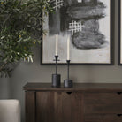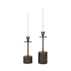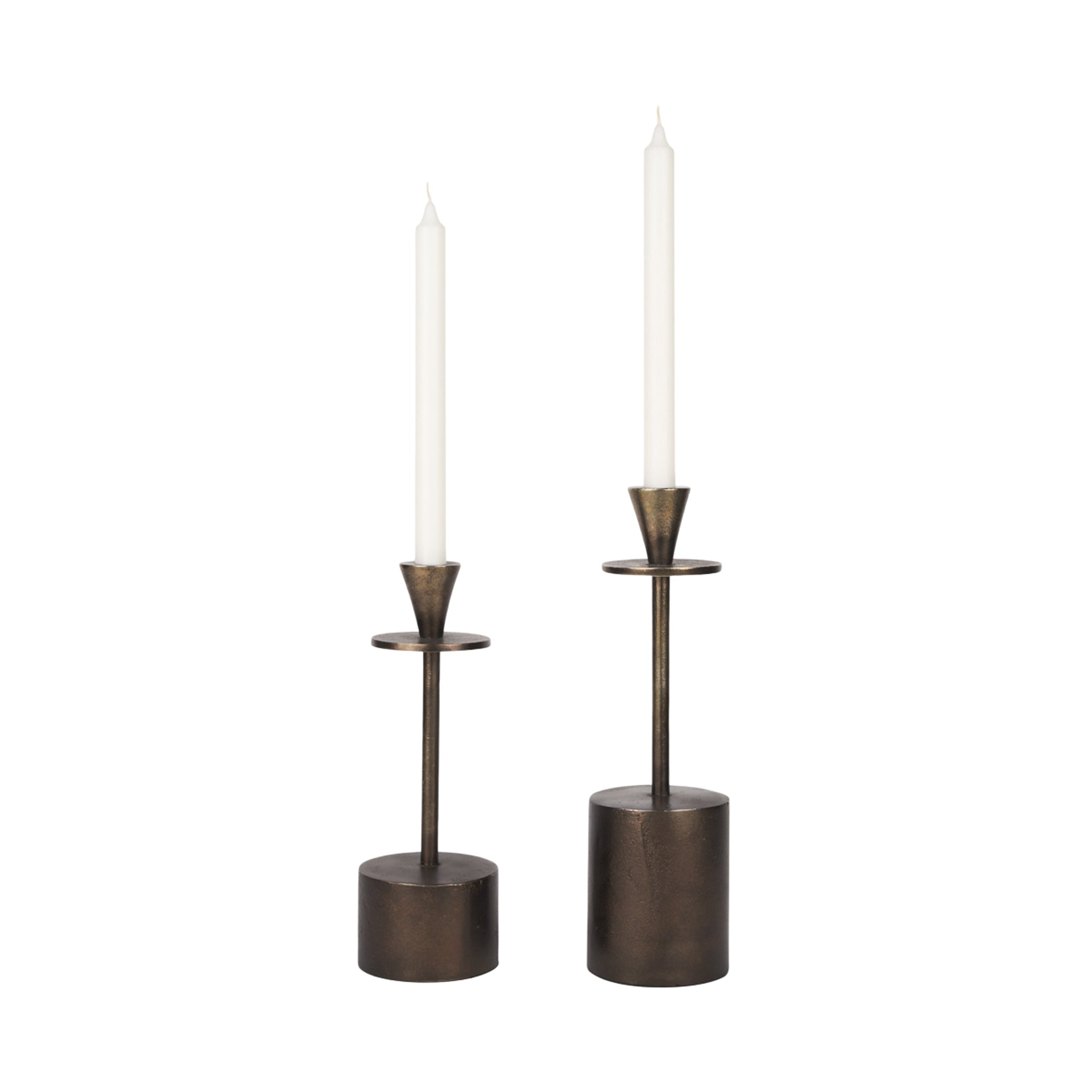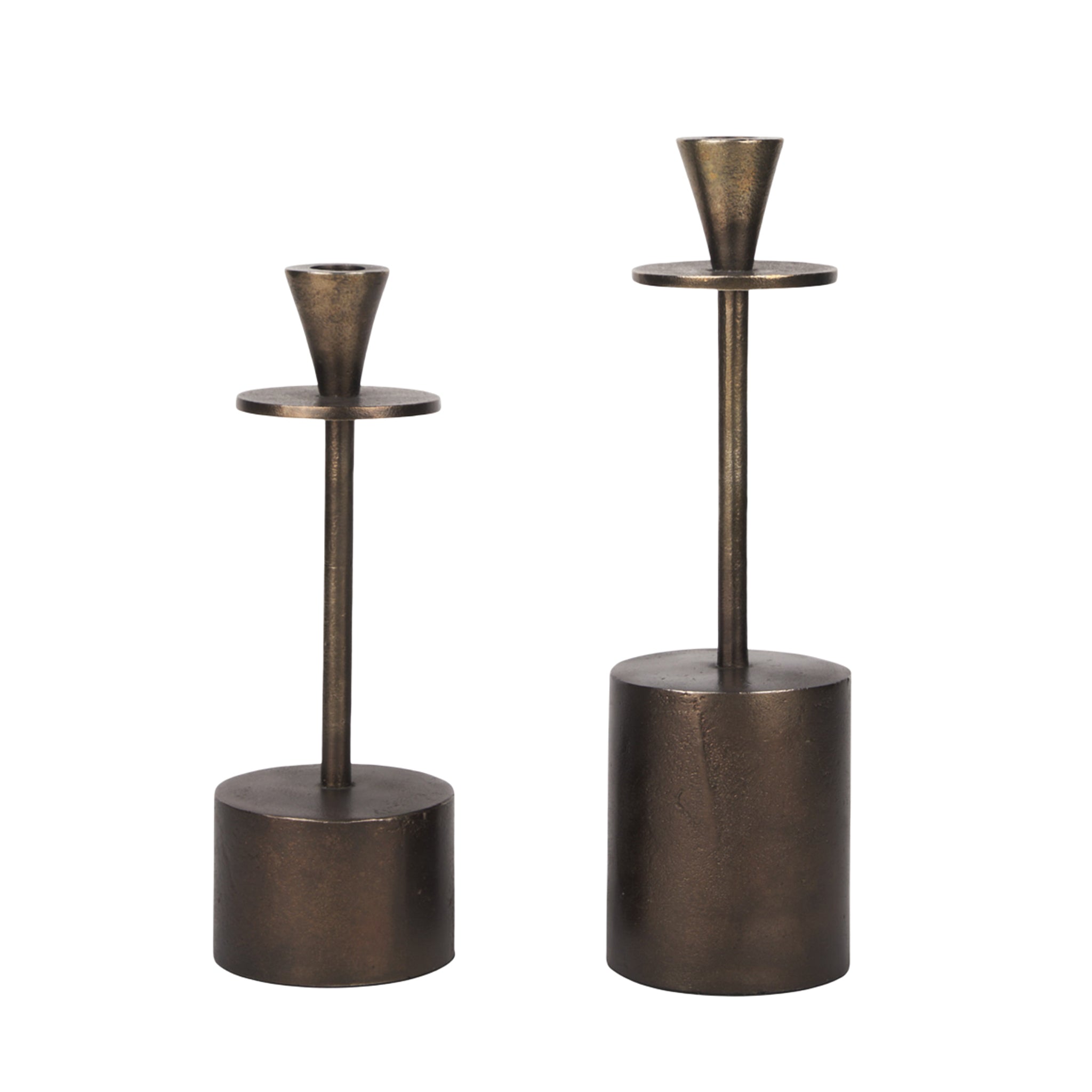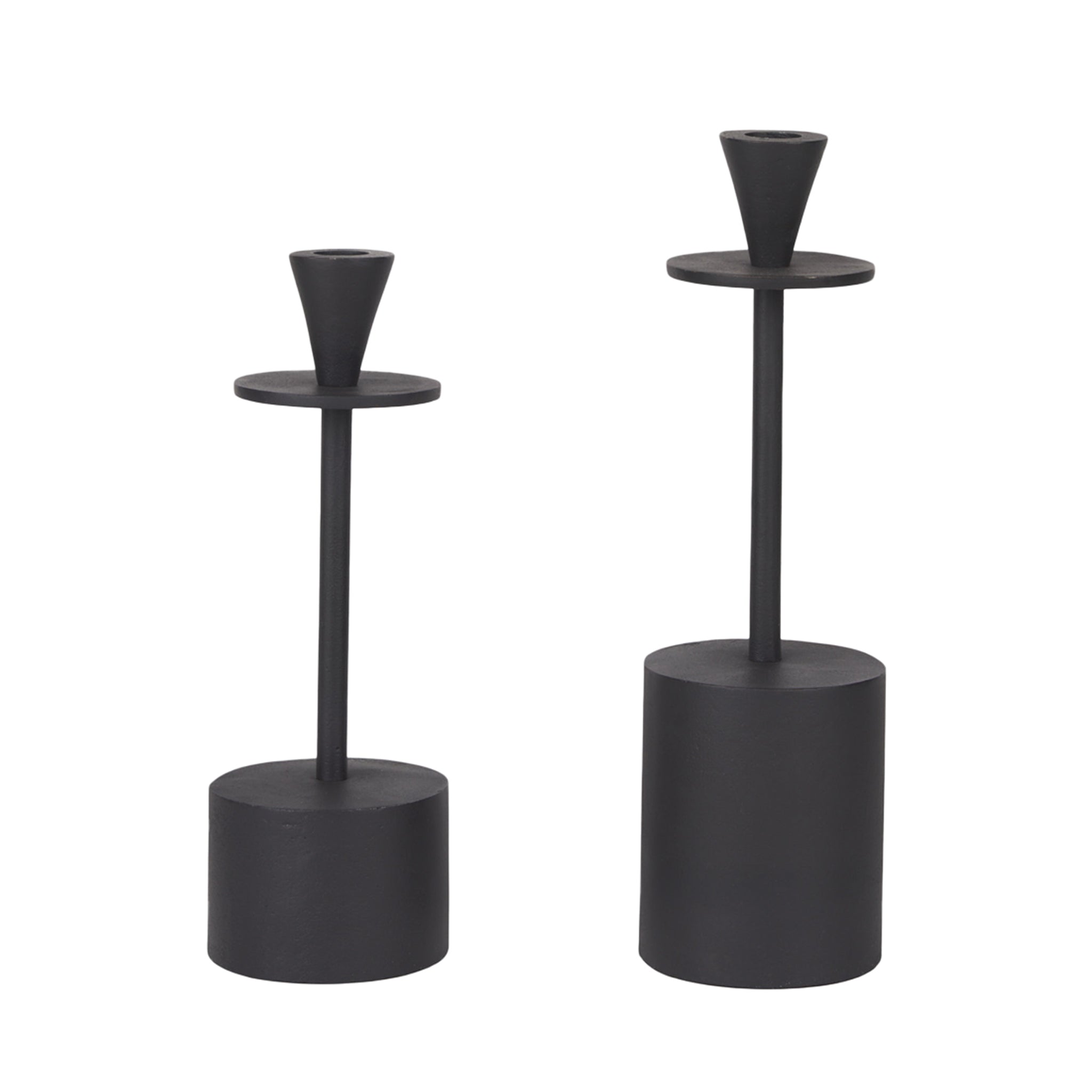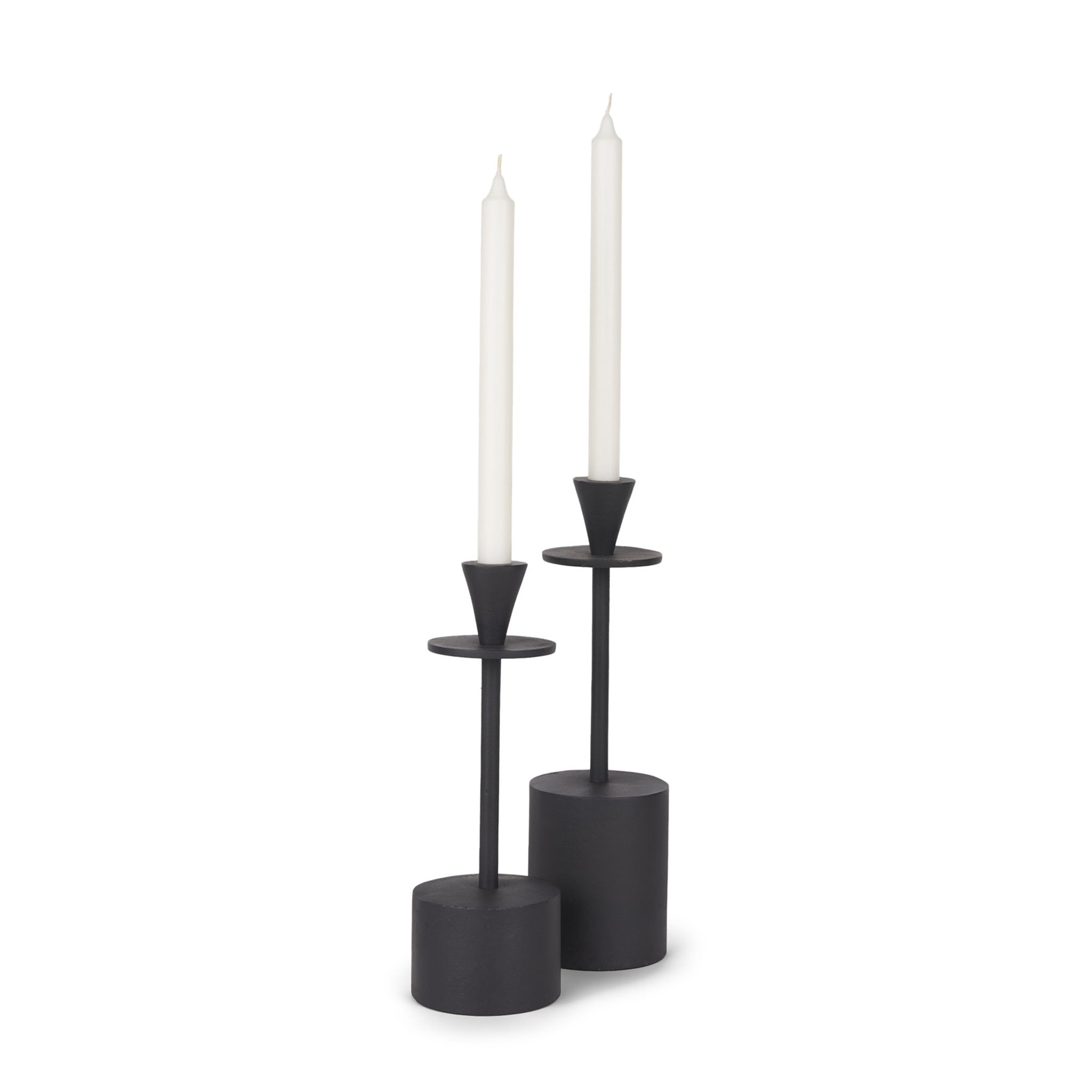 Perkins est un ensemble de deux bougeoirs coniques en aluminium moulé avec une texture