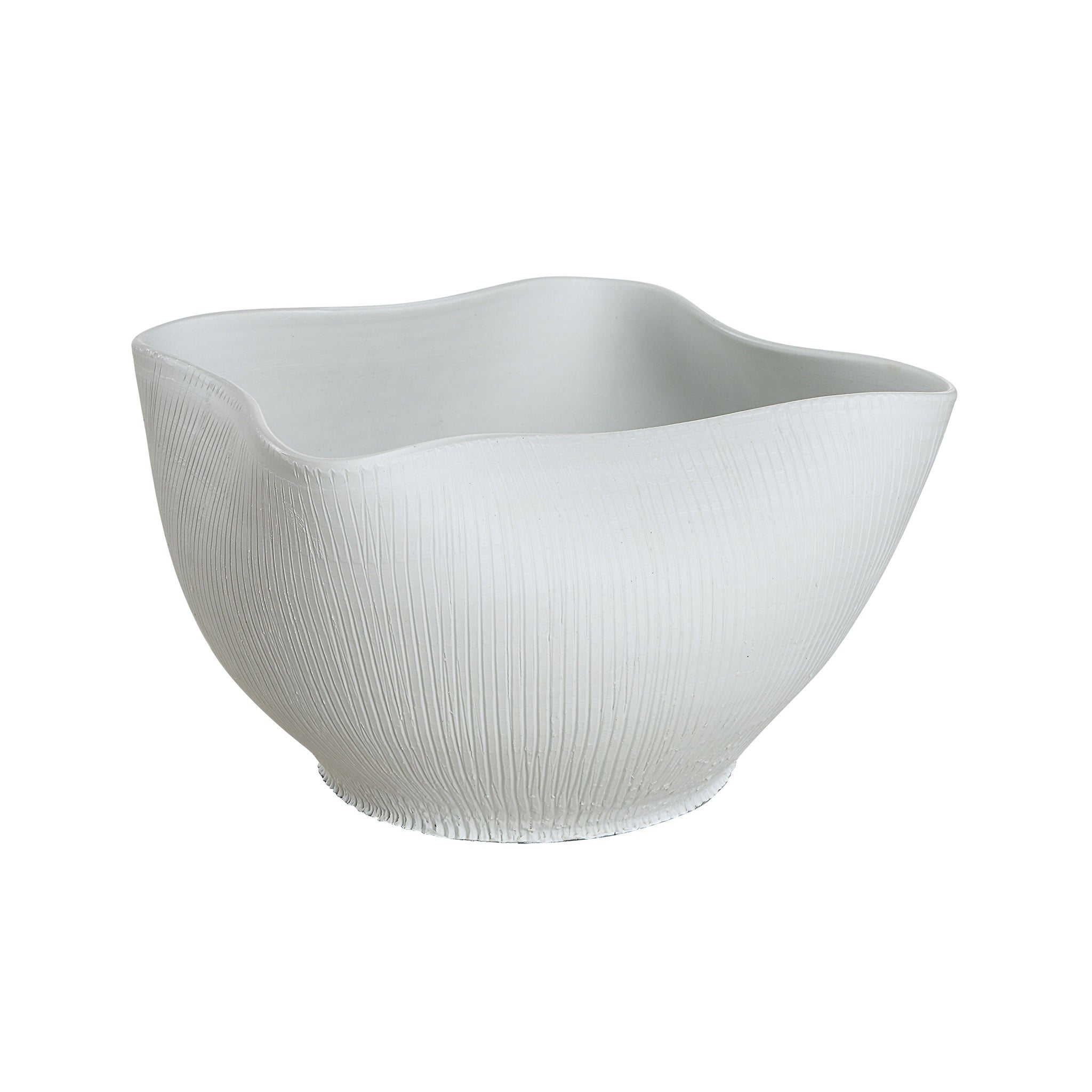 Ce vase en céramique en forme de bol peut être purement décoratif ou servir de récipient utilitaire, pouvant accueillir des objets du quotidien ou des clés. Les intérieurs modernes et contemporains apprécieront son design ondulé et sa texture nervurée qui confèrent à leur espace une ambiance à la fois décontractée et chic. Posé sur une table d'entrée, une commode ou une table de salon, il deviendra rapidement un élément essentiel du quotidien.